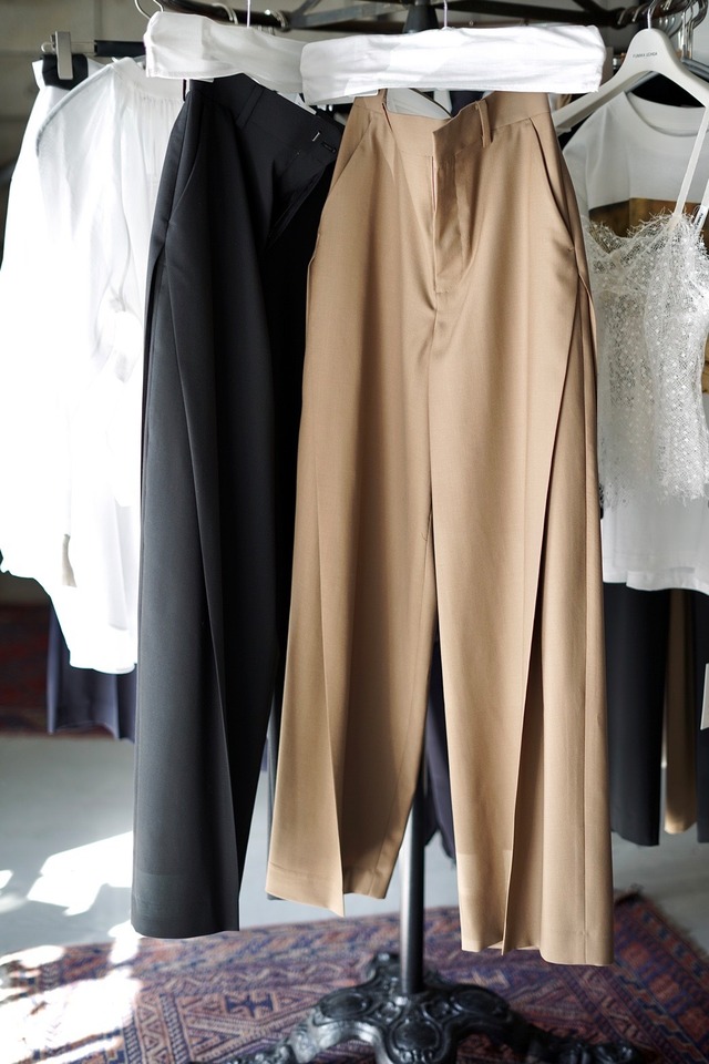 HYKE / WOOL SIDE TUCK PANTS ( BLACK , BEIGE )