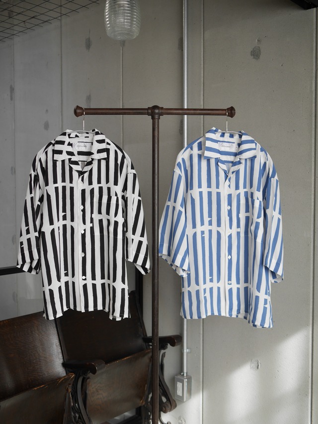 JOHN MASON SMITH / OPEN COLLAR SHIRT S/S ( WHITE BLACK / WHITE BLUE )