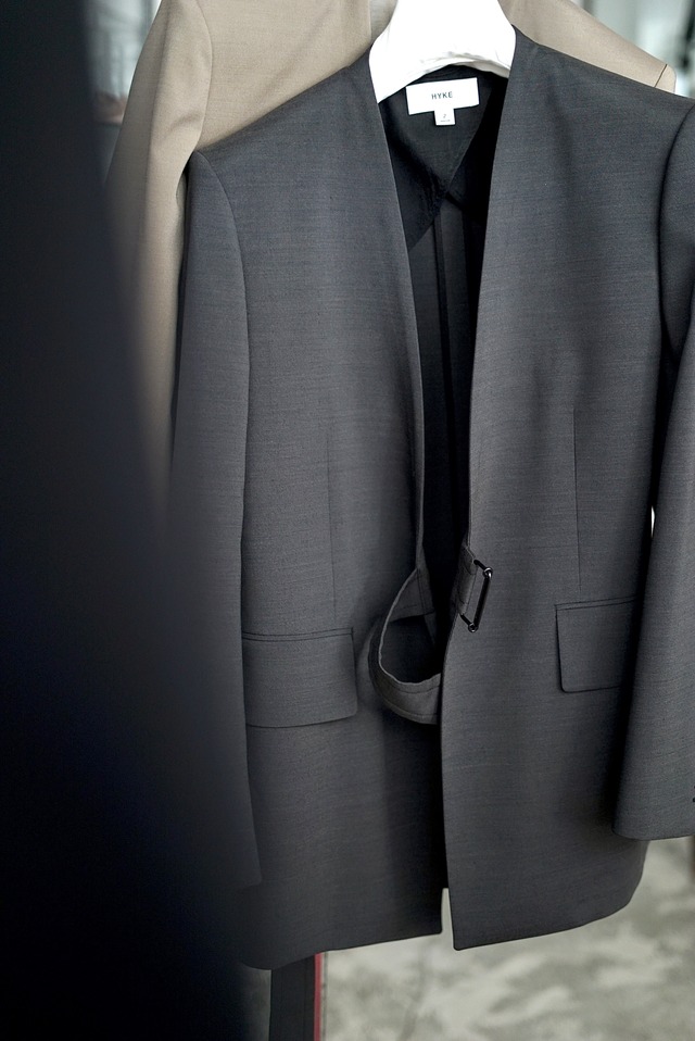HYKE / T/W WRAP BRAZER ( CHARCOAL, BEIGE )