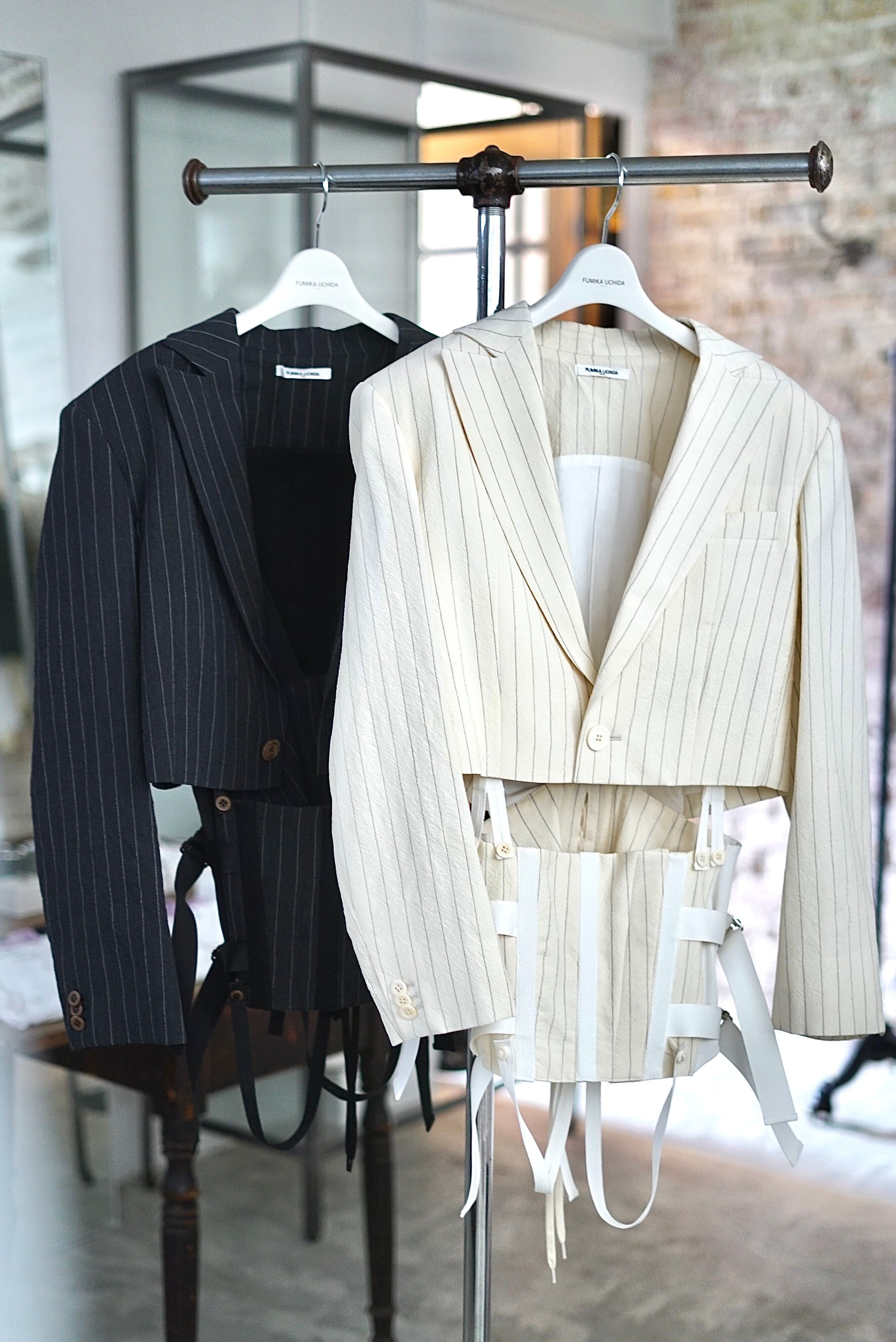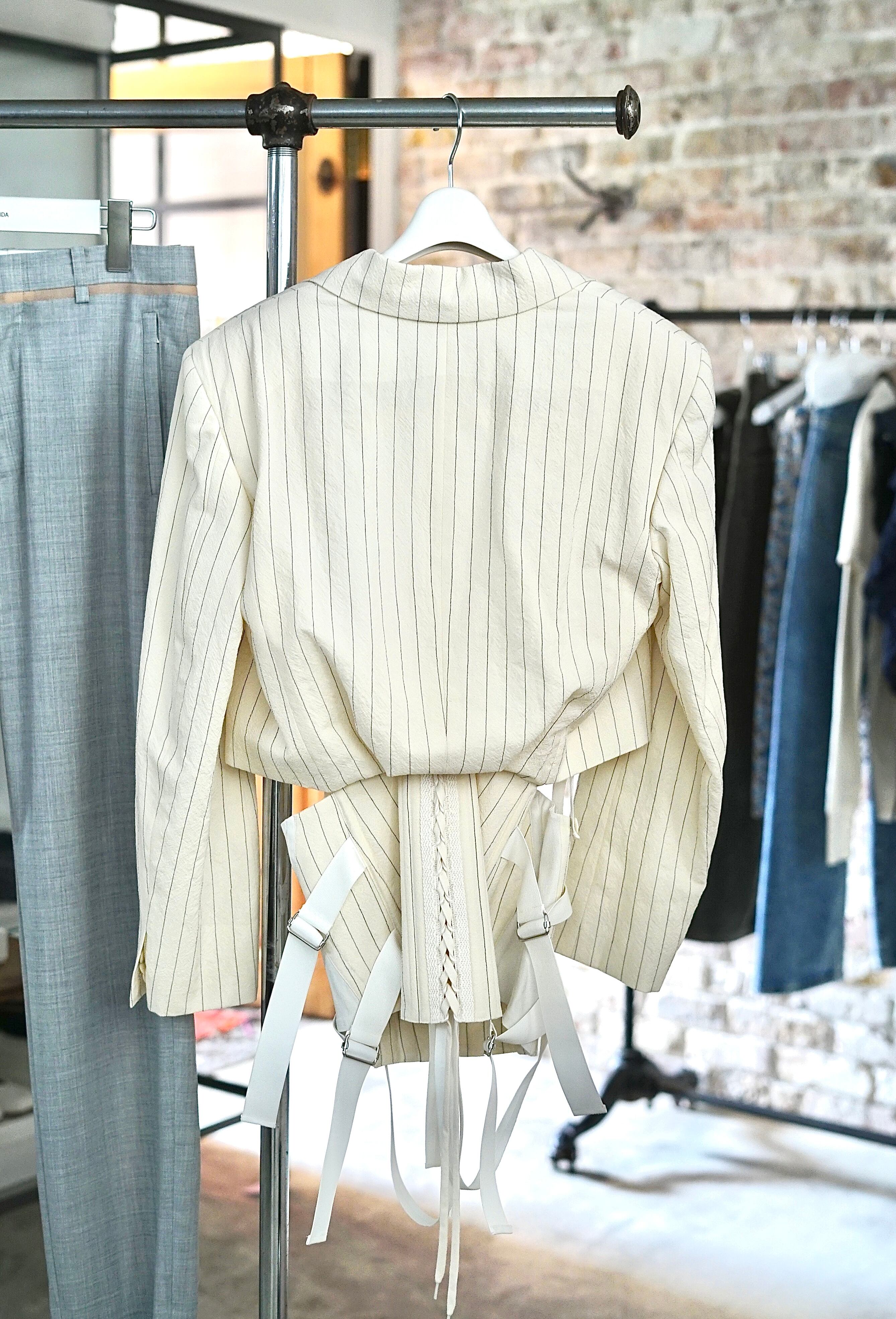 FUMIKA_UCHIDA / WAIST SUPPORT PEAKED LAPEL 1BUTTON JACKET (IVORY/OFF , CHARCOALBLACK/BLACK)