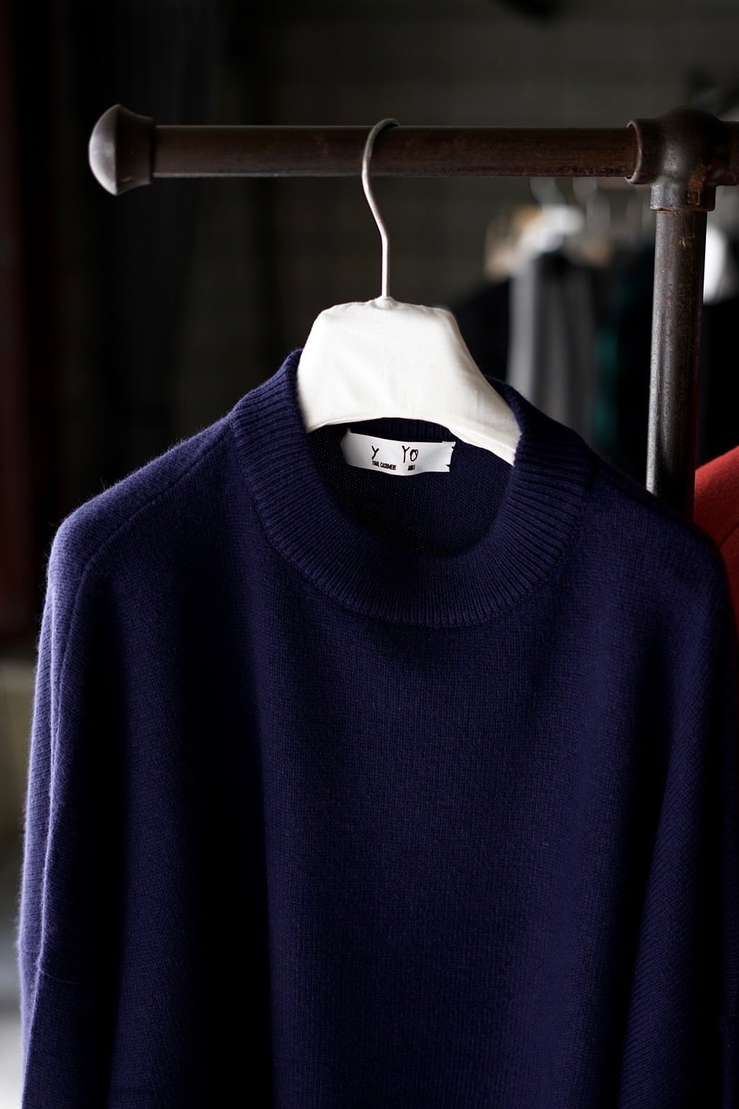 y YO / Bell sleeve big knit ( Navy , Heart )