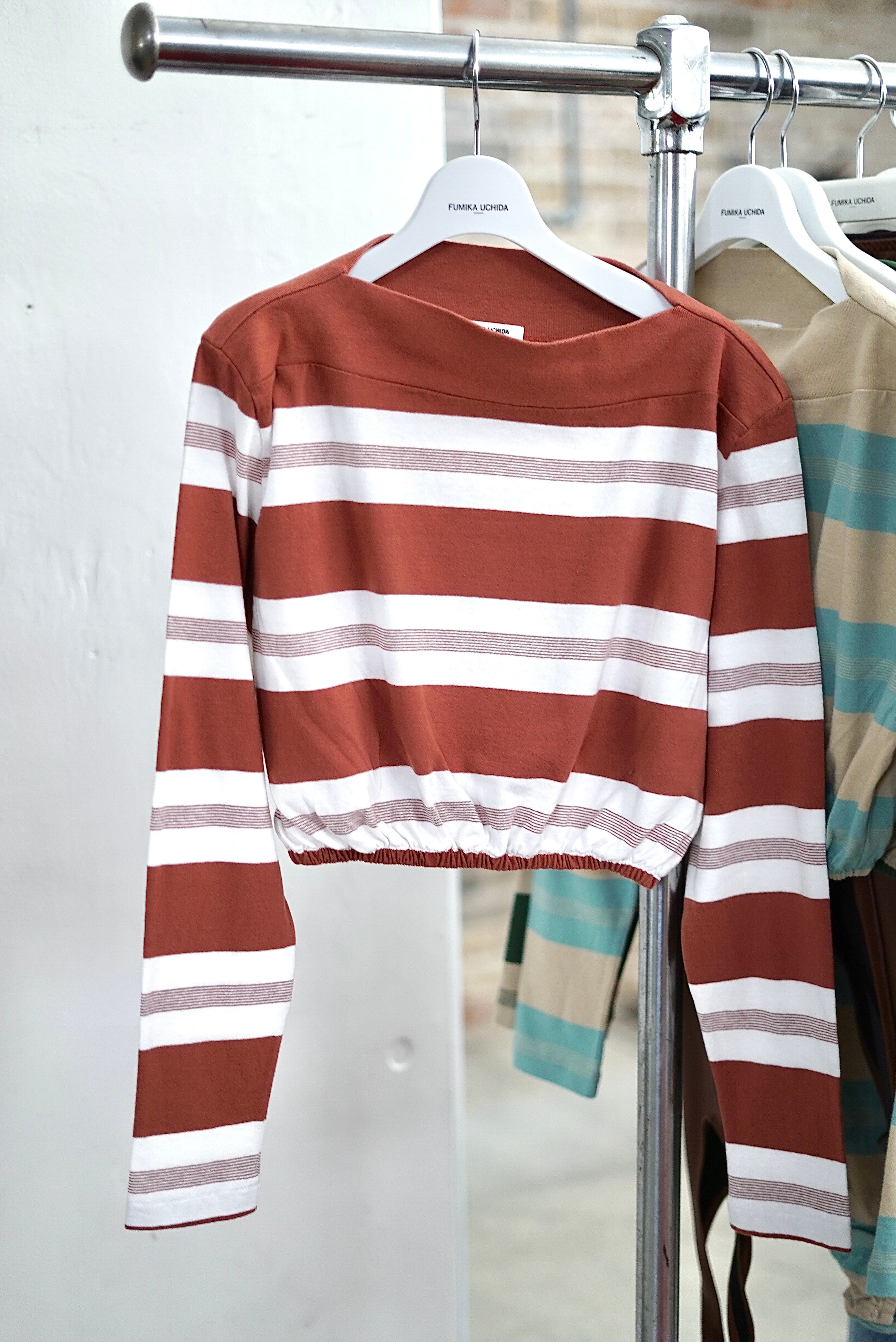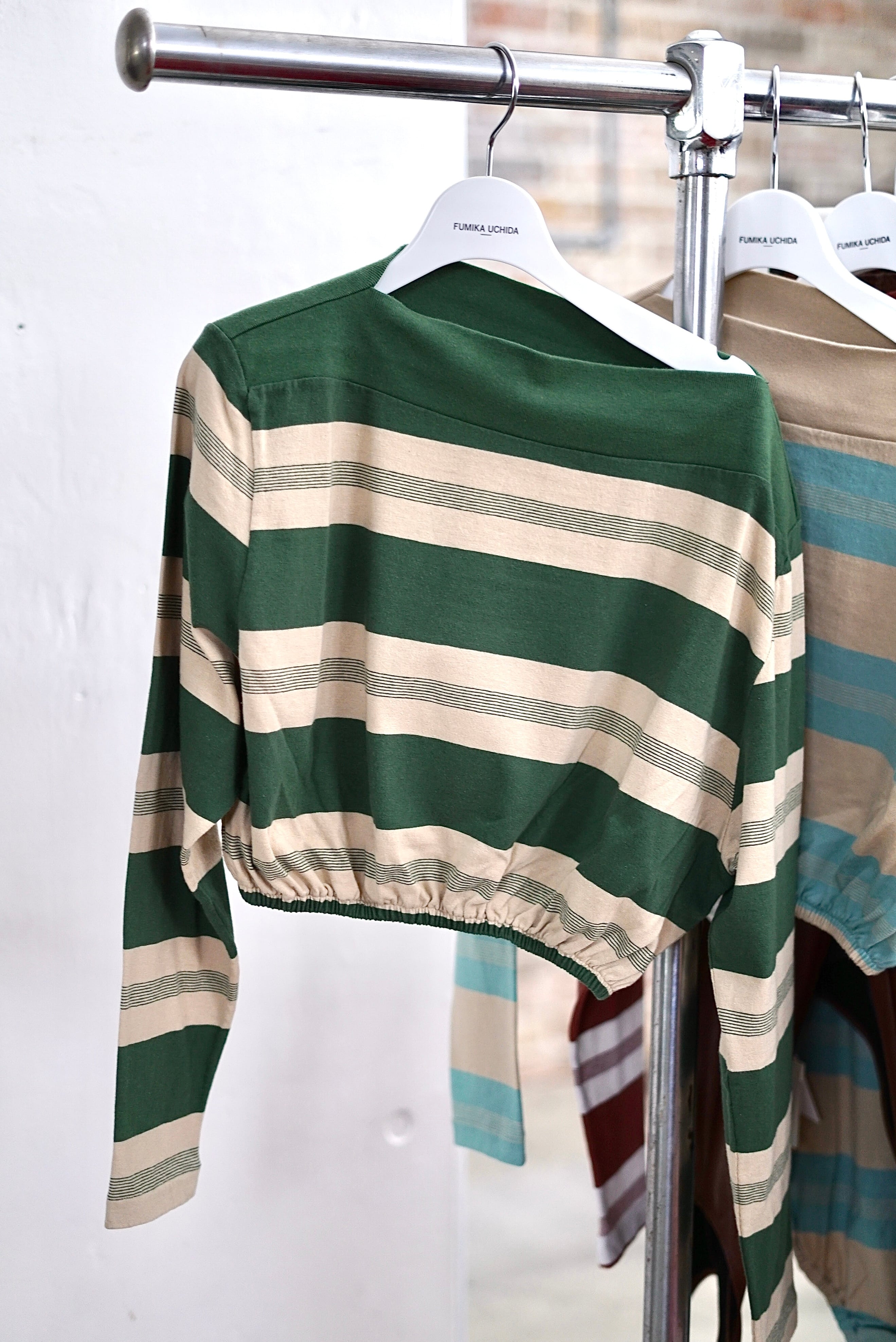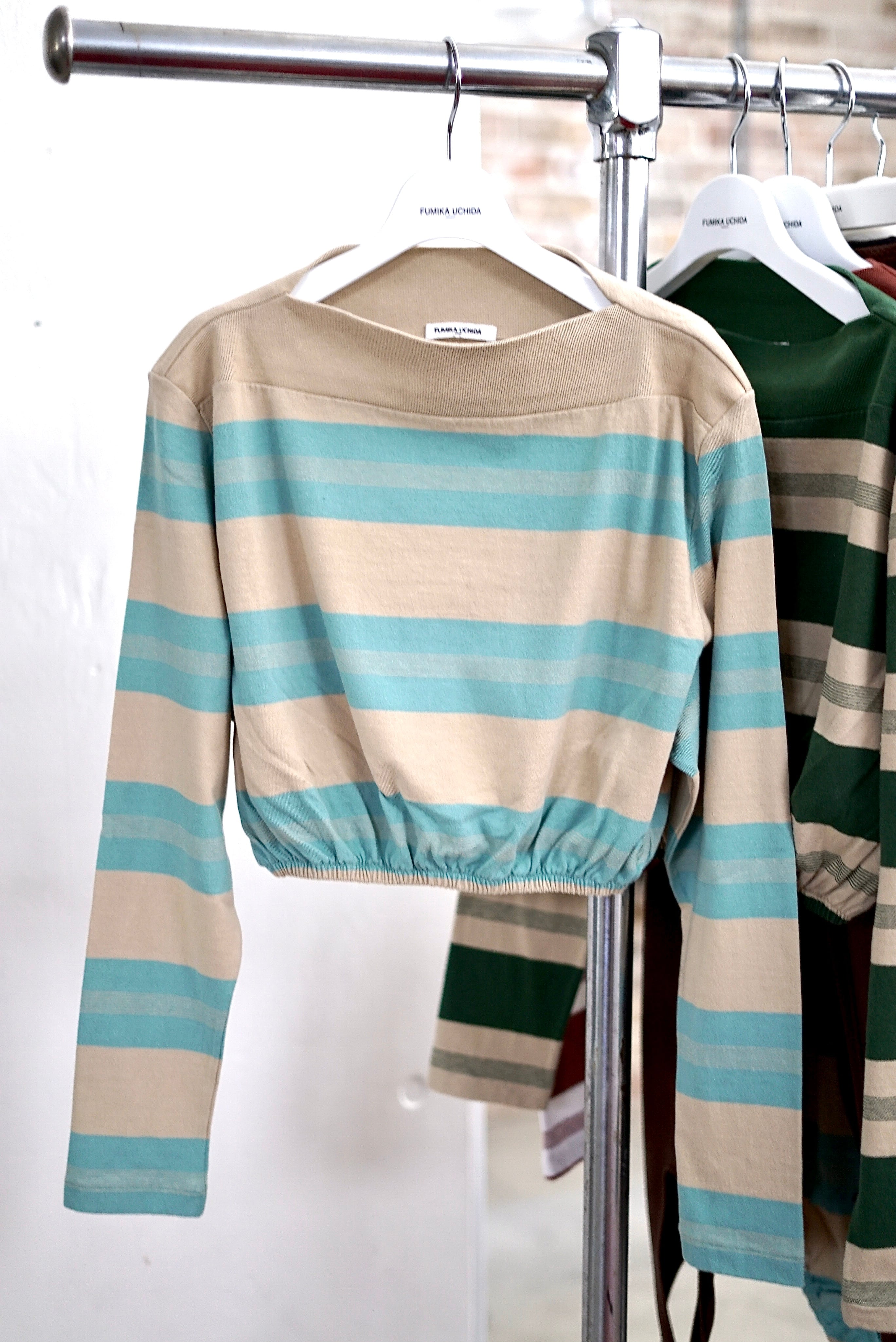 FUMIKA_UCHIDA / COTTON JERSEY CROPPED TOP (SAX/BEIGE , OFF/BORDEAUX , BEIGE/GREEN)