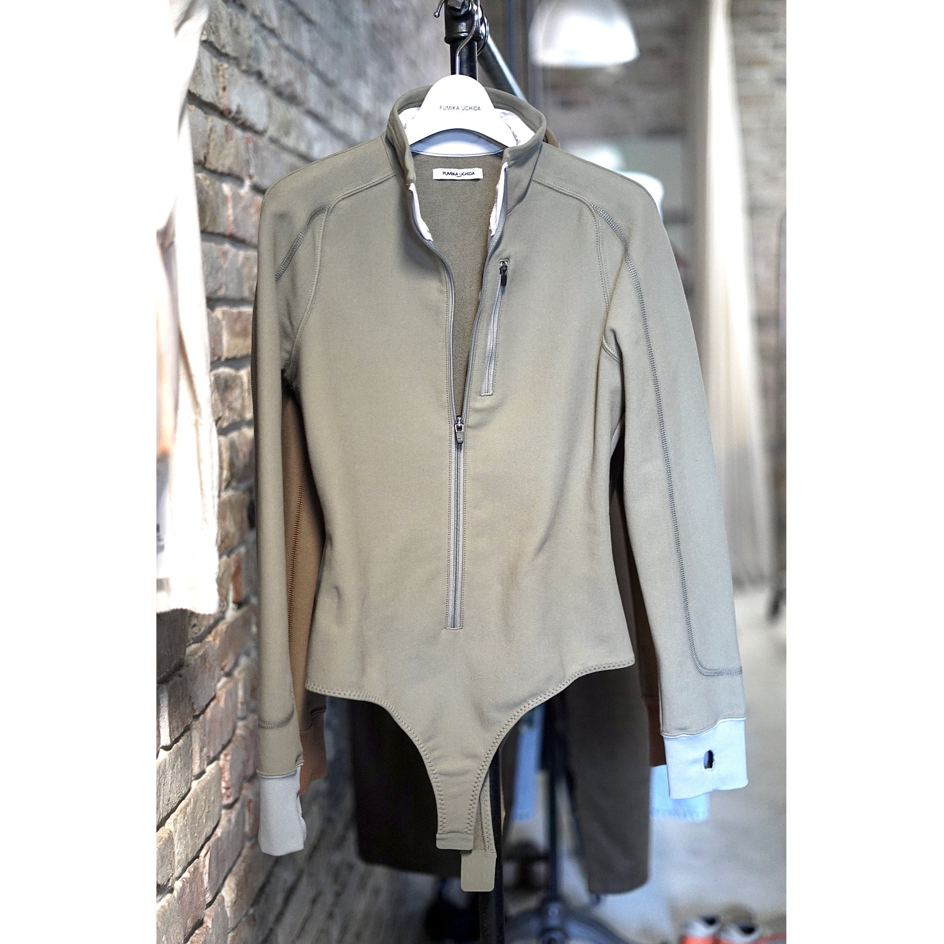 FUMIKA_UCHIDA / FRENCH TERRY HALF-ZIP BODYSUIT (SAGE,MOCHA)