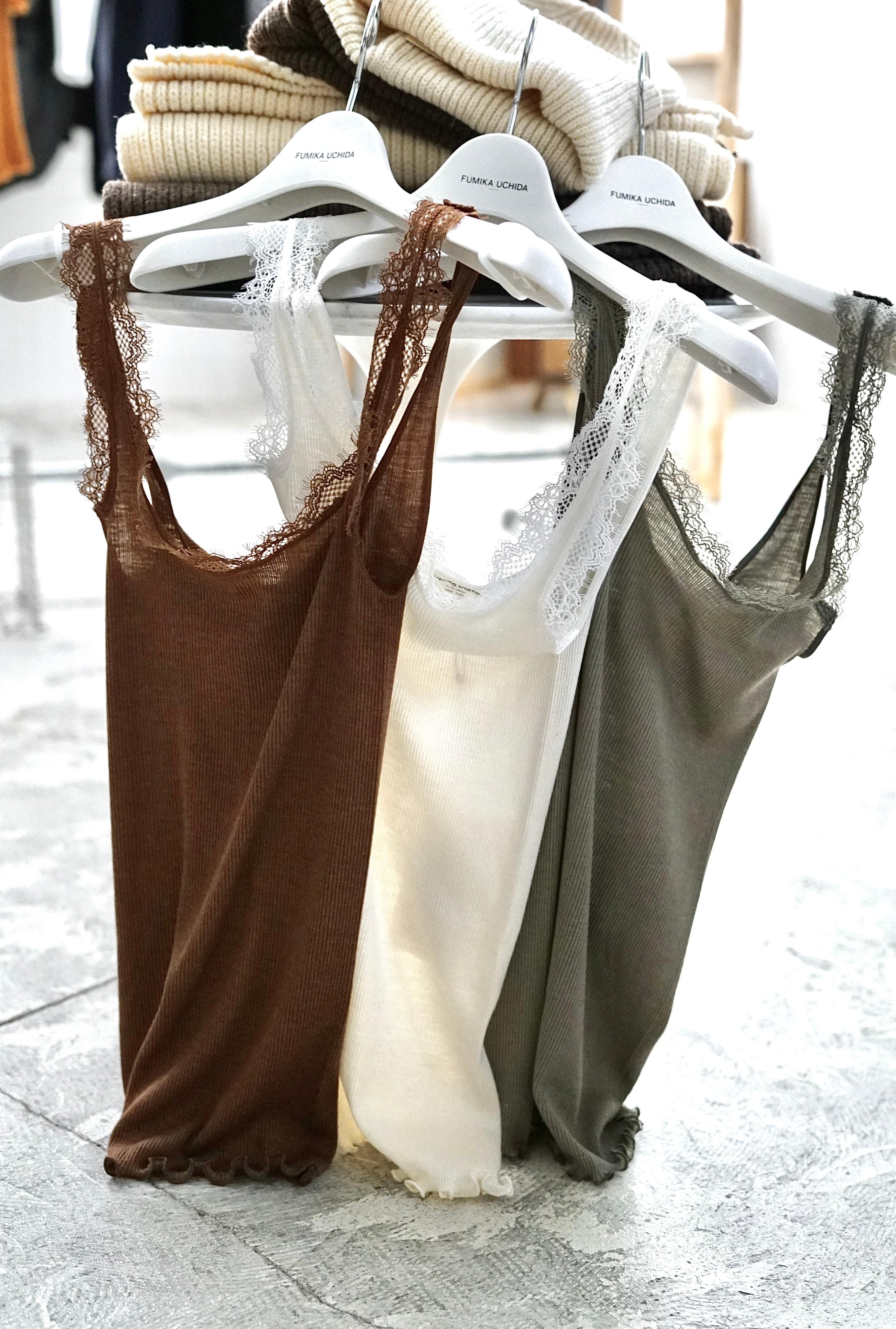 FUMIKA_UCHIDA / RIB CAMISOLE UNDERWEAR (KINARI , SAGE , BROWN)