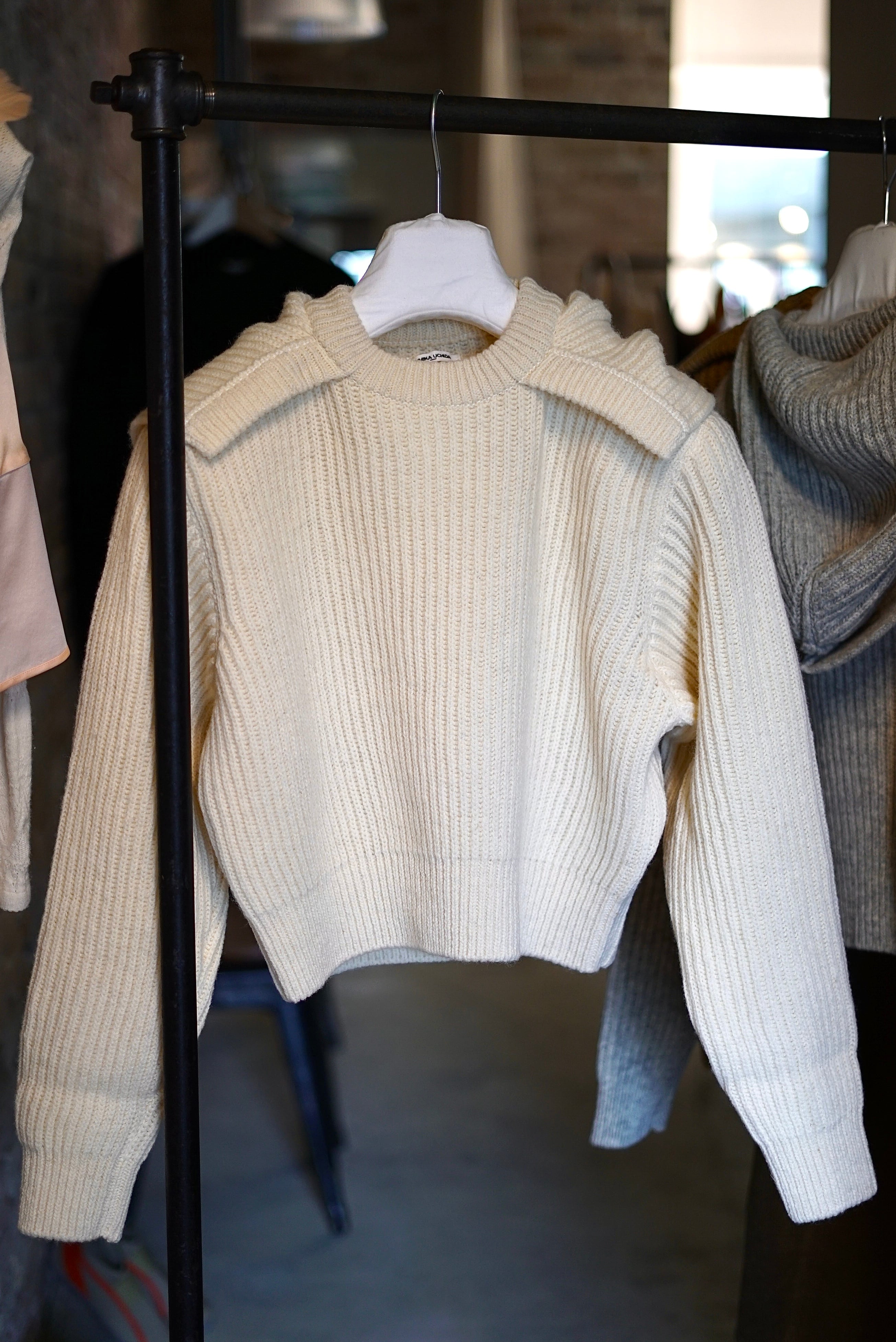 FUMIKA_UCHIDA / SHETLAND RIB STITCH HOODED PULLOVER (IVORY , TOP BROWN , TOP GREY)
