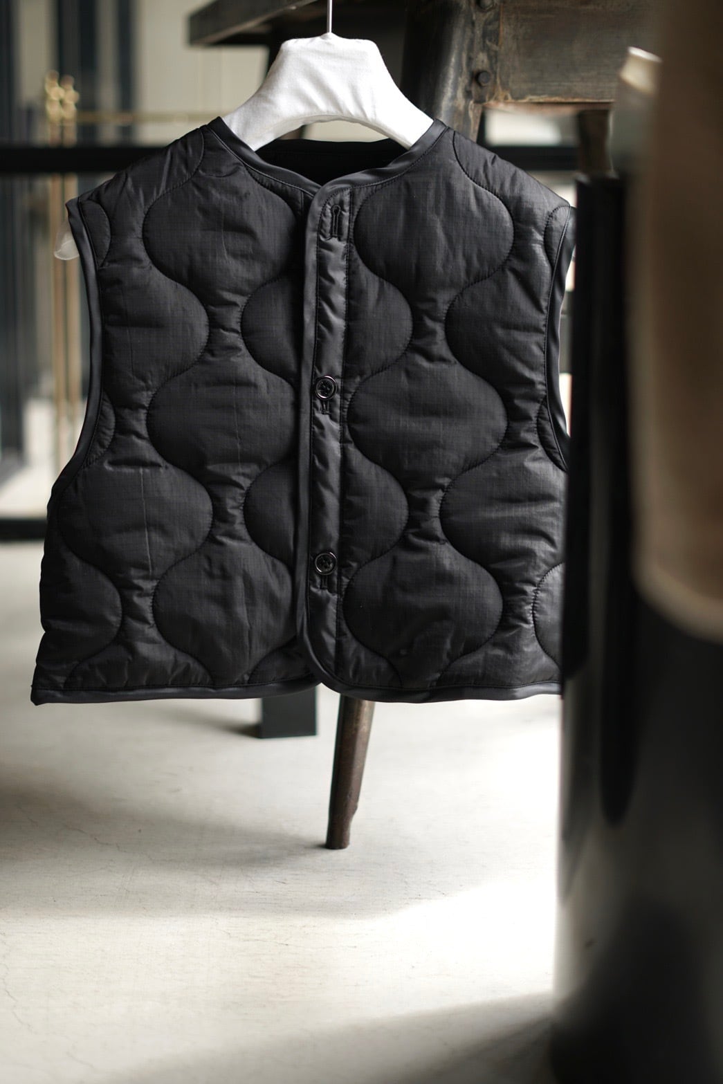 HYKE / QUILTED CROPPED VEST ( BLACK / SAND STONE )