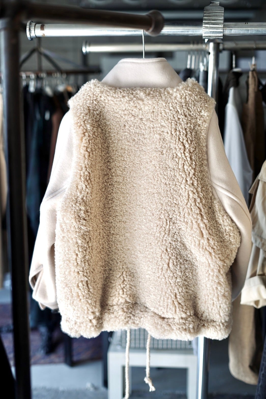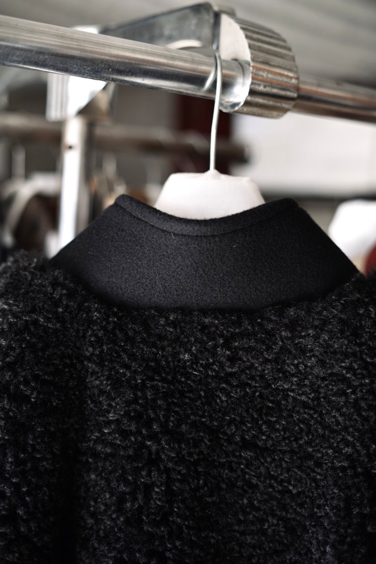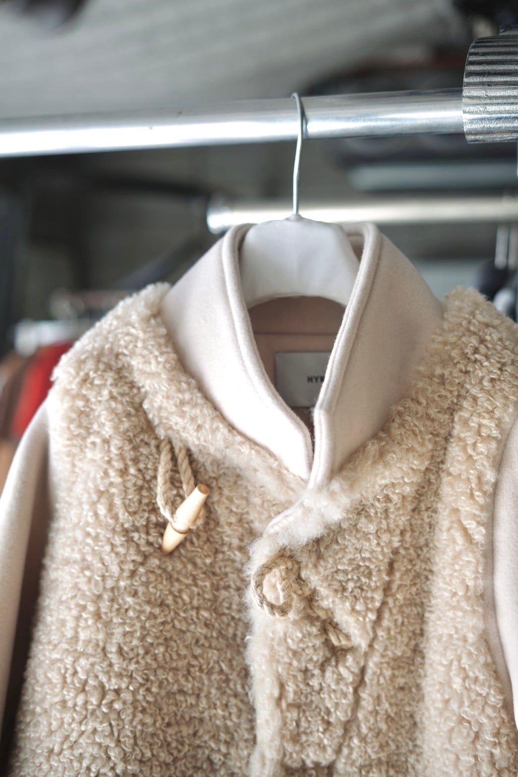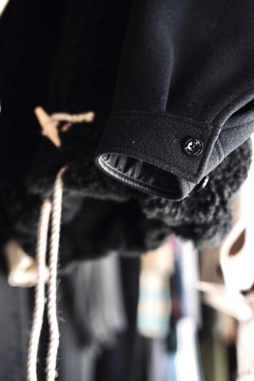 HYKE / DOUBLE FACE FAUX SHEARLING DUFFEL JACKET ( BLACK , CREAM )