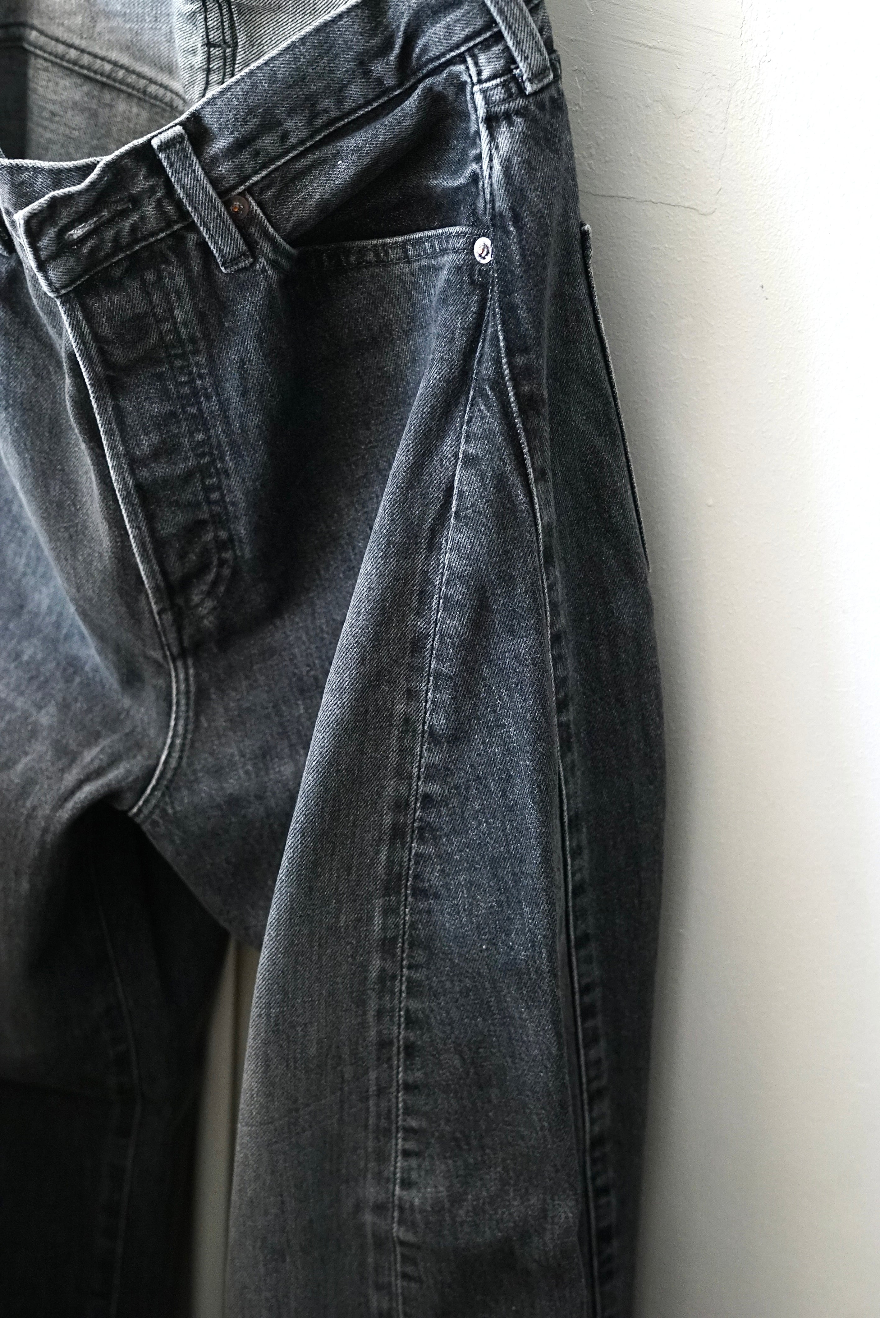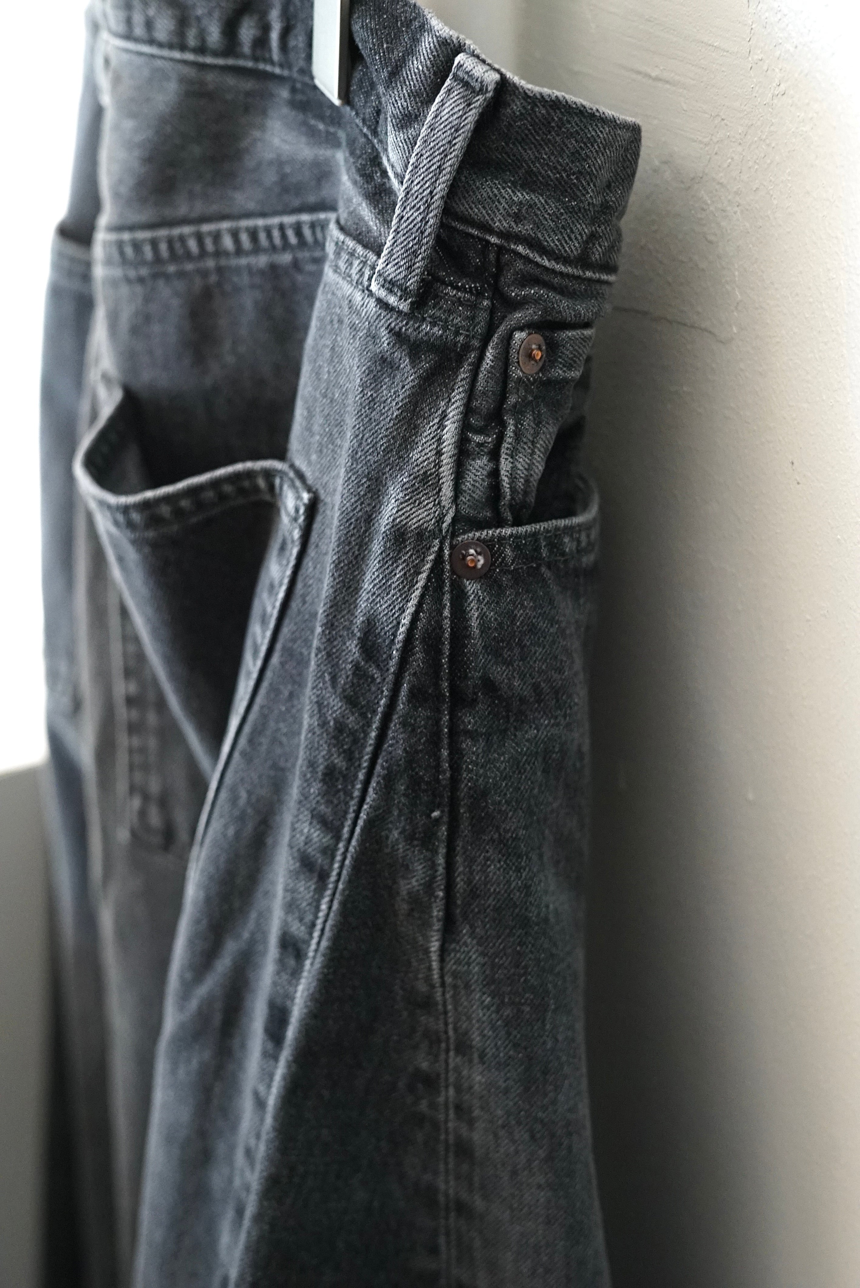 HYKE / DENIM BARREL- LEG JEANS (USED WASH (BLACK))