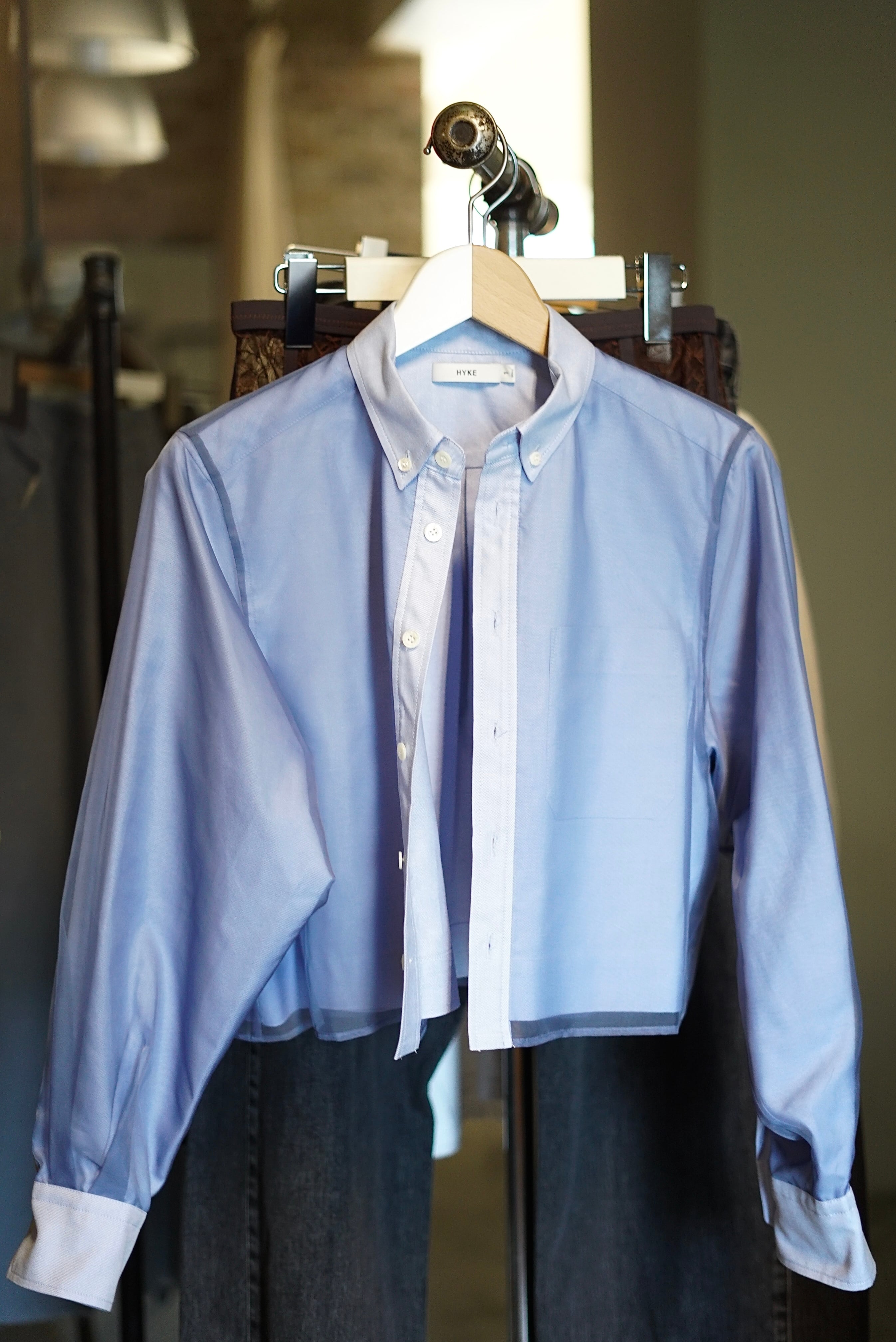 HYKE / LAYERED OXFORD SHEER SHIRT (BLACK, WHITE, BLUE)