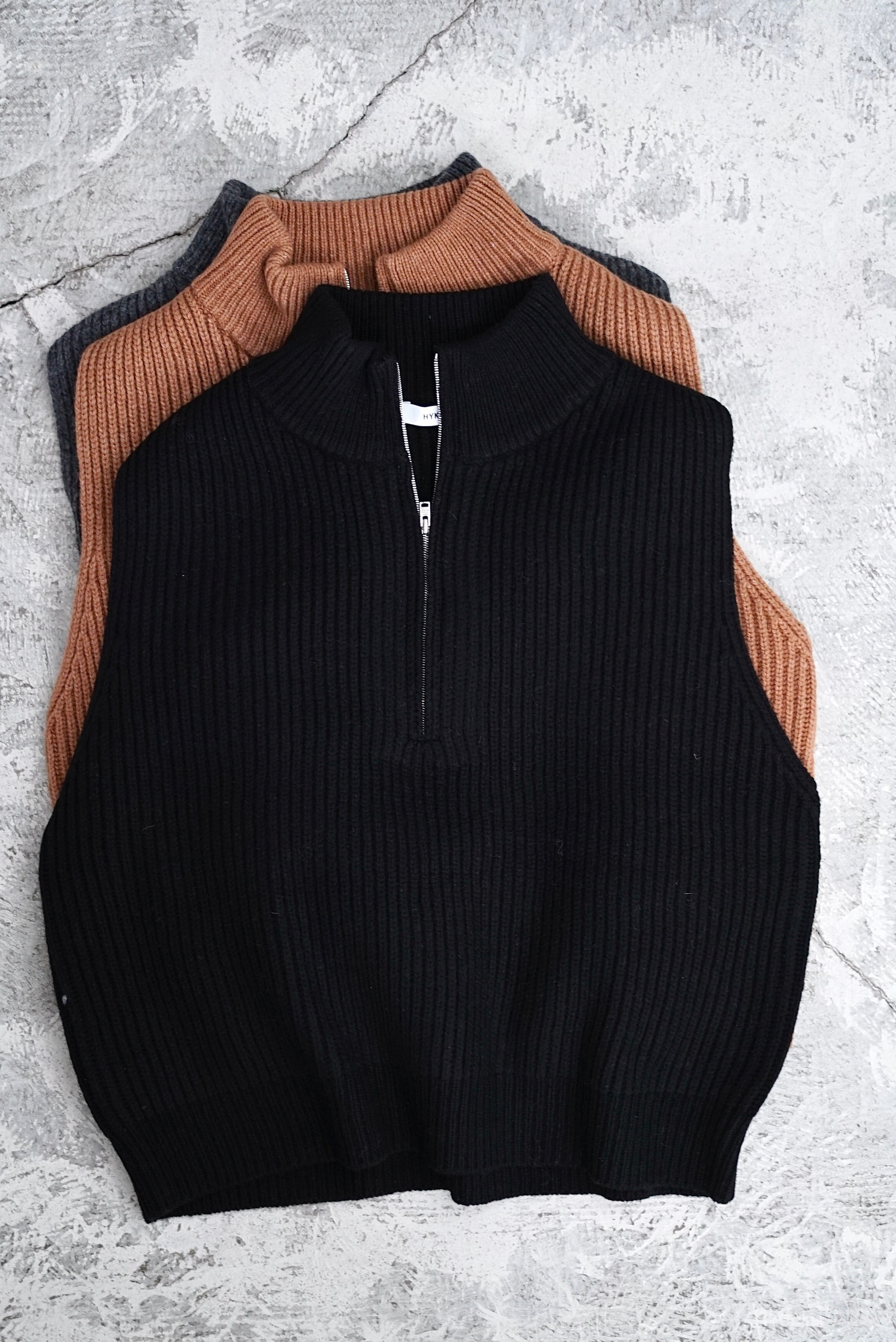 HYKE / RIBBED KNIT WOOL VEST (BLACK,CHARCOAL, CAMEL)