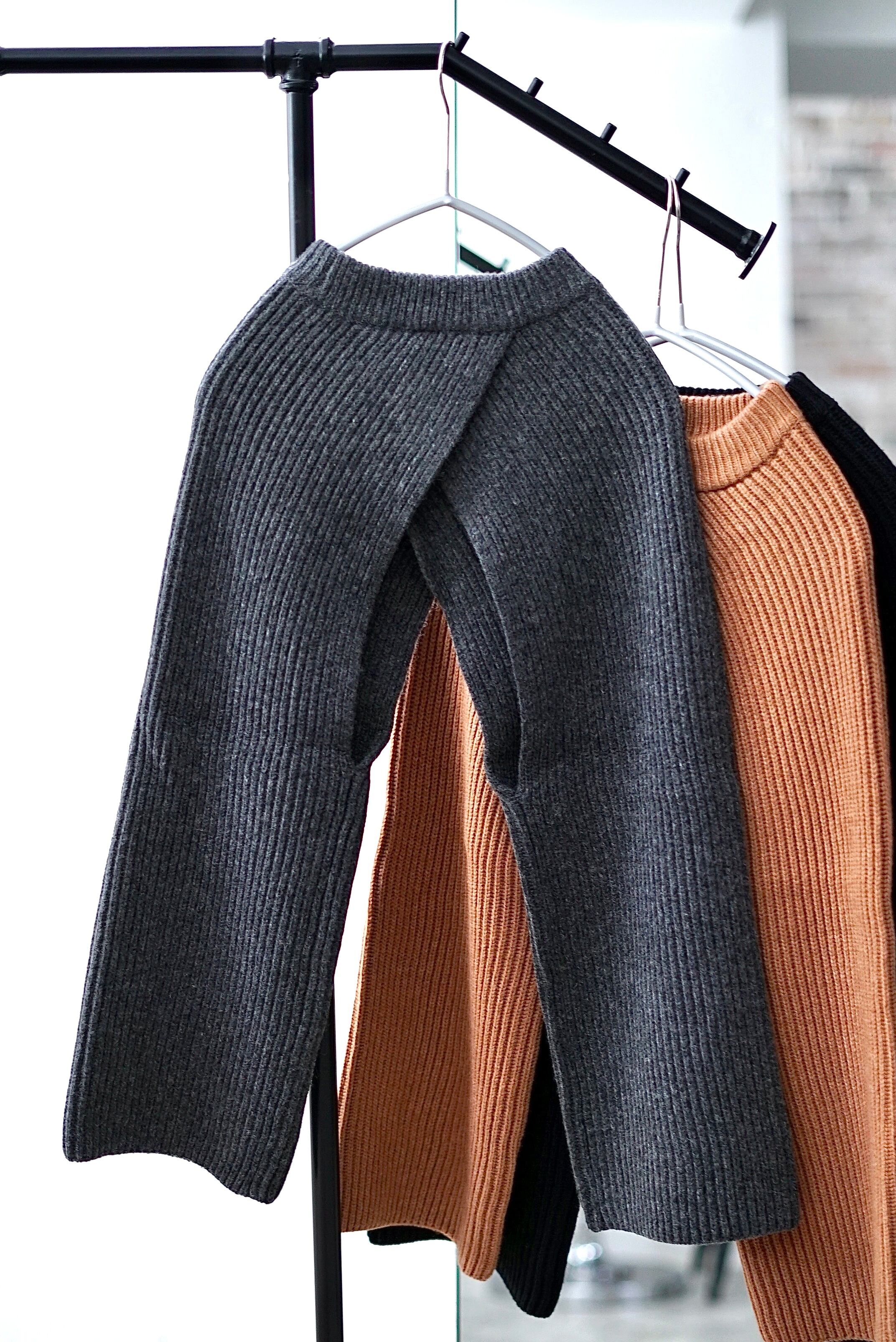 HYKE / RIBBED KNIT WOOL SHRUG (BLACK,CHARCOAL, CAMEL)