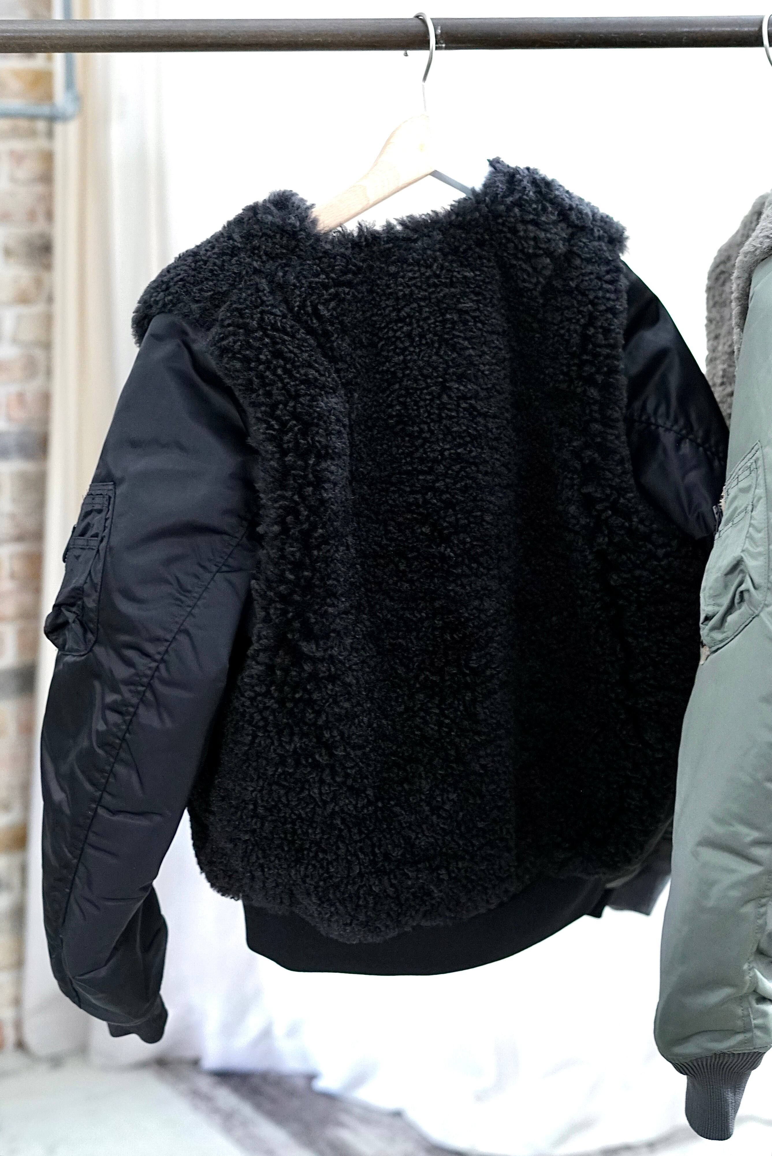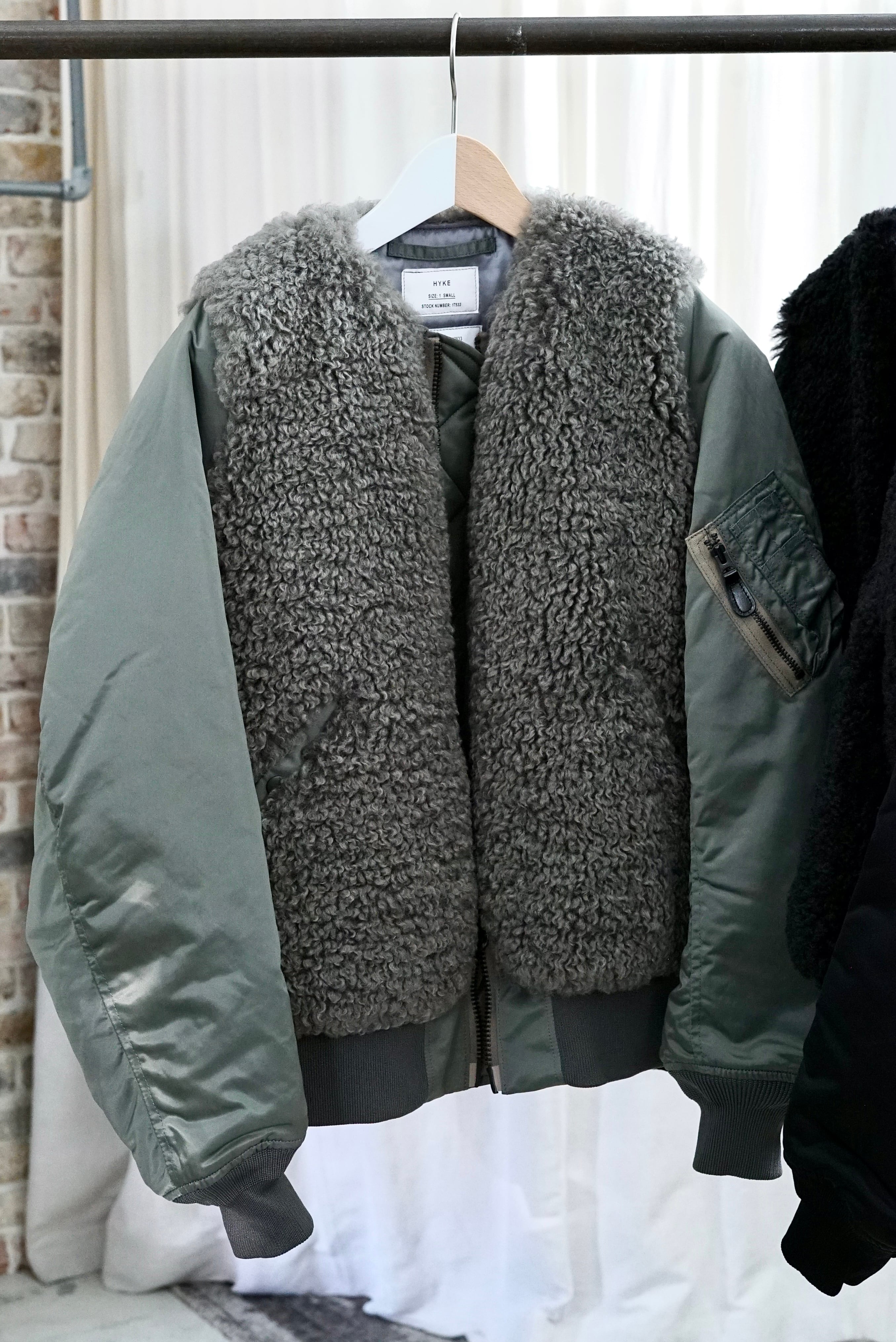 HYKE / FAUX SHEARLING TYPE MA-1 JACKET (BLACK, OLIVE DRAB)