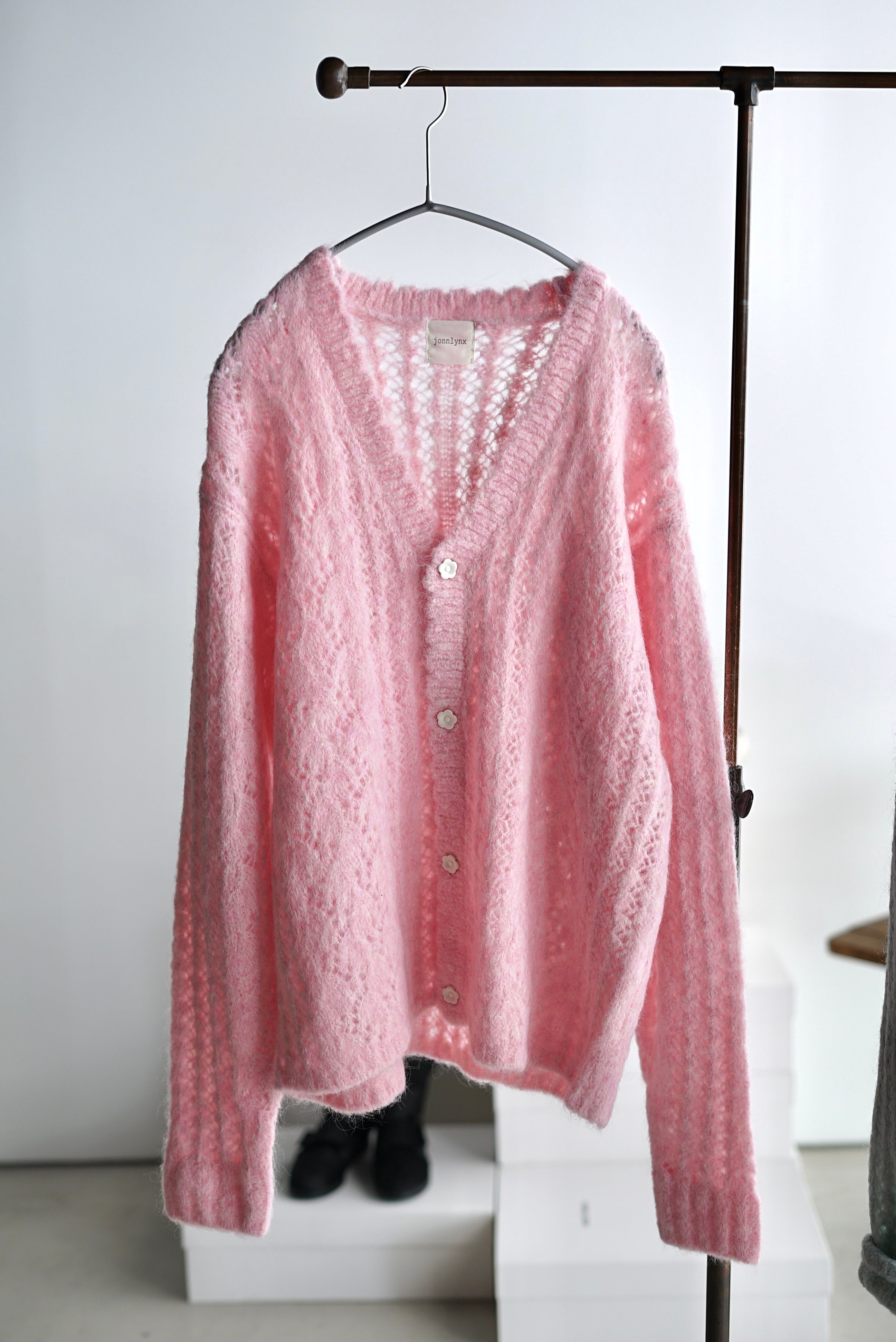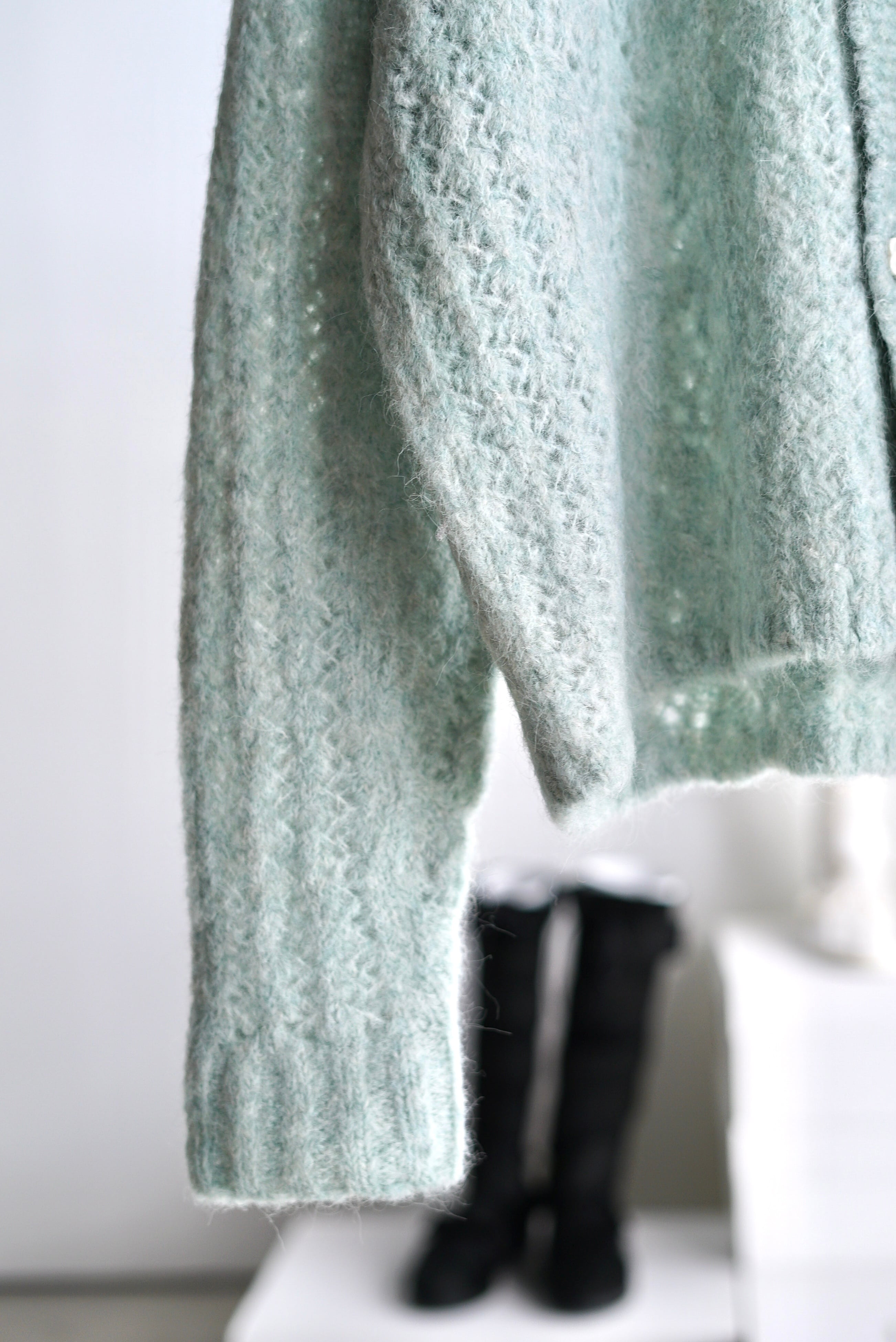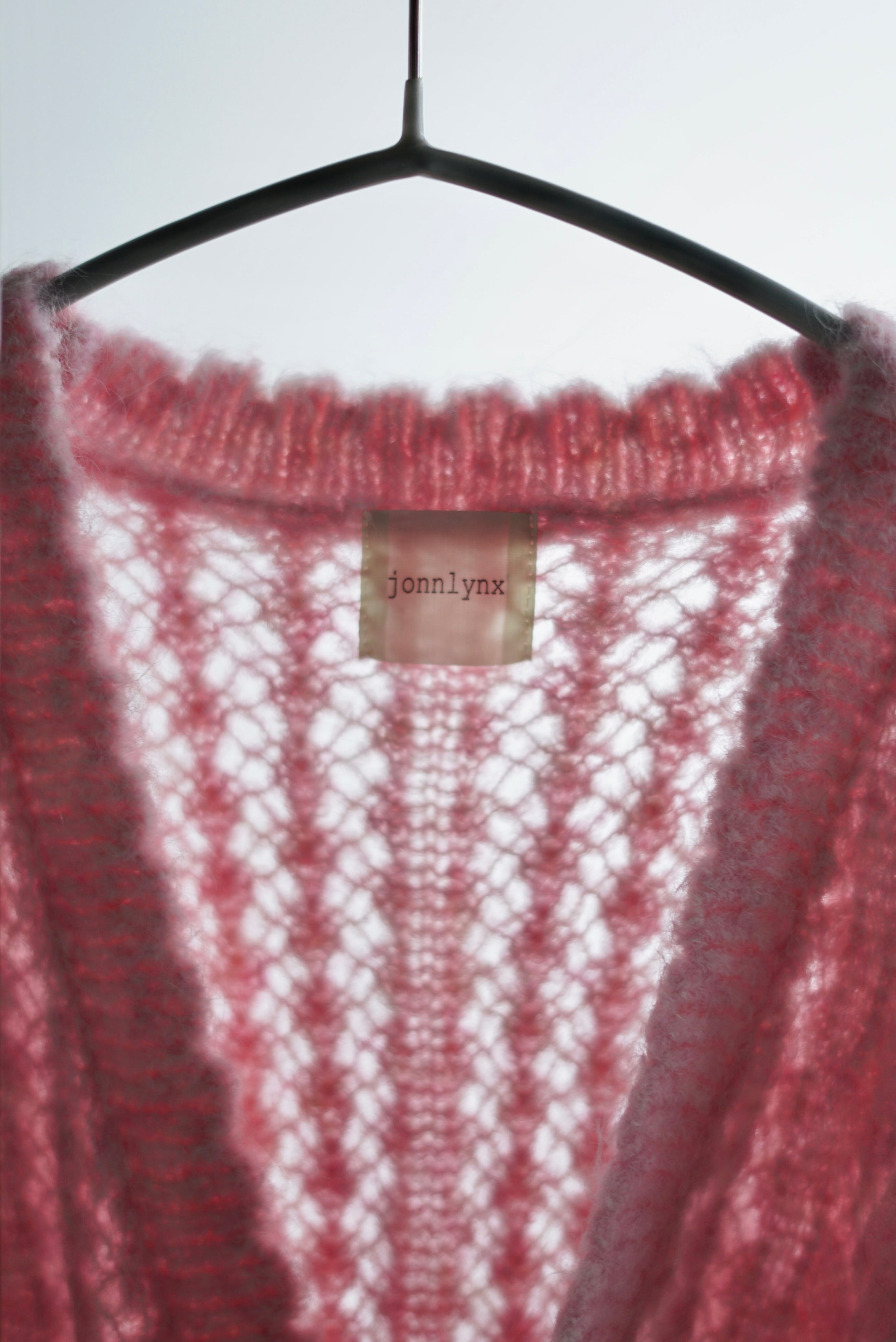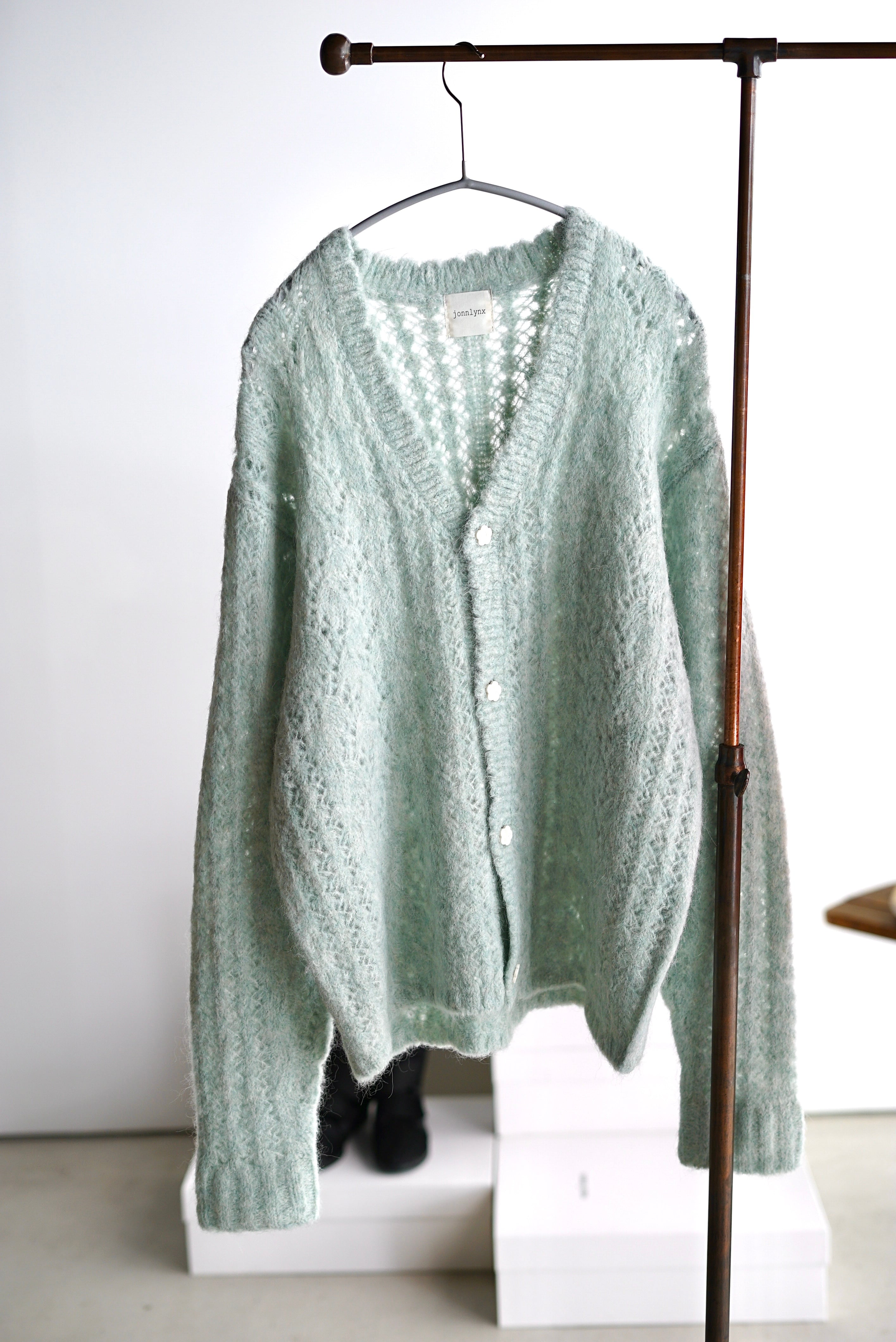 jonnlynx / mohair sukashi knit cardigan (green, pink)