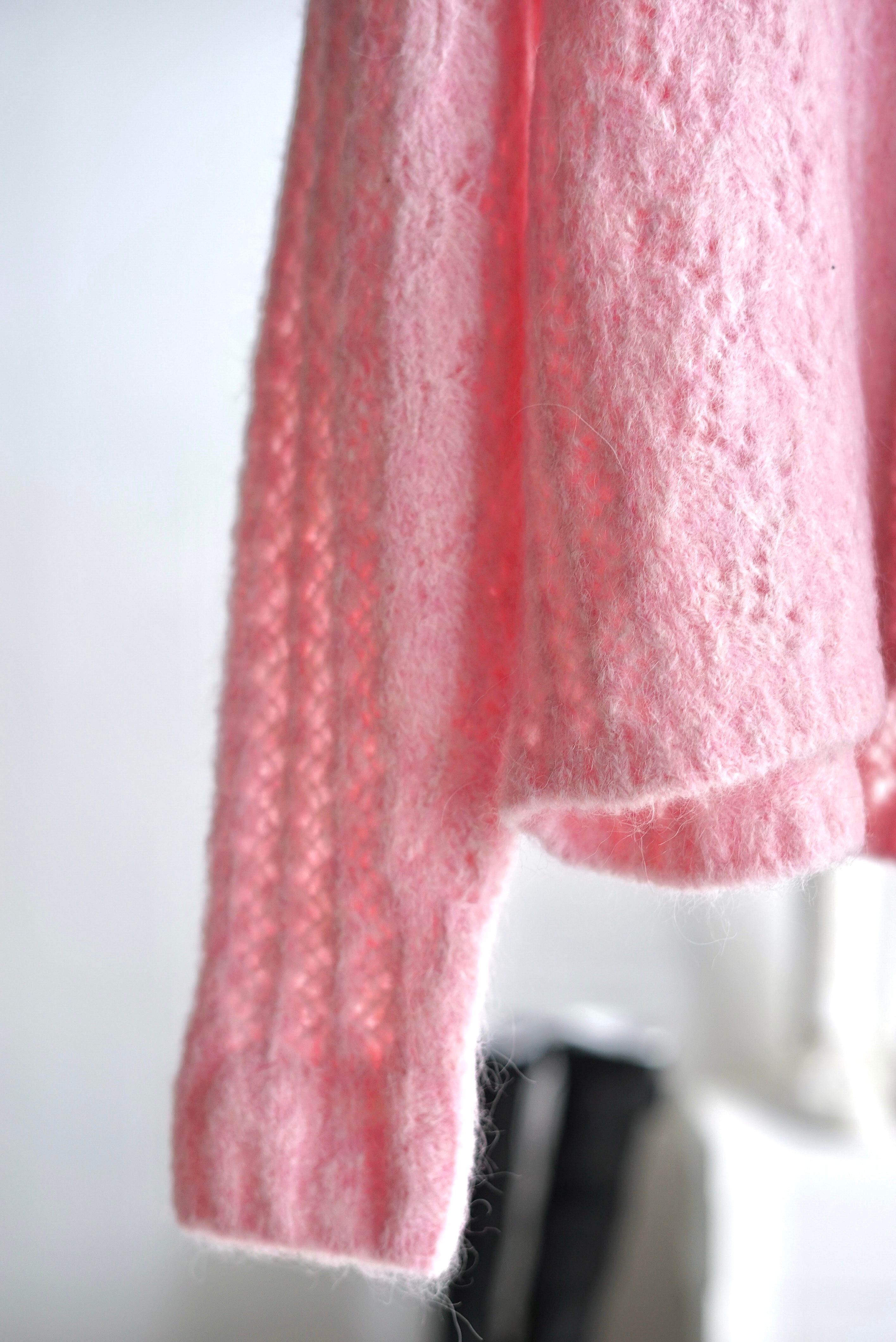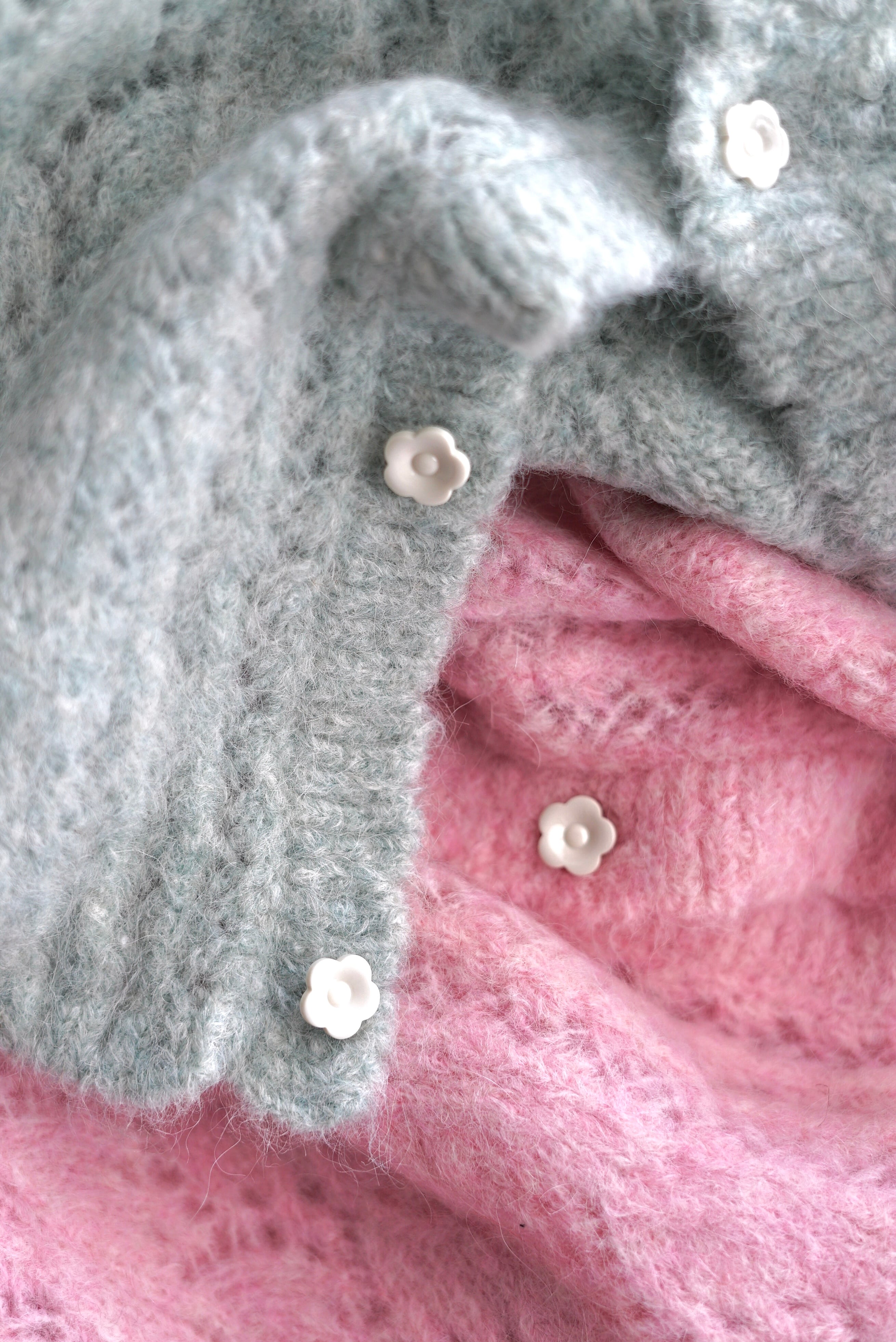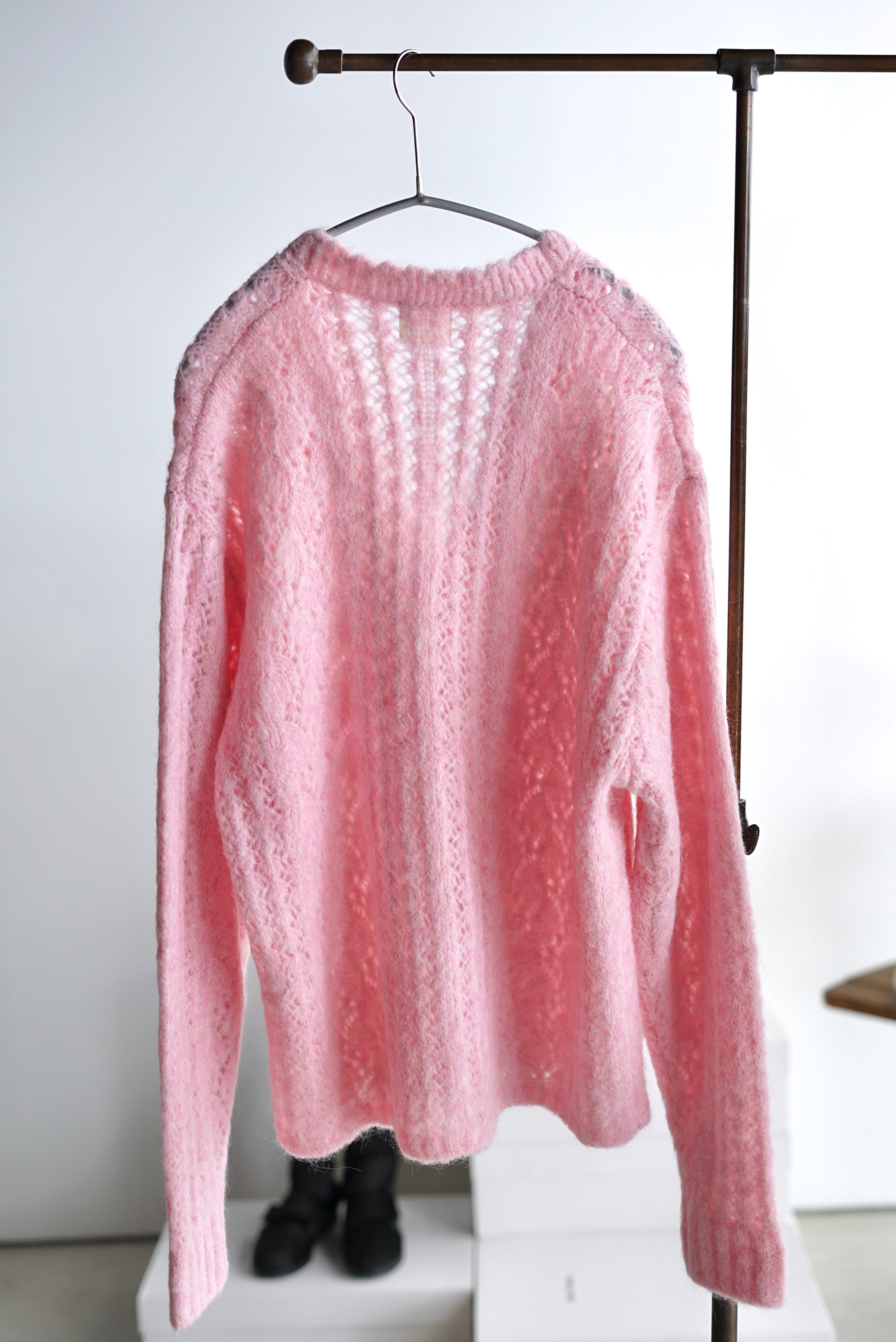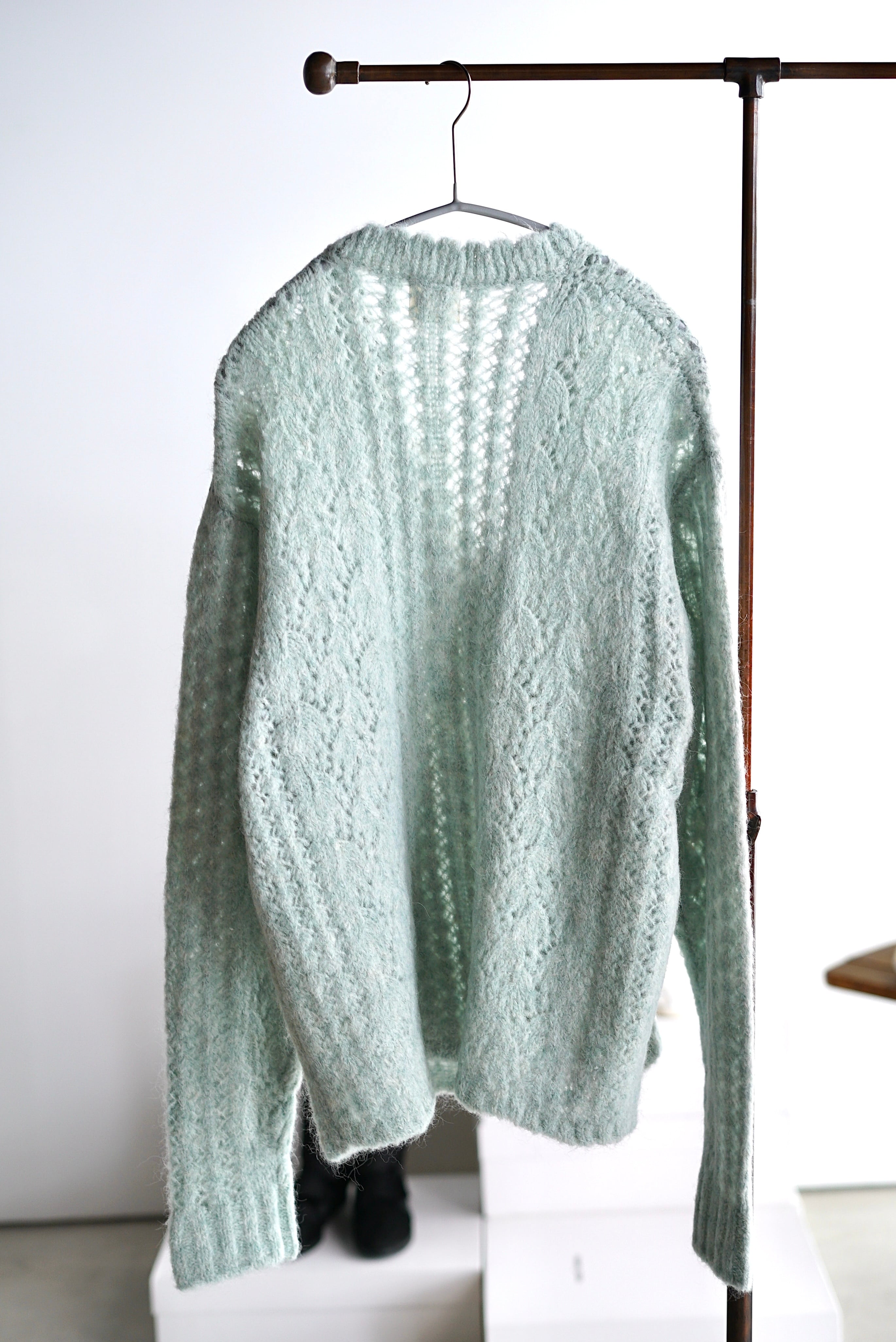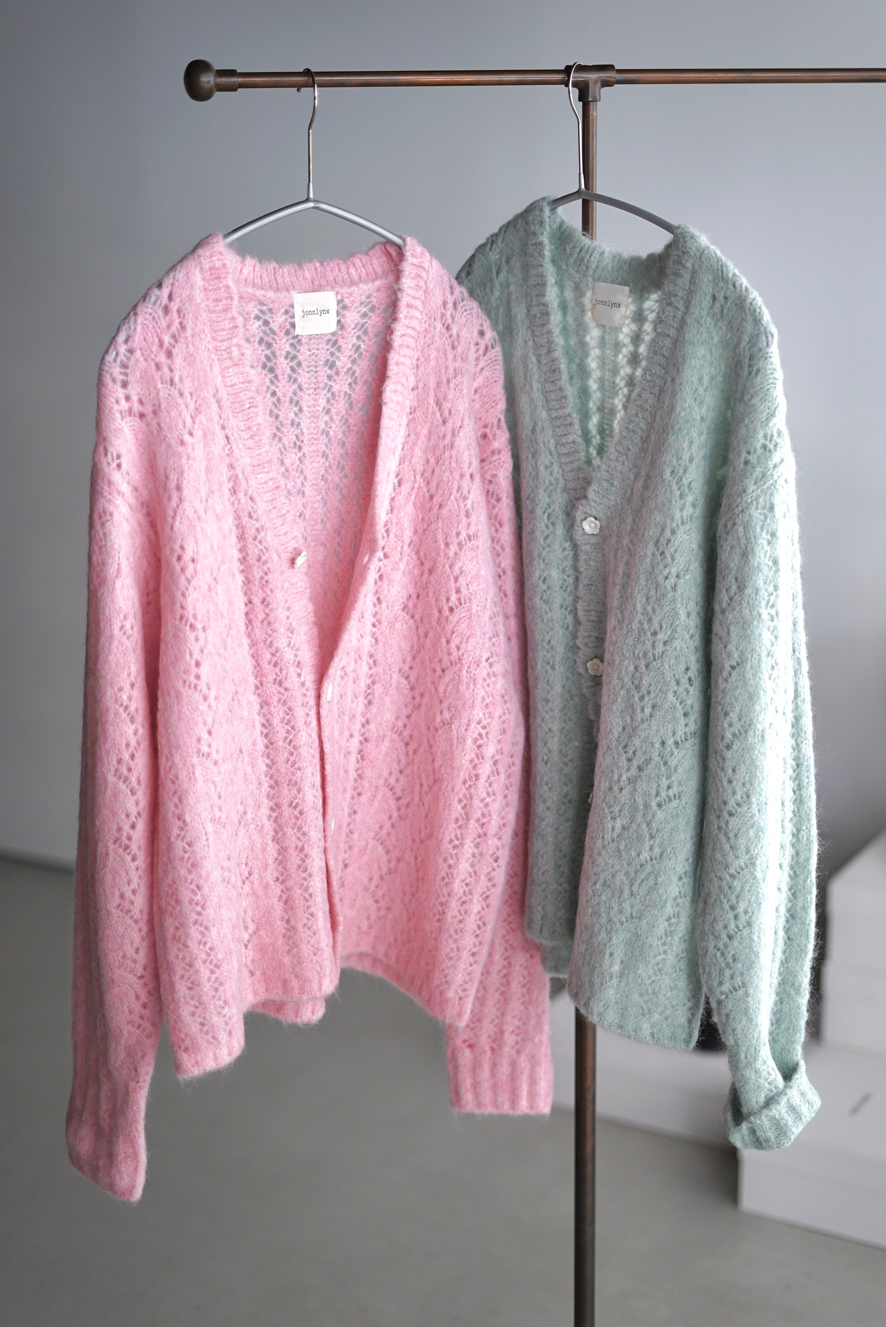 jonnlynx / mohair sukashi knit cardigan (green, pink)