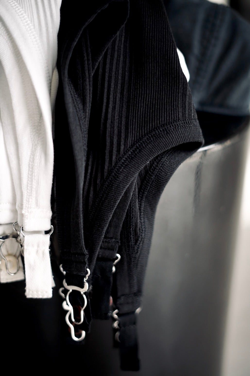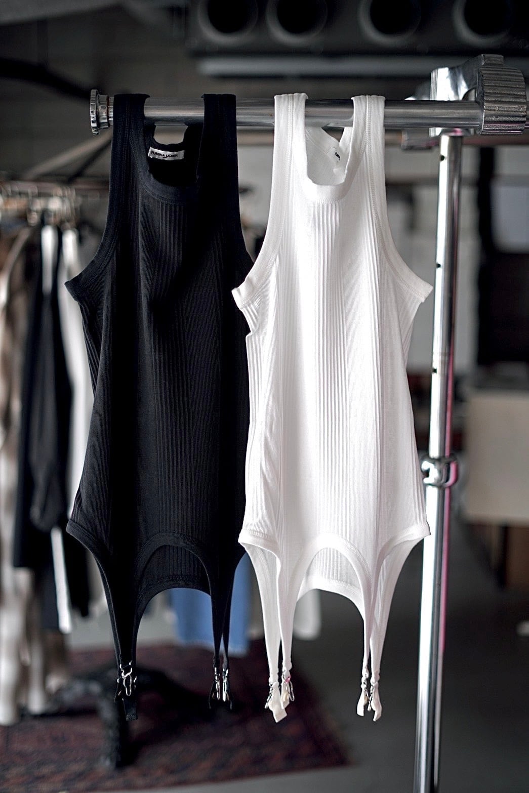 FUMIKA_UCHIDA / NEEDLE DRAWING GARTER TANK TOP (WHITE / BLACK)