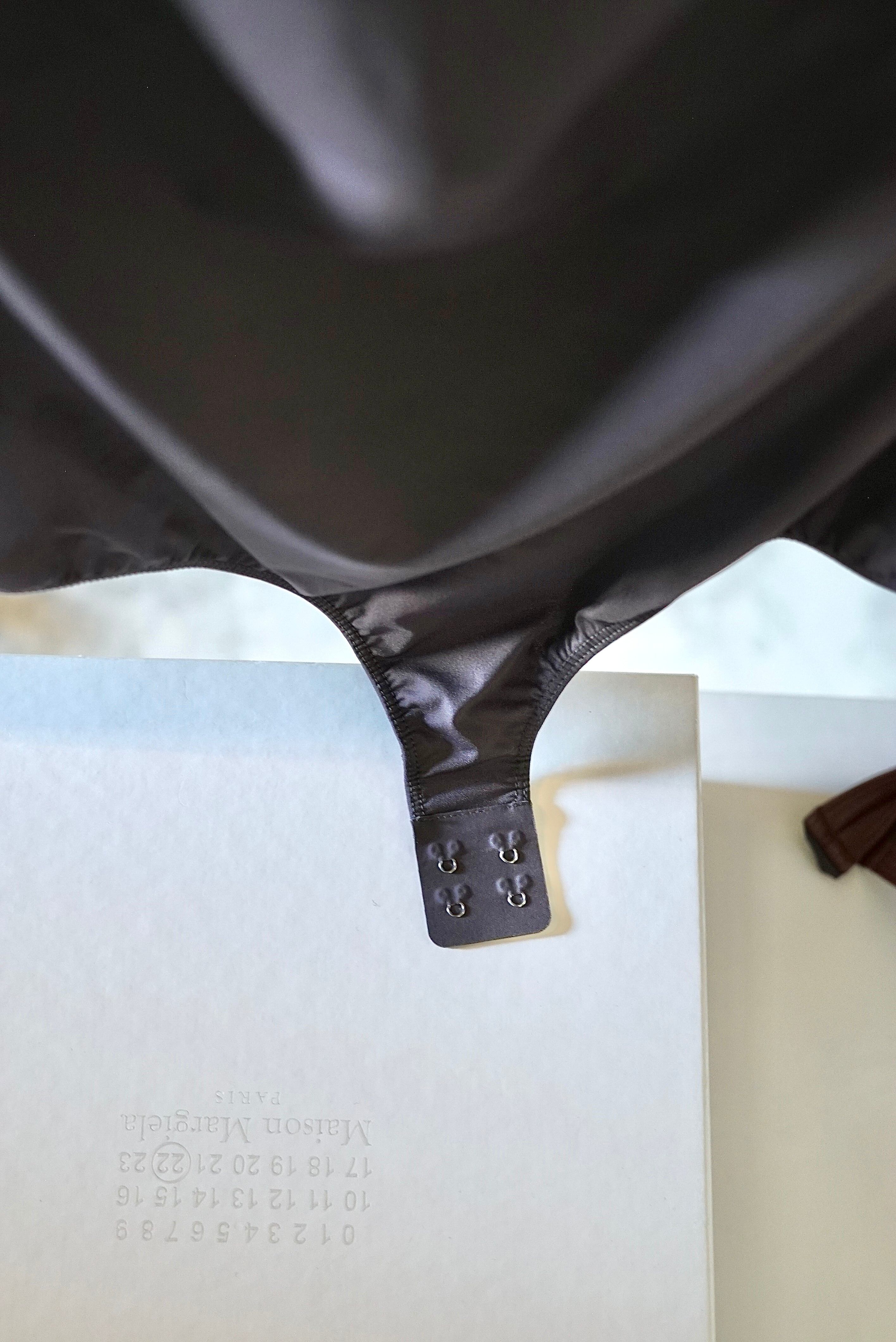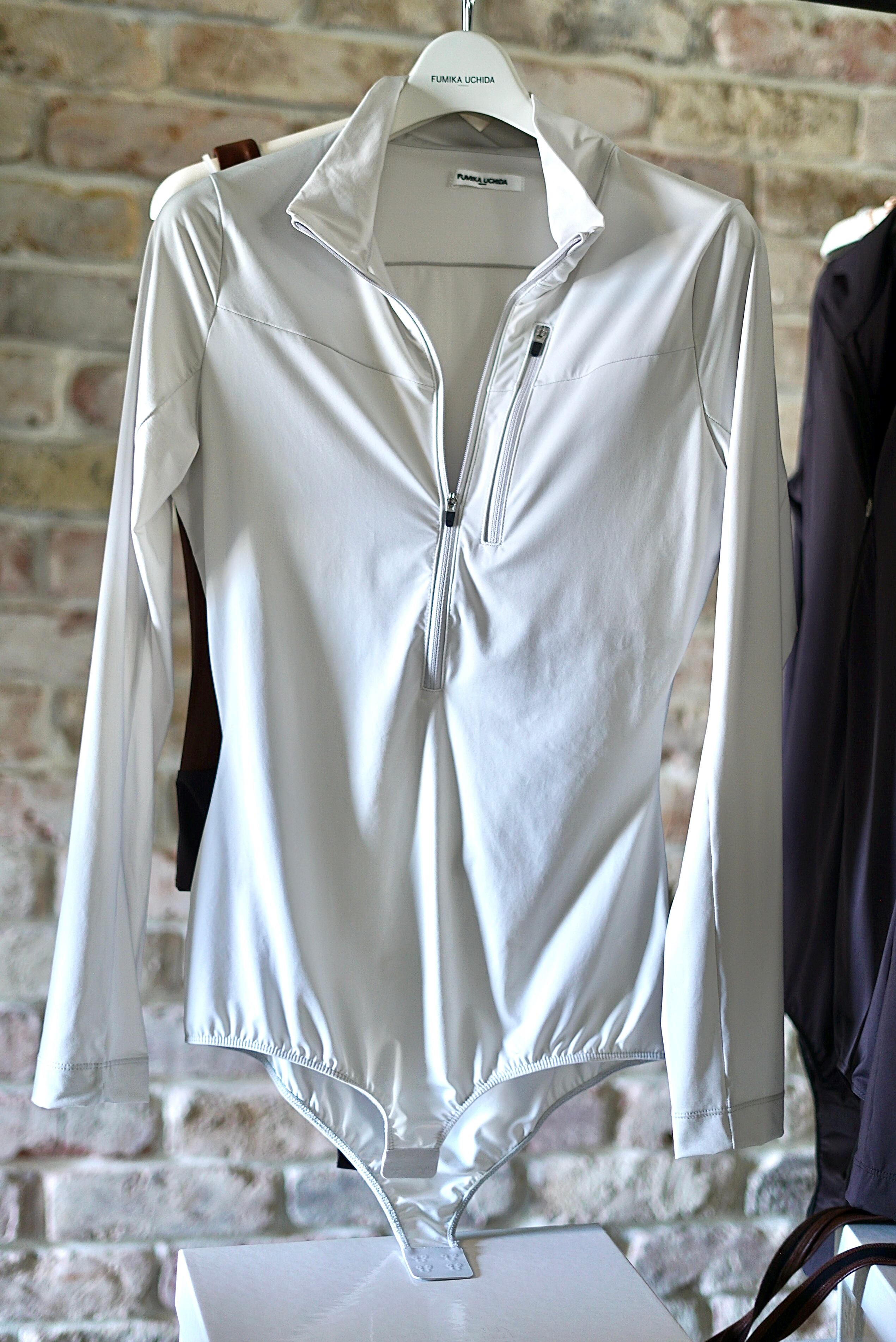 FUMIKA_UCHIDA / NYLON JERSEY HALF-ZIP BODYSUIT ( LIGHT GREY, TAUPE )