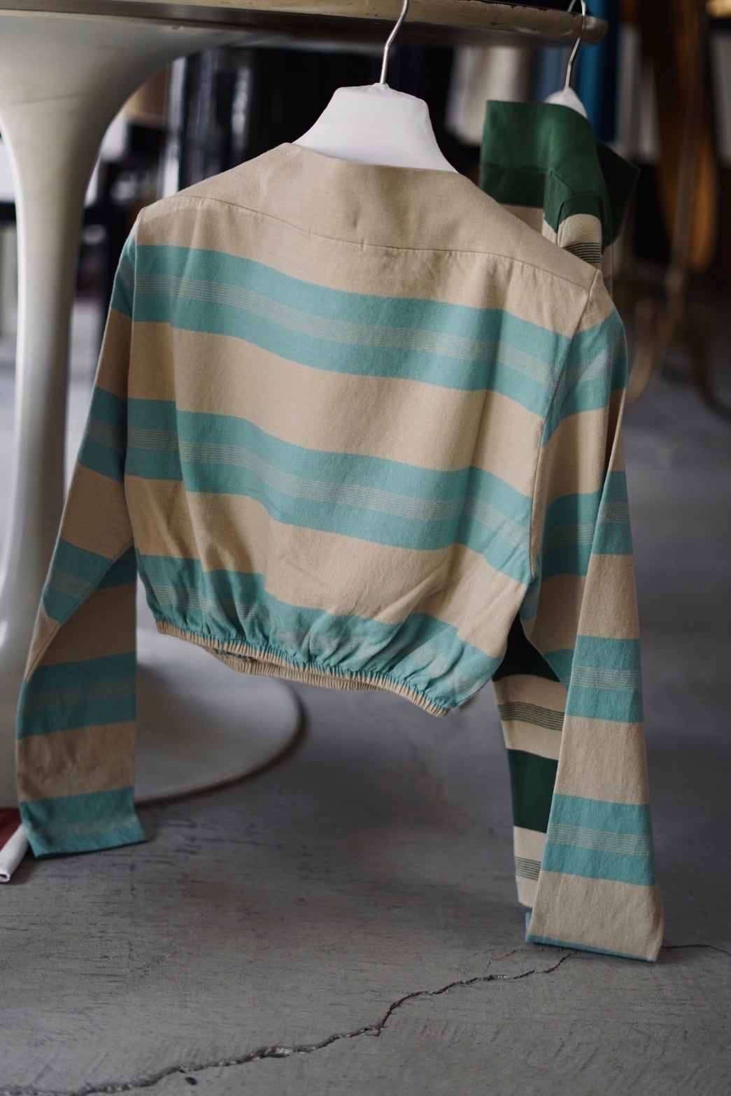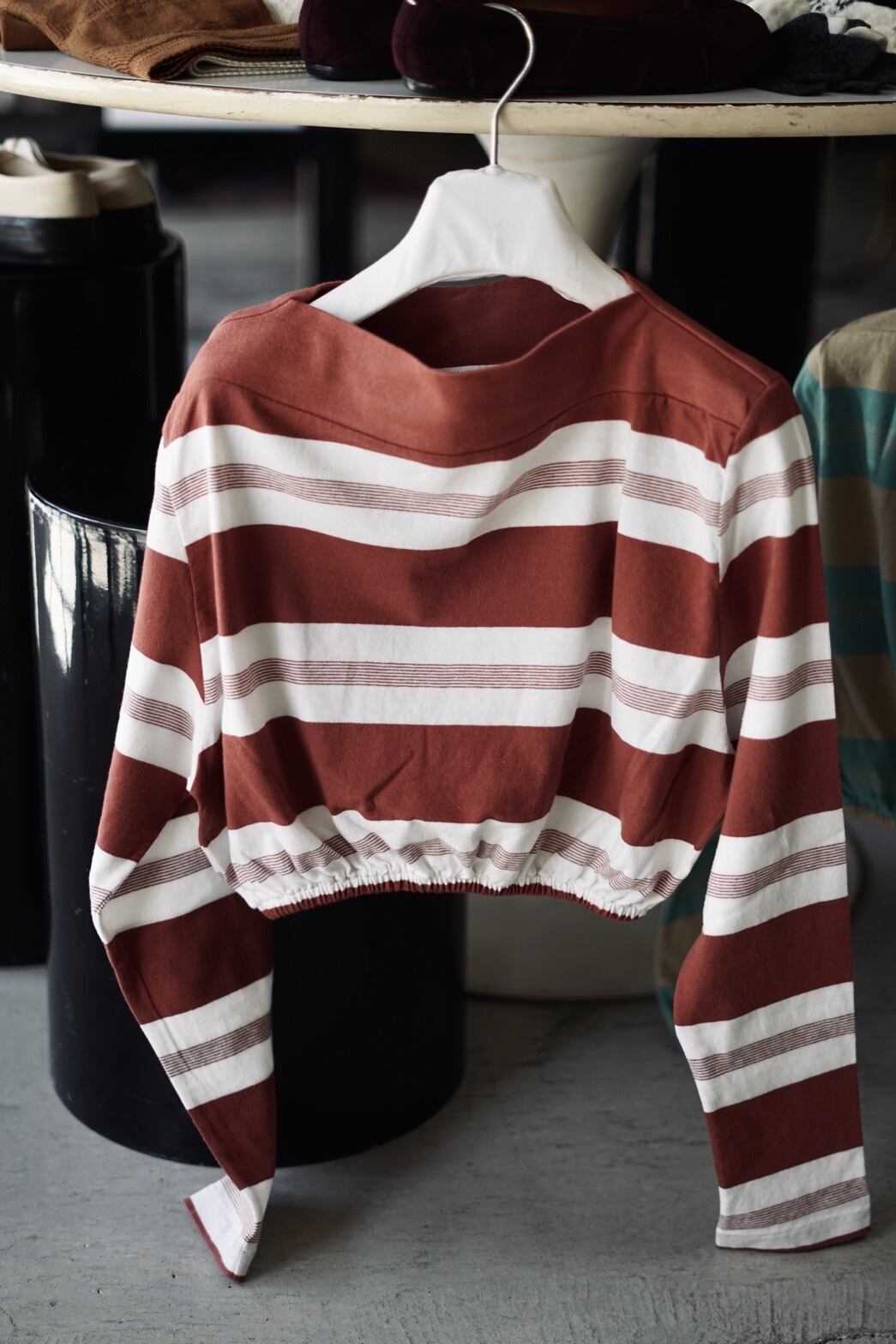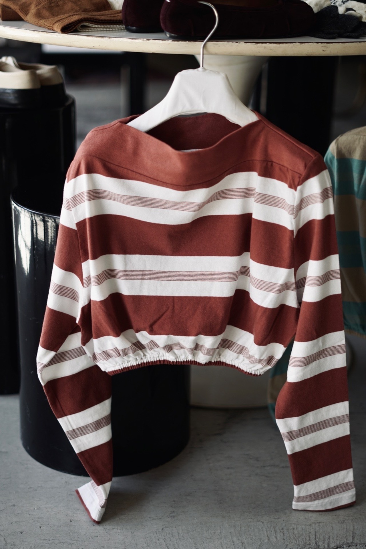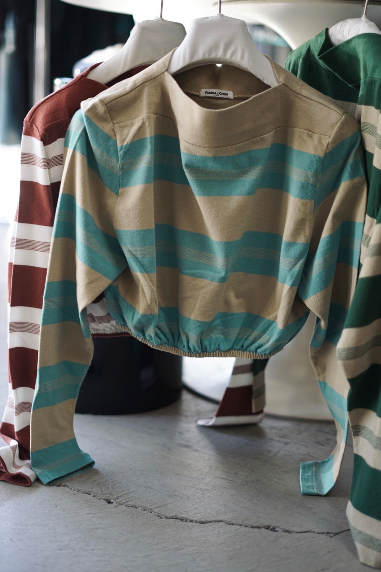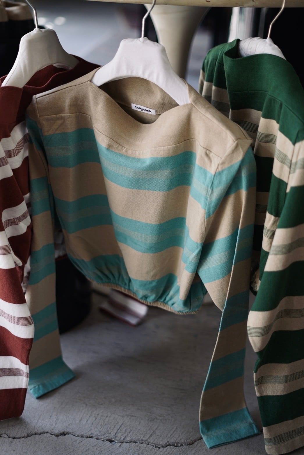 FUMIKA_UCHIDA / COTTON JERSEY CROPPED TOP (SAX/BEIGE , OFF/BORDEAUX , BEIGE/GREEN)