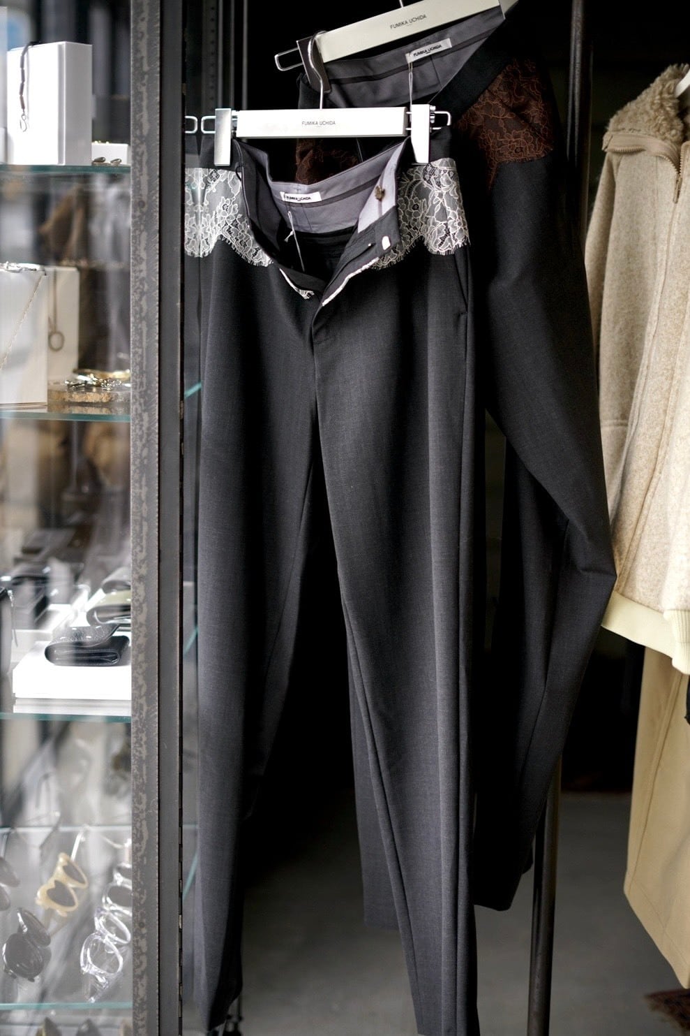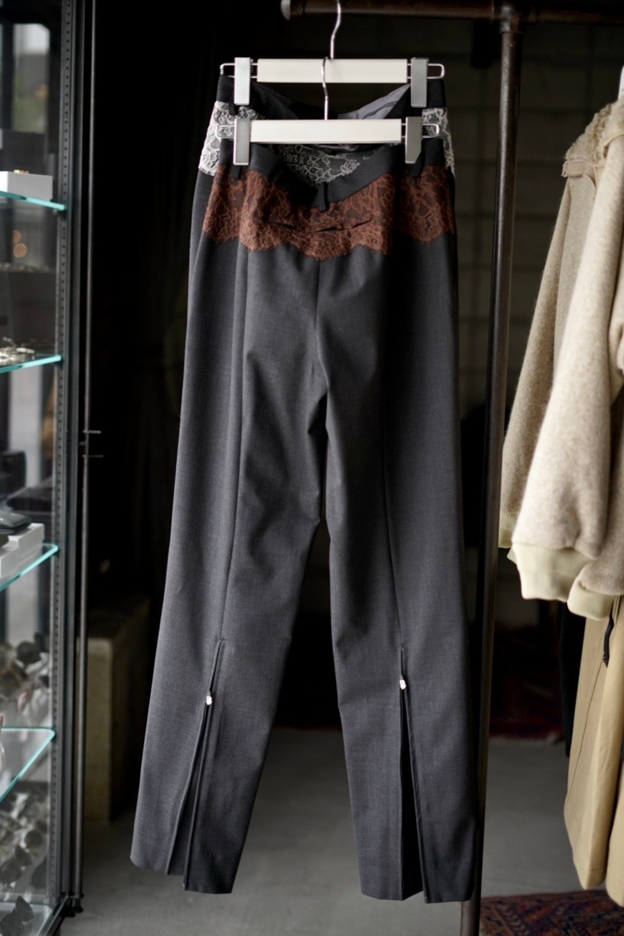 FUMIKA_UCHIDA / SUITING LACE WAIST PANTS ( CHARCOAL/WHITE , CHARCOAL/BROWN )