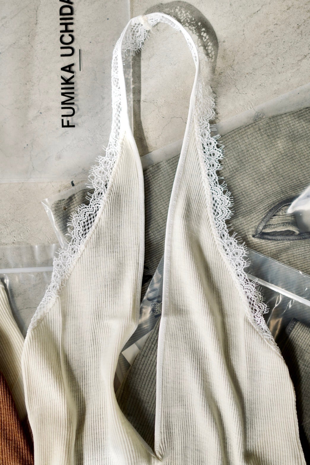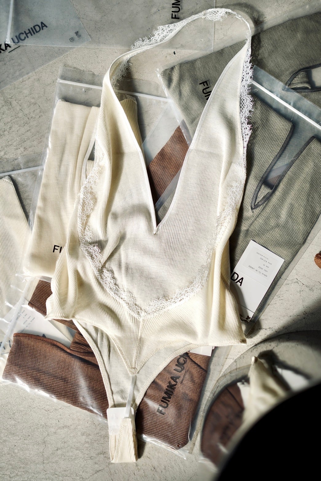 FUMIKA_UCHIDA / RIB HALTER-NECK BODYSUIT ( KINARI , SAGE , BROWN )