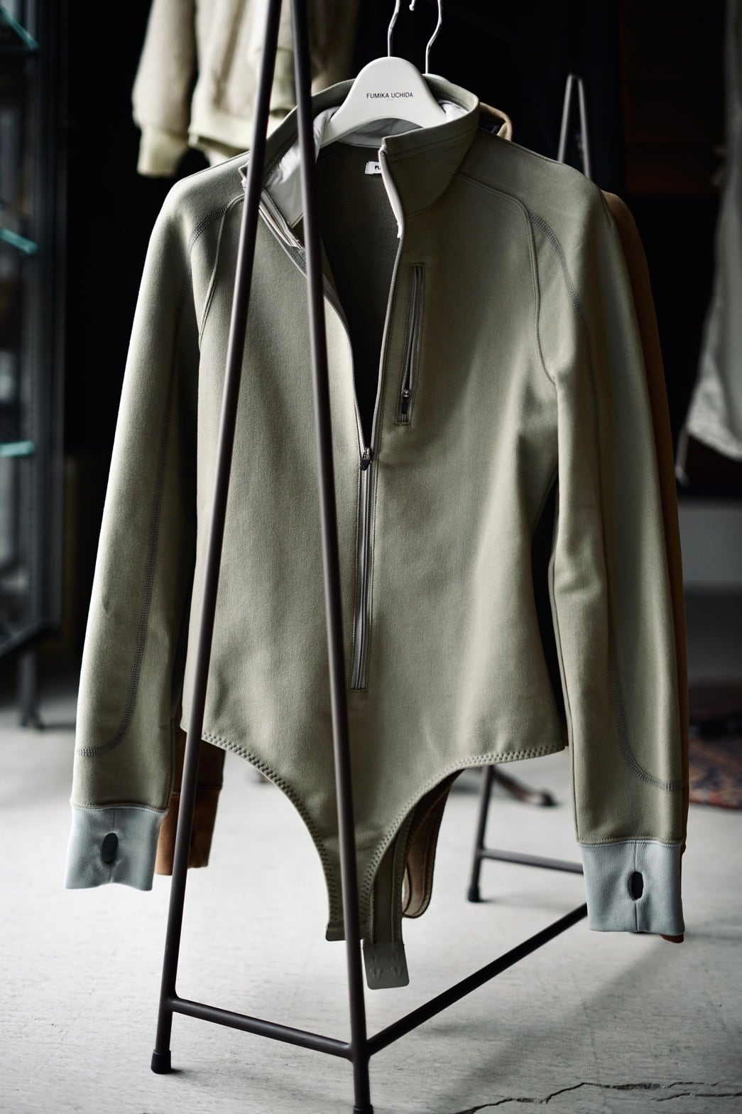 FUMIKA_UCHIDA / FRENCH TERRY HALF-ZIP BODYSUIT ( SAGE, MOCHA )