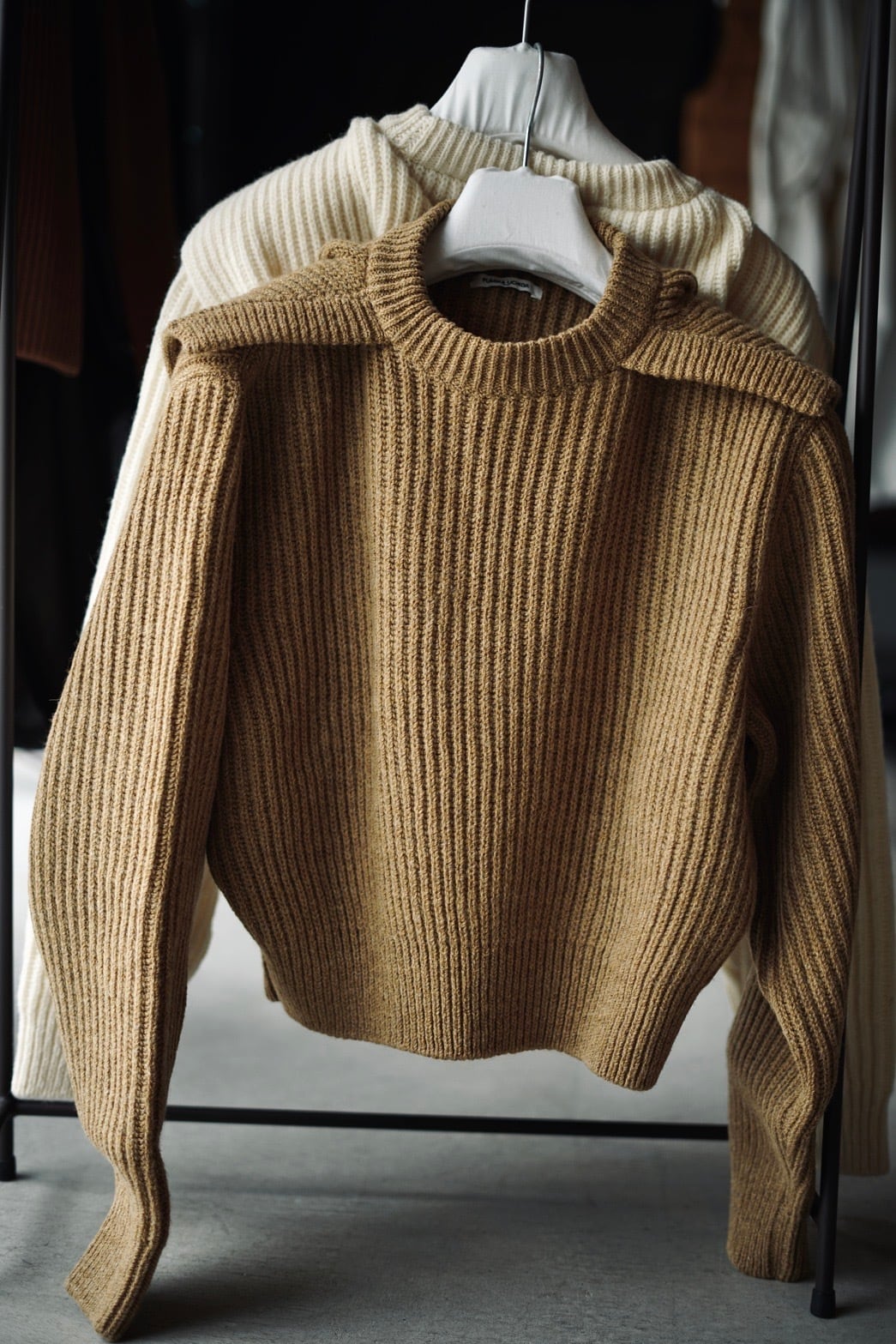 FUMIKA_UCHIDA / SHETLAND RIB STITCH HOODED PULLOVER ( IVORY , TOP BROWN )