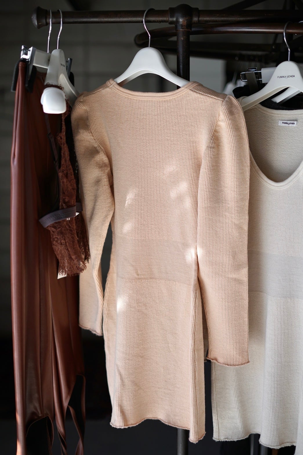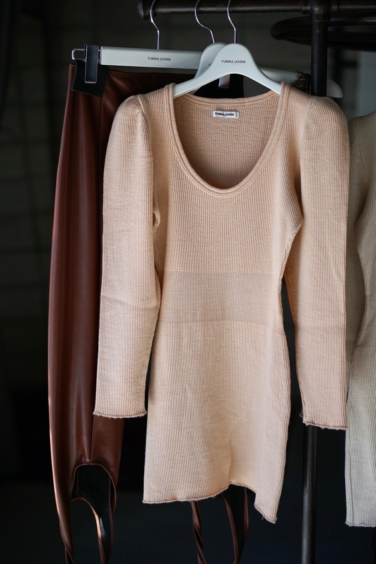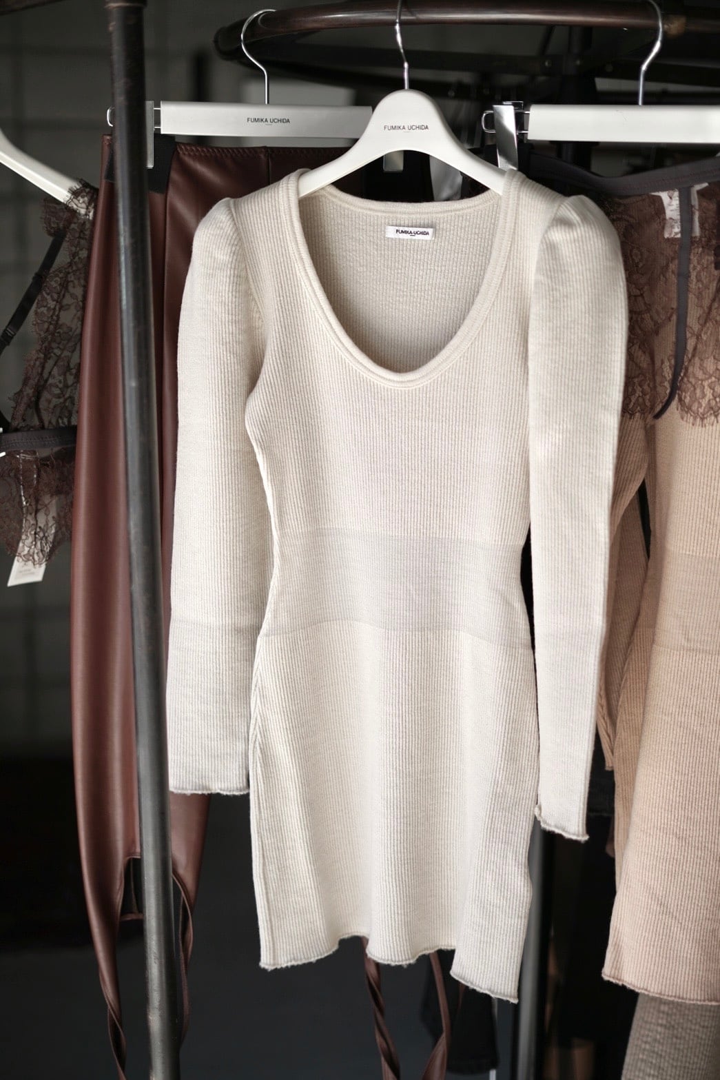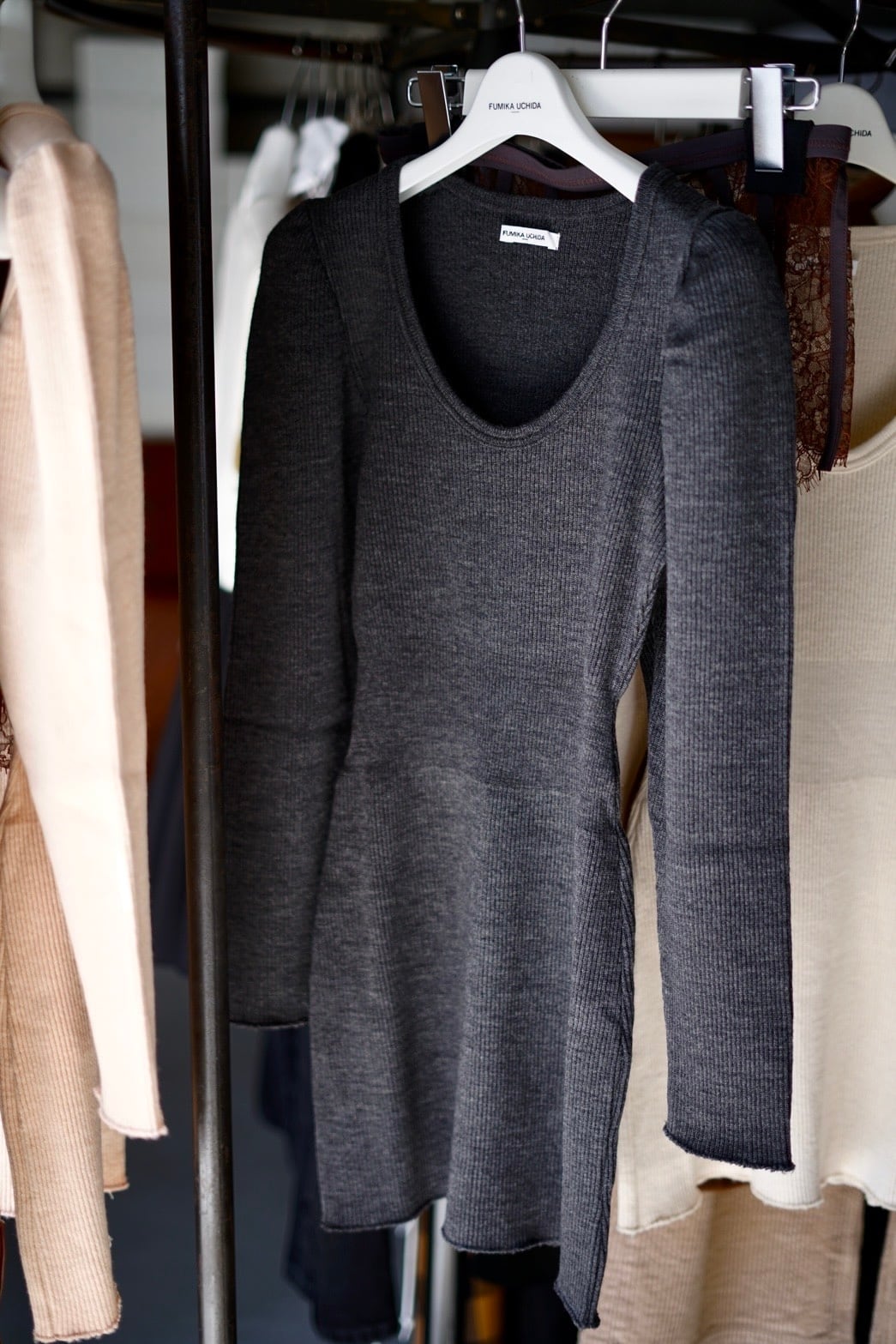 FUMIKA_UCHIDA / RIB STITCH U-NECK UNDERWEAR ( IVORY, PINK BEIGE, TOP CHARCOAL )