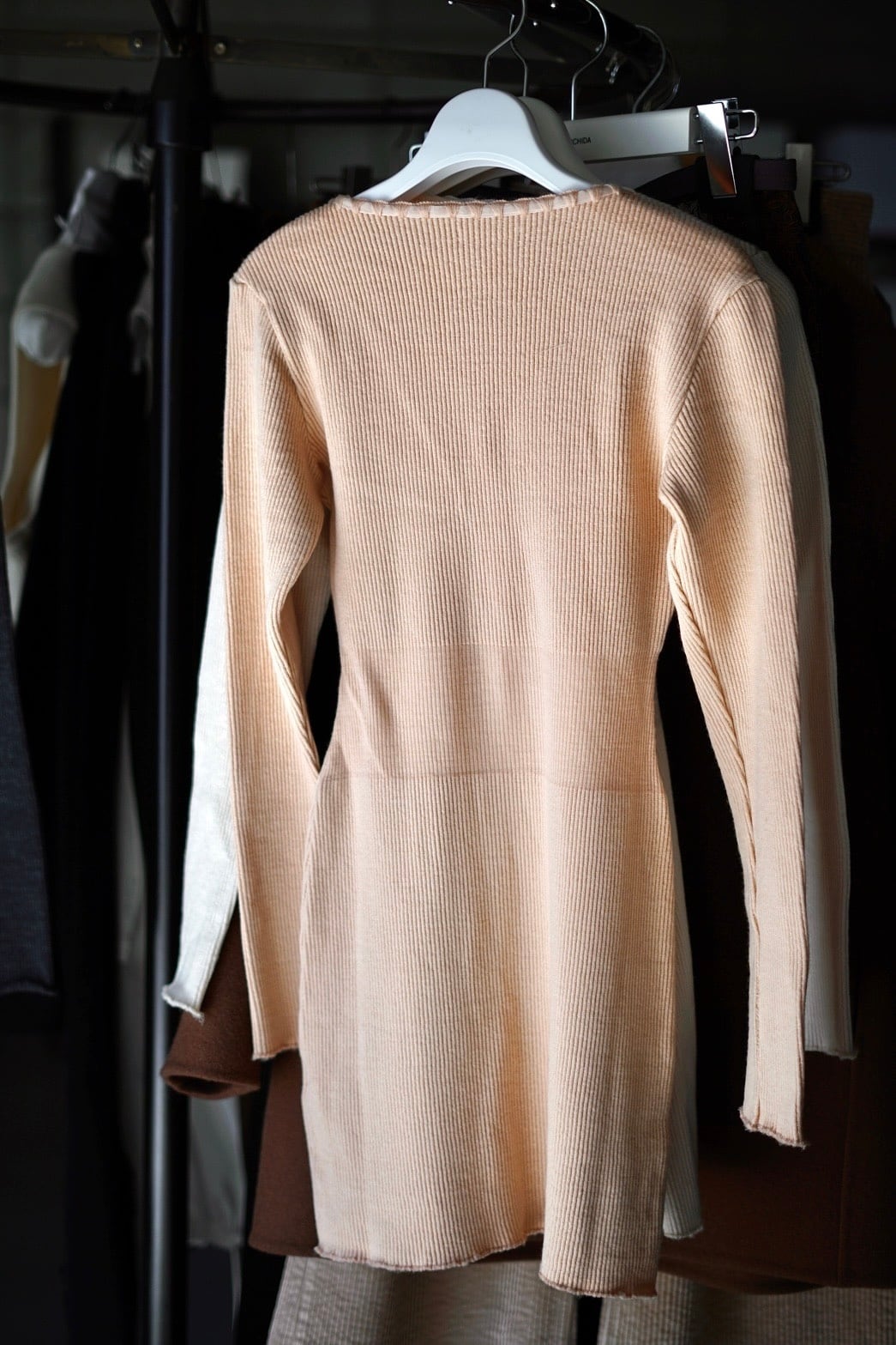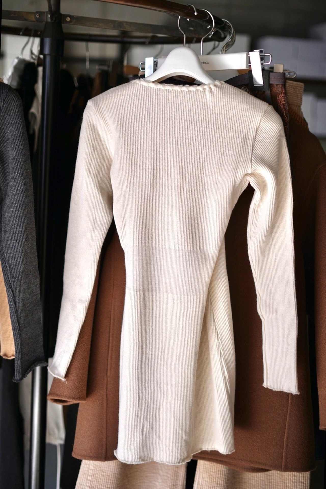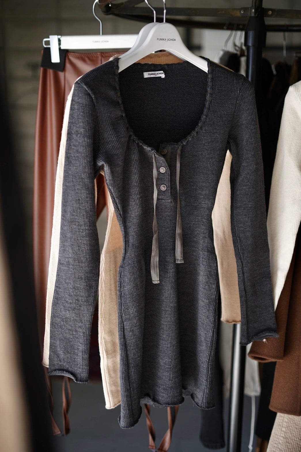 FUMIKA_UCHIDA / RIB STITCH HENLEY-NECK UNDERWEAR ( IVORY, PINK BEIGE , TOP CHARCOAL )