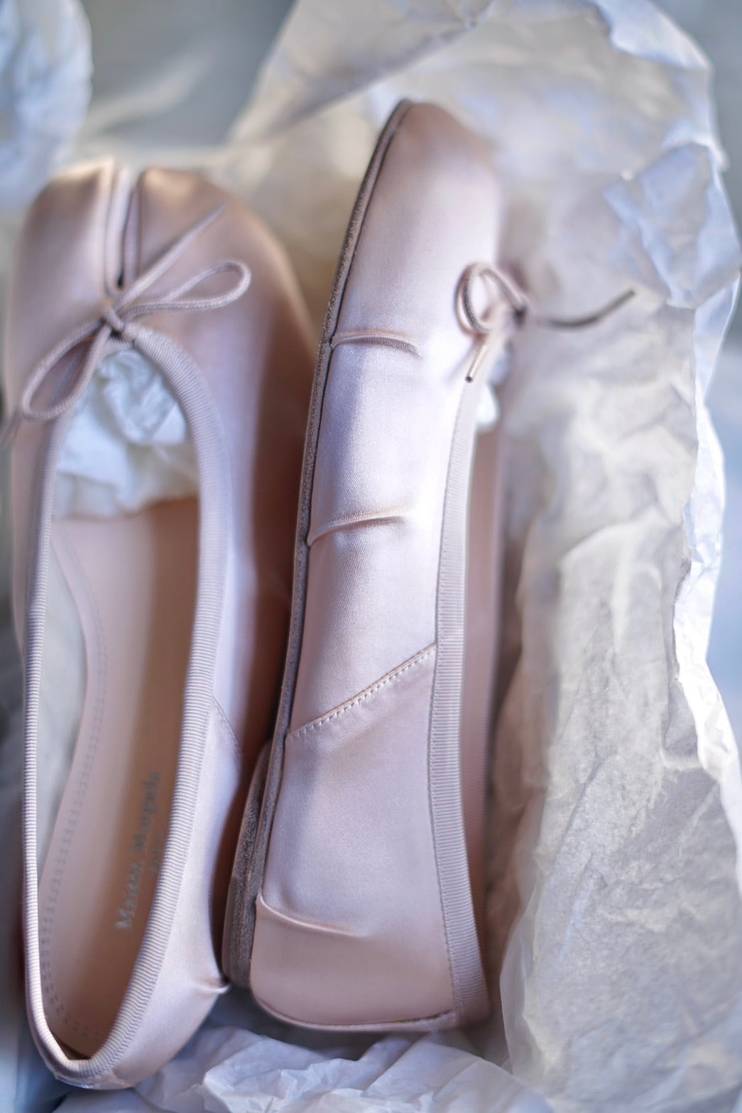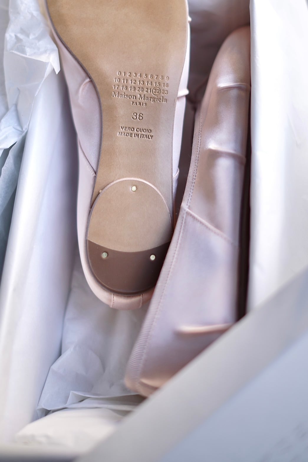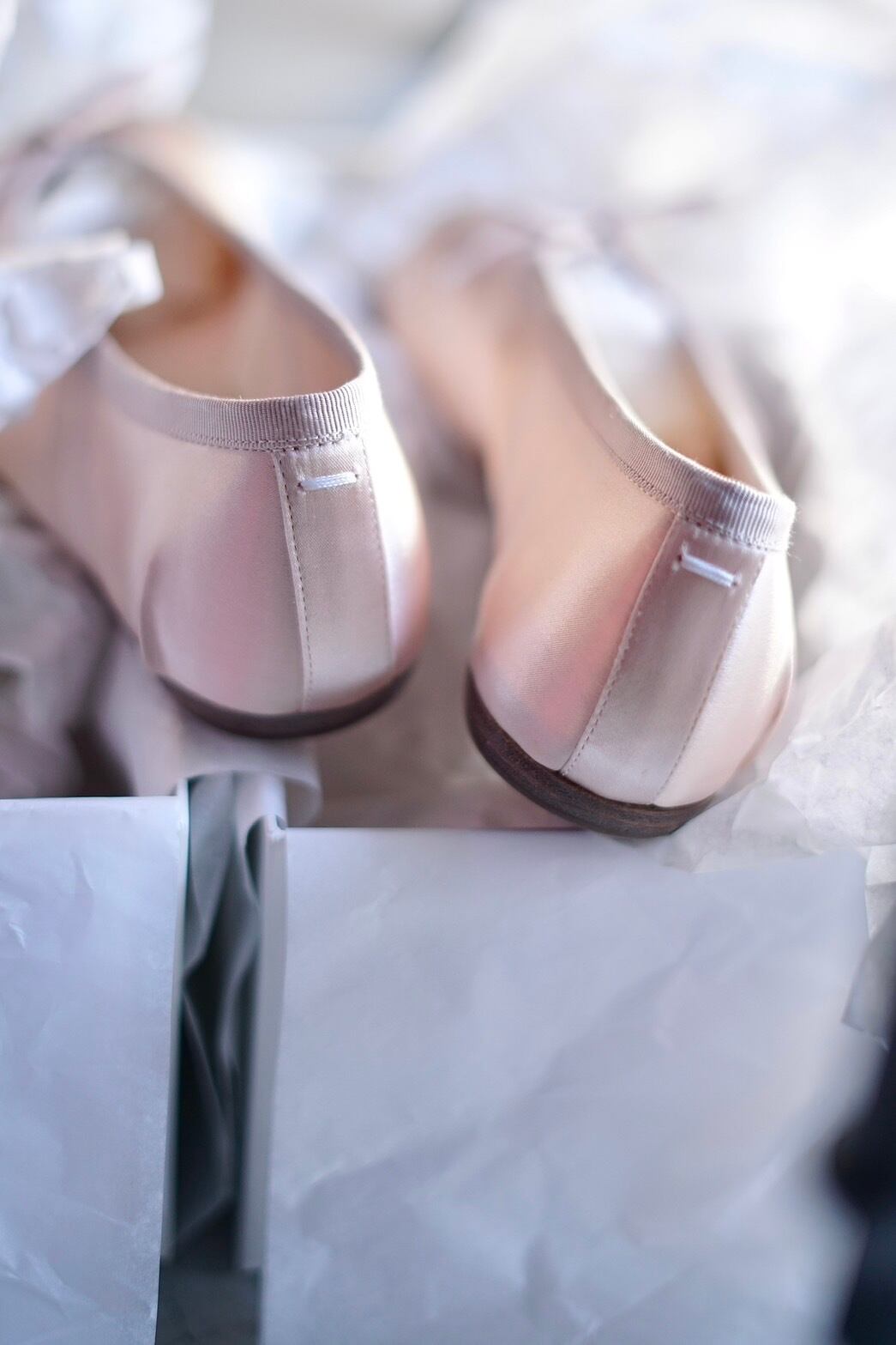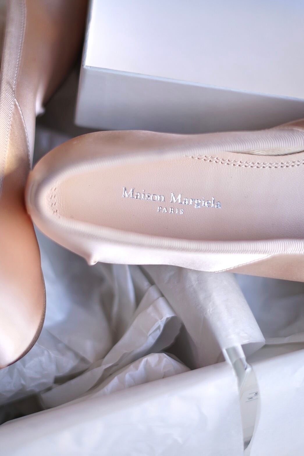 Maison Margiela / "tabi" satin ballet shoes ( Almond Peach )