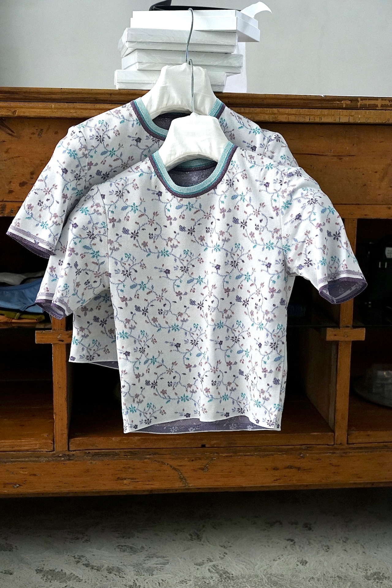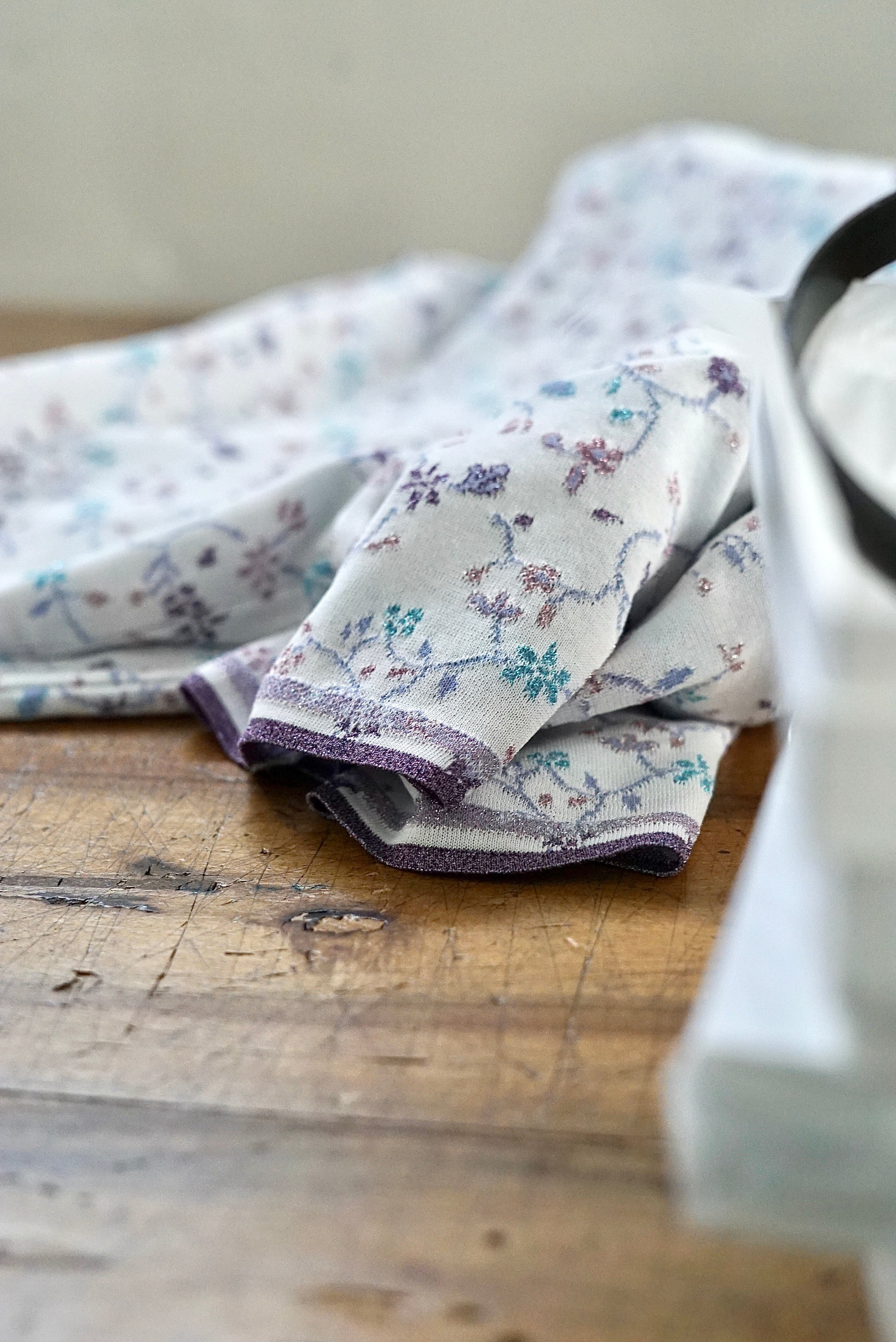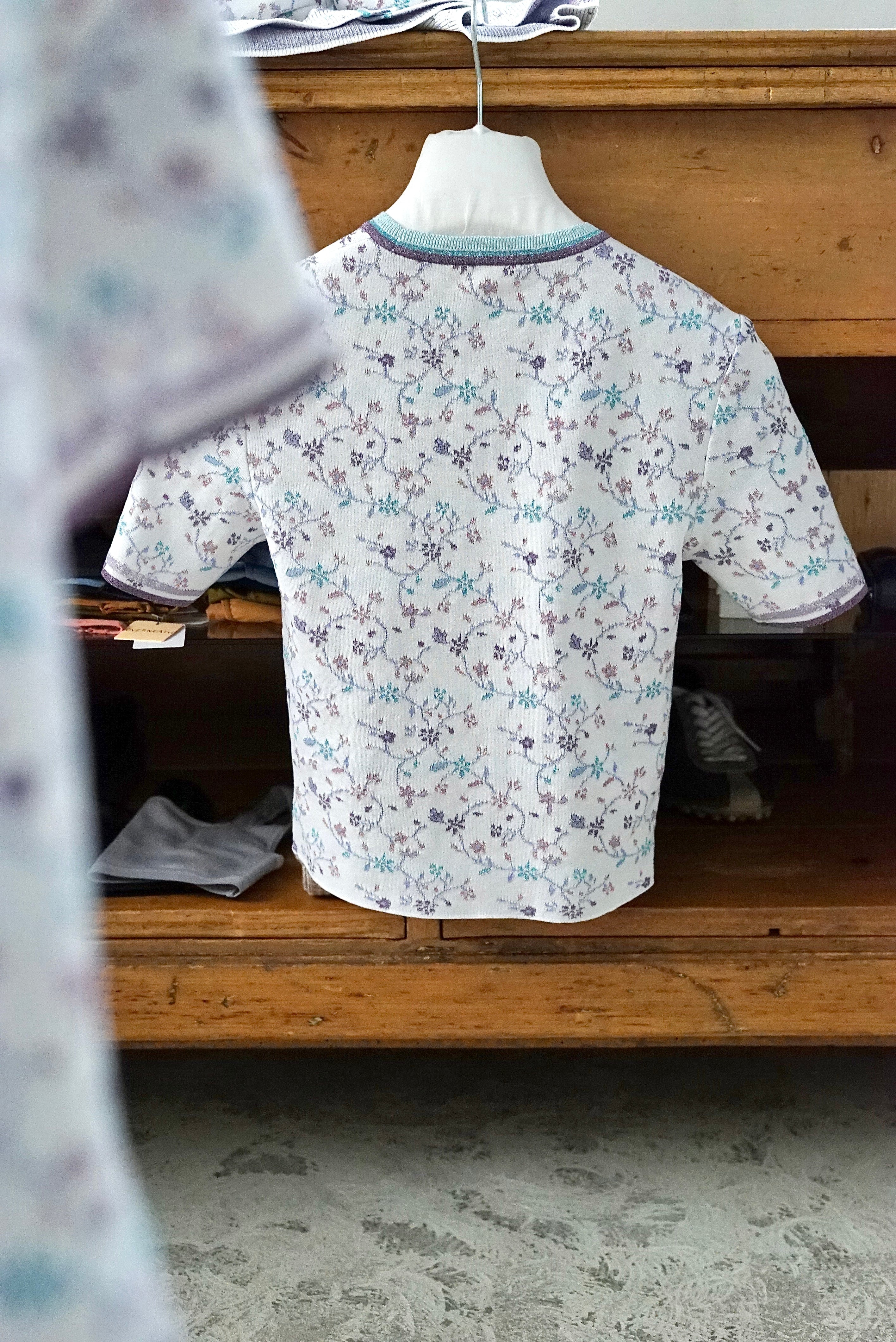 Item name / Floral Motif Glitter Short Sleeve Knit Top