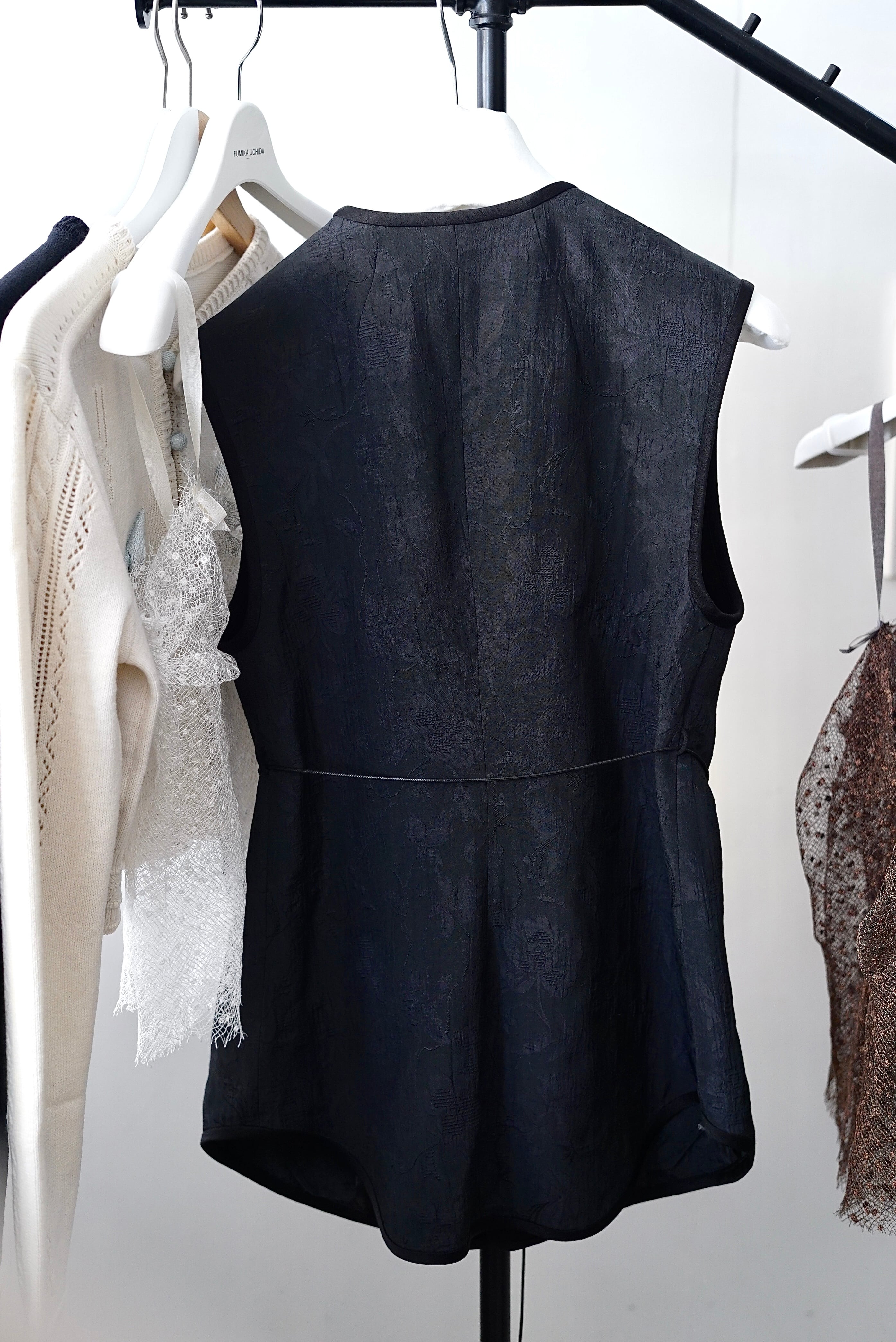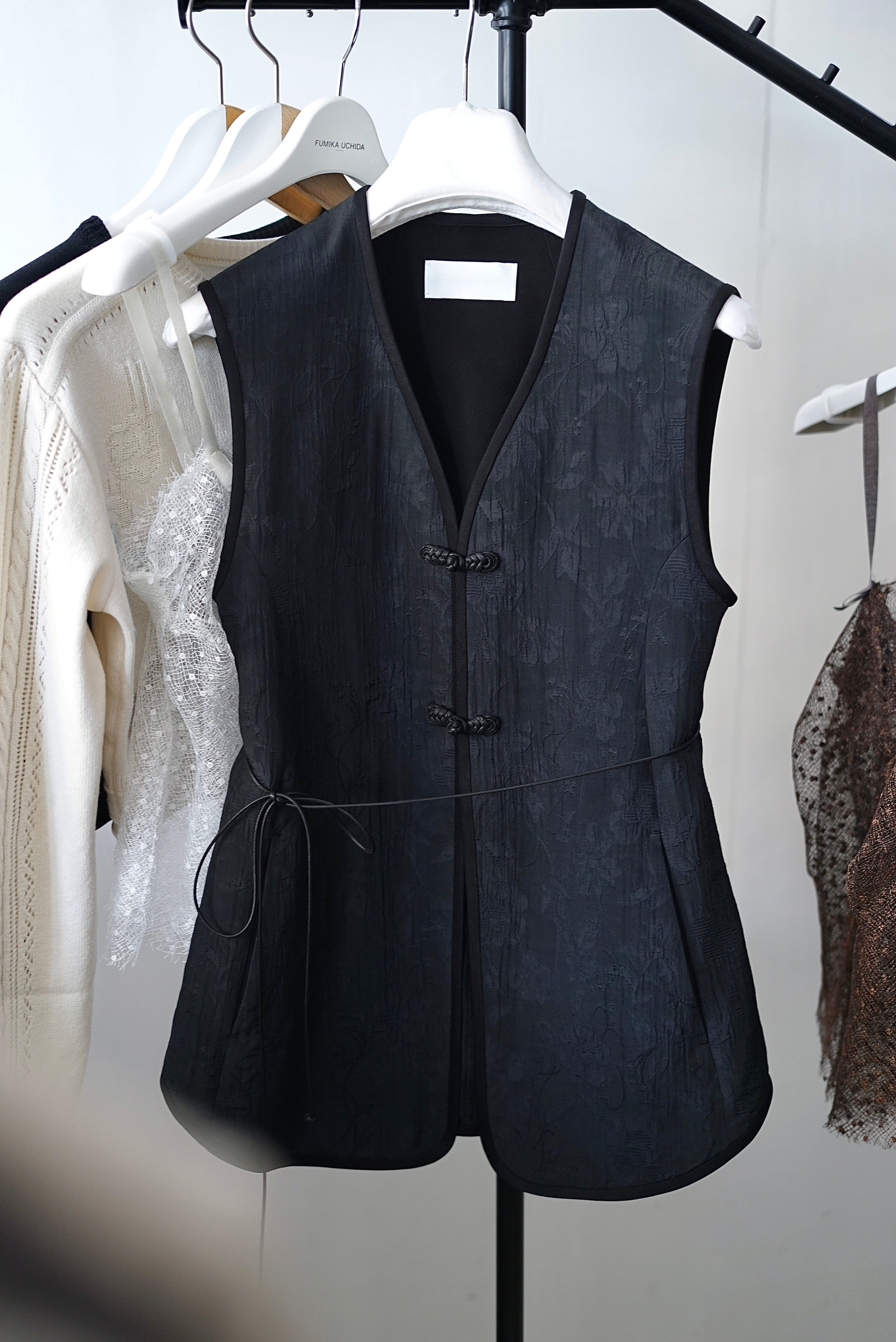 Mame Kurogouchi / Raised Jacquard Button Vest (BLACK)