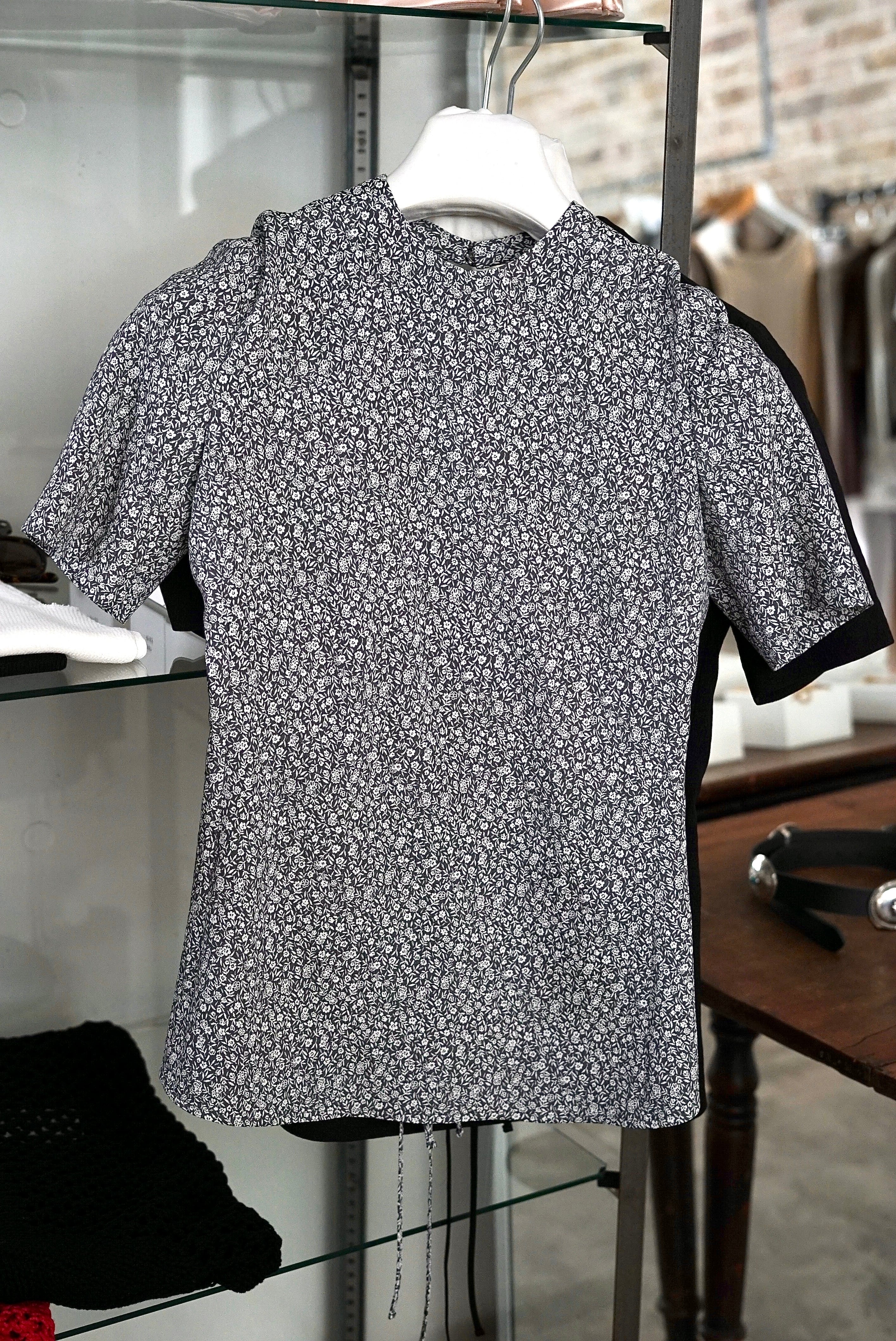 Mame Kurogouchi / Floral Jacquard Open Back Top (BLACK, GREY)