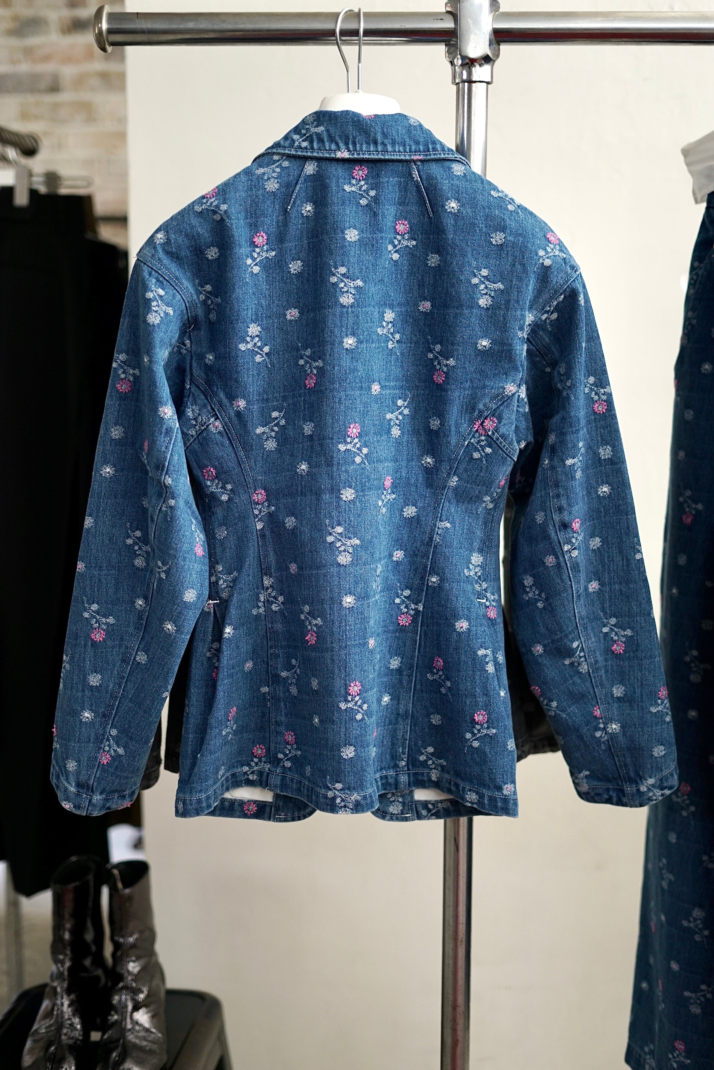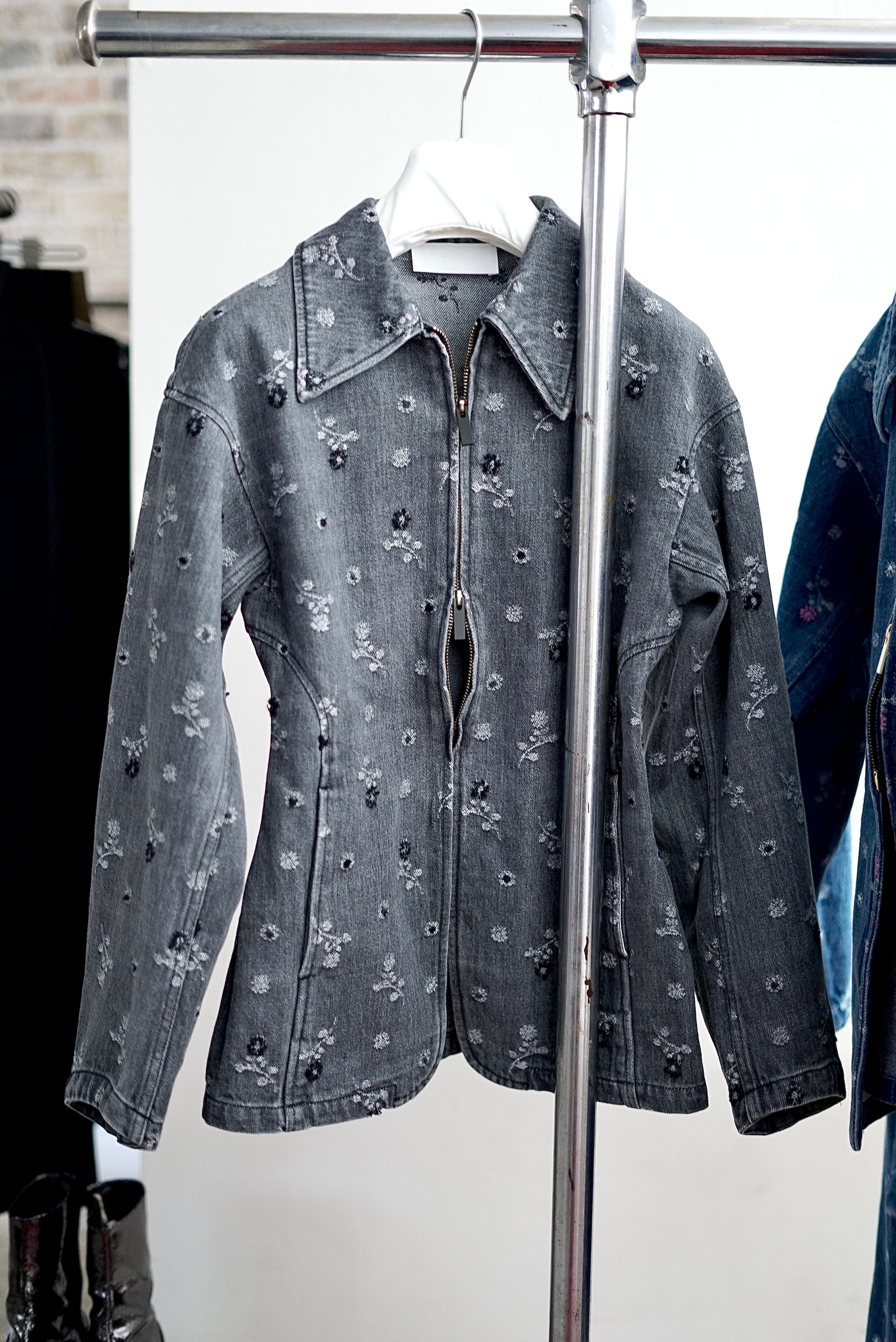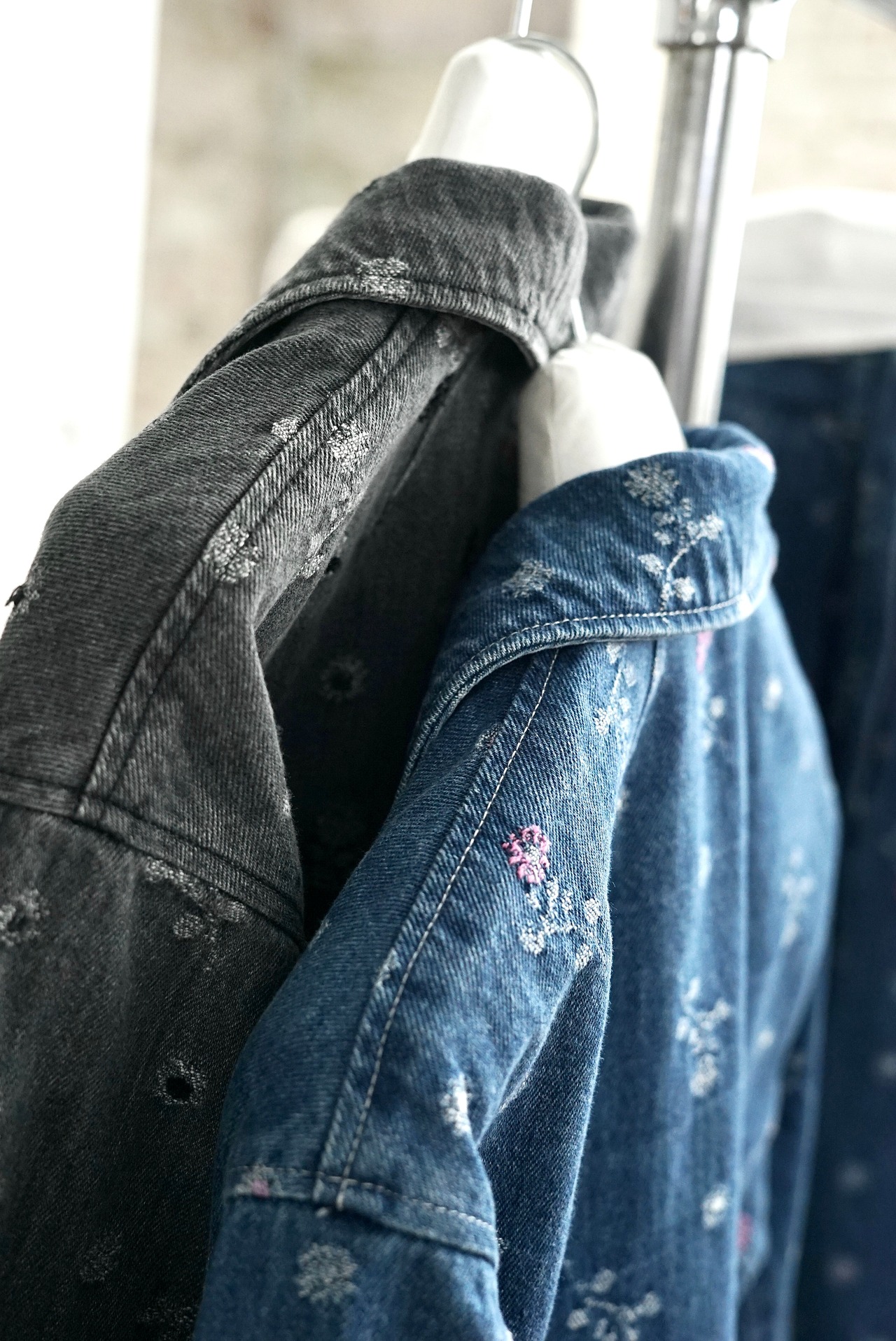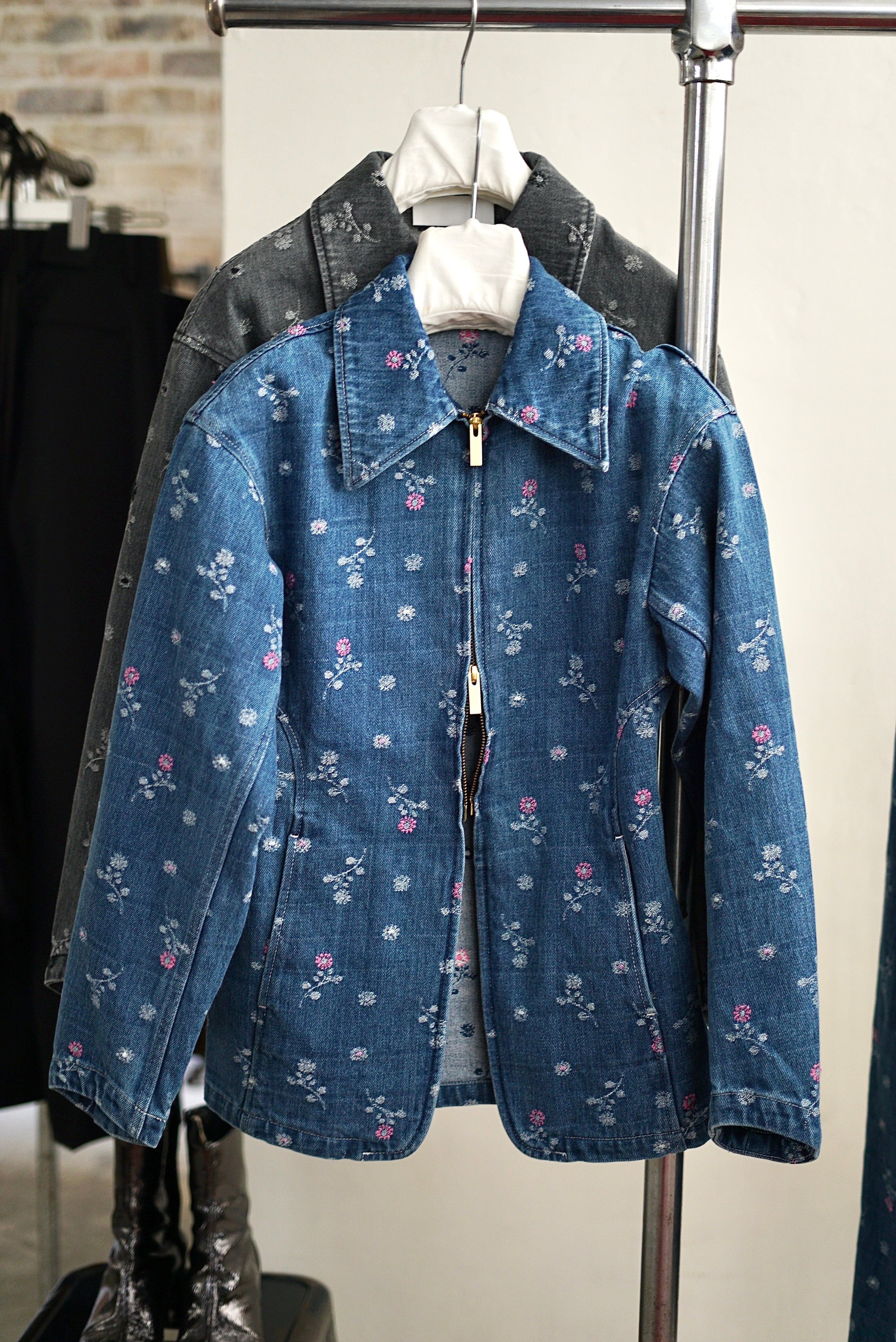 Mame Kurogouchi / Floral Jacquard Denim Jacket (BLUE, GREY)