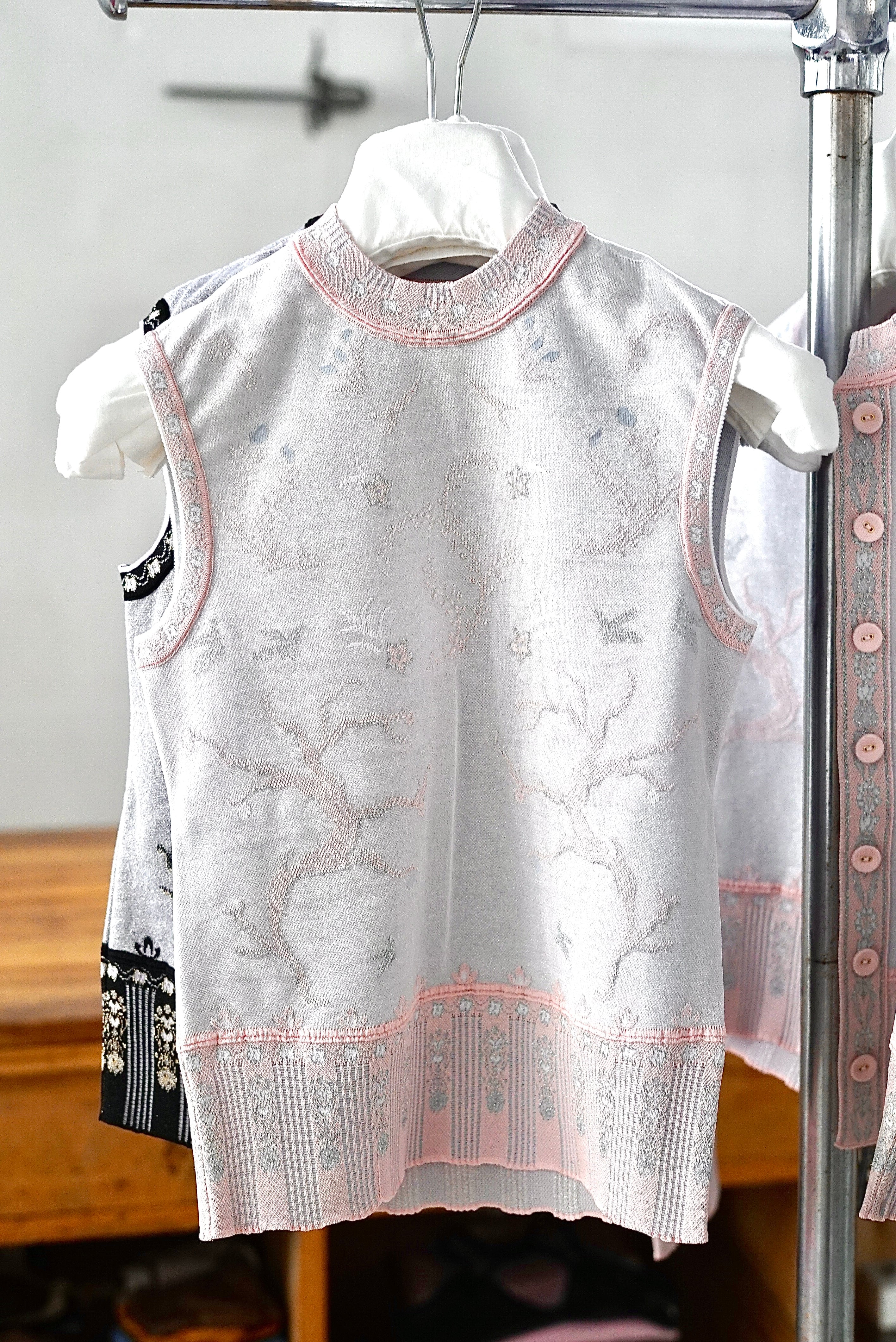 Mame Kurogouchi / Layered Jacquard Knit Top ( BLACK, PINK )