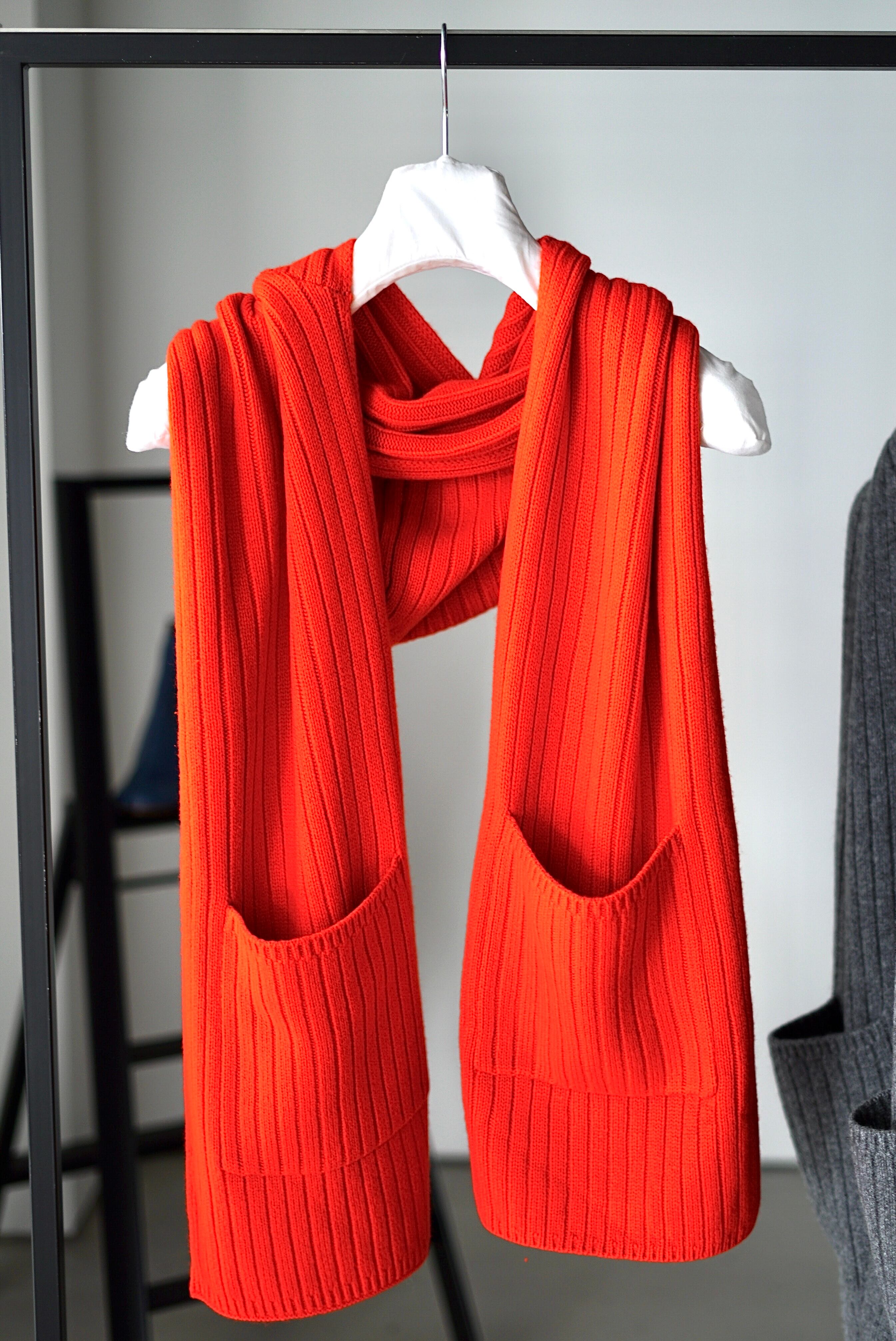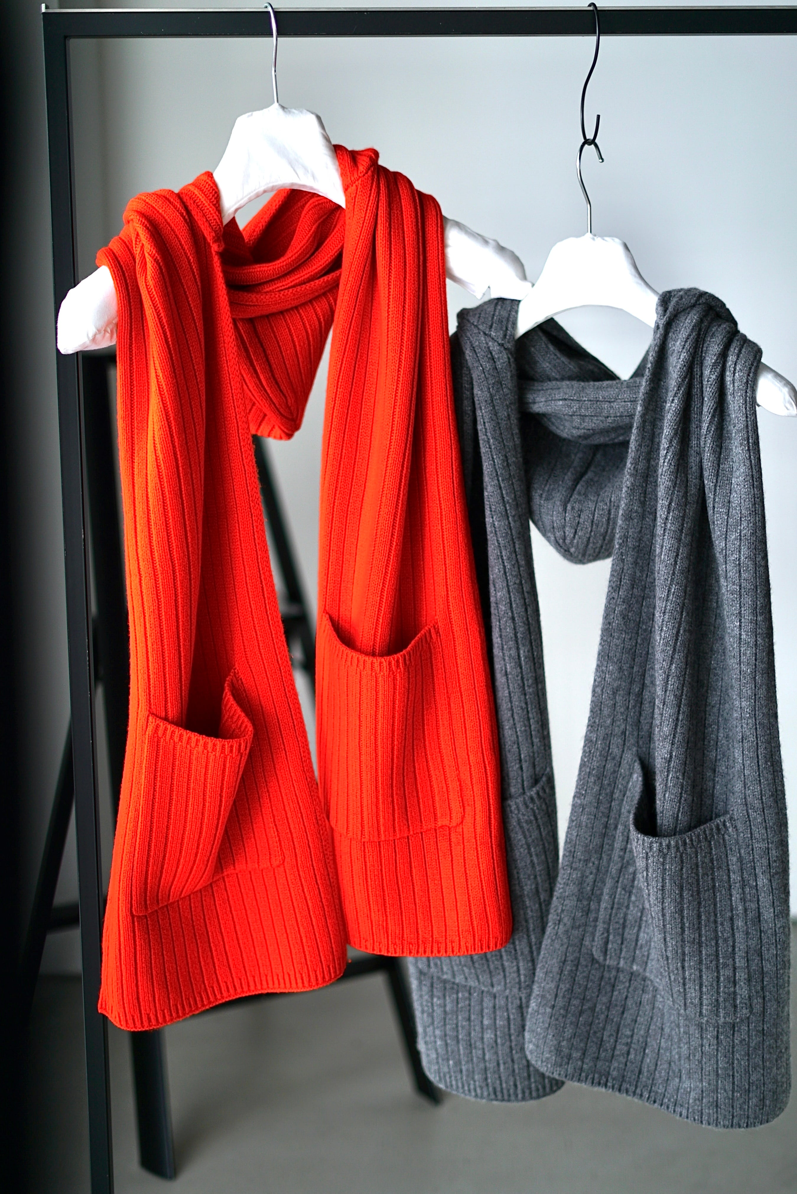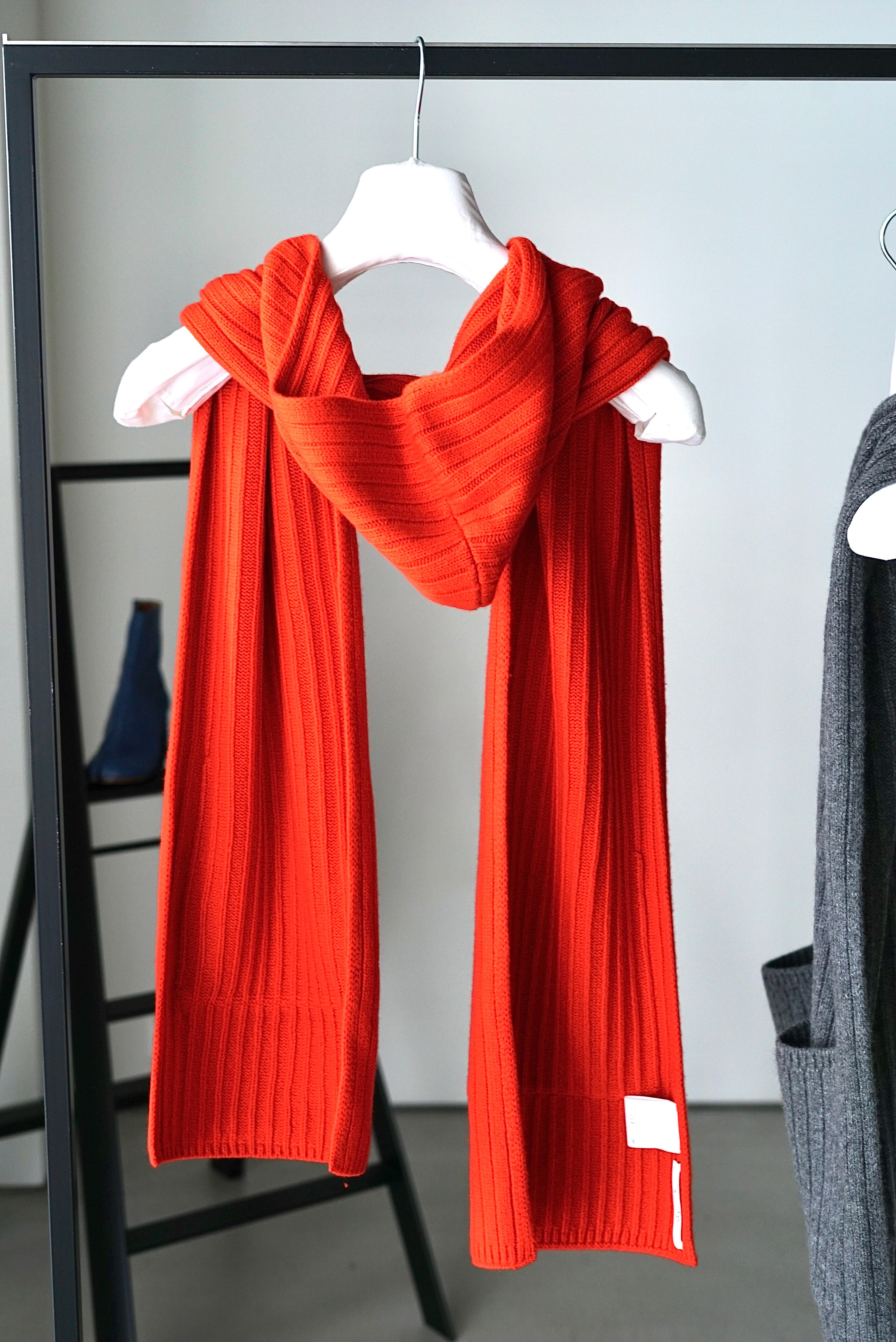 y YO / Hooded long muffler (Grey / Red)