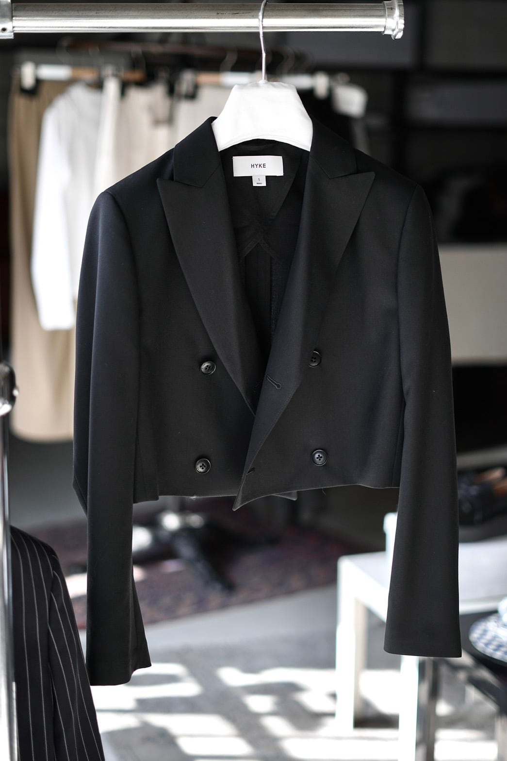 HYKE / WOOL DOUBLE-BREASTED CROPPED BLAZER ( BLACK )