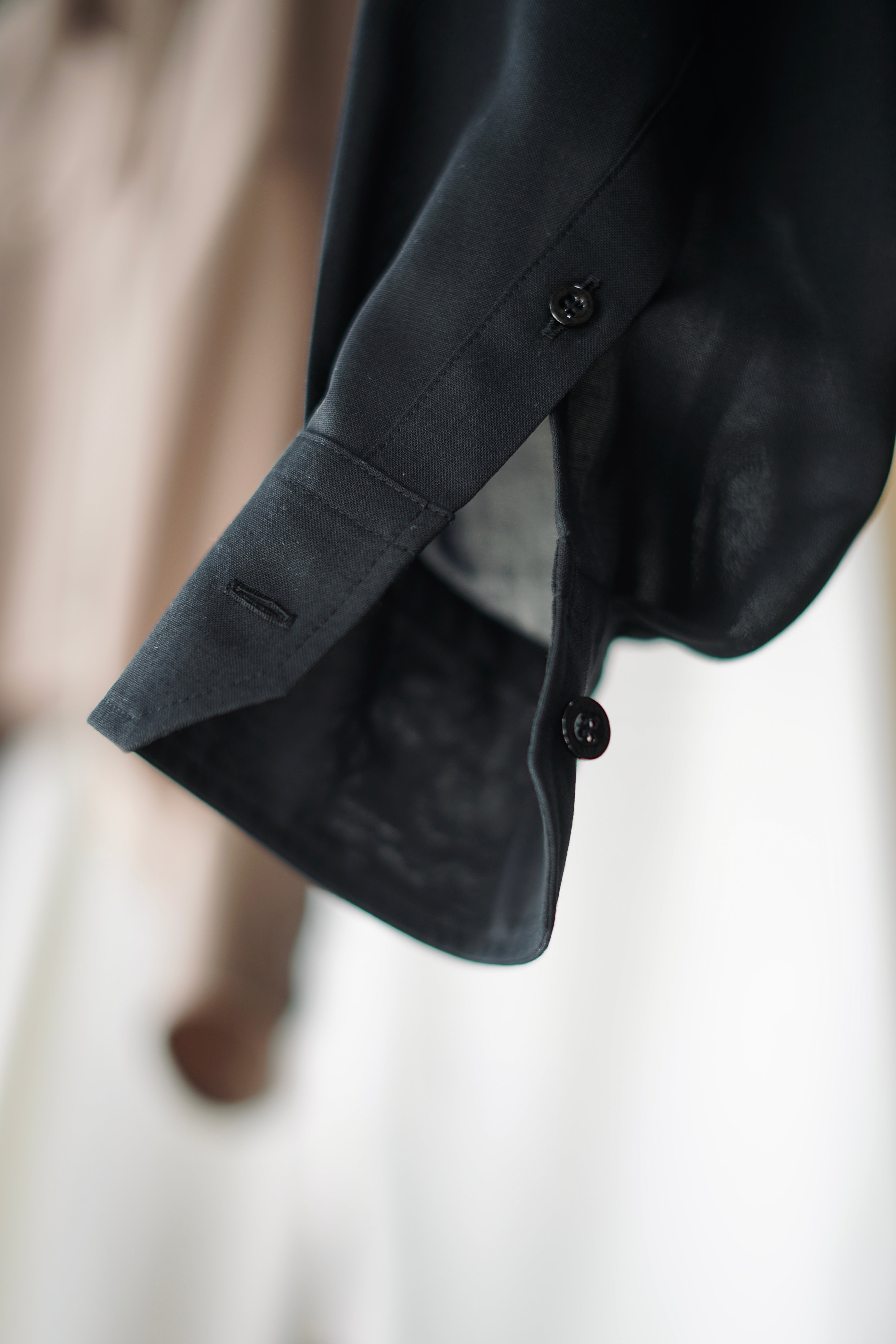 HYKE / T/W VOILE BALLOON SLEEVE CROPPED SHIRT ( BLACK , BEIGE )