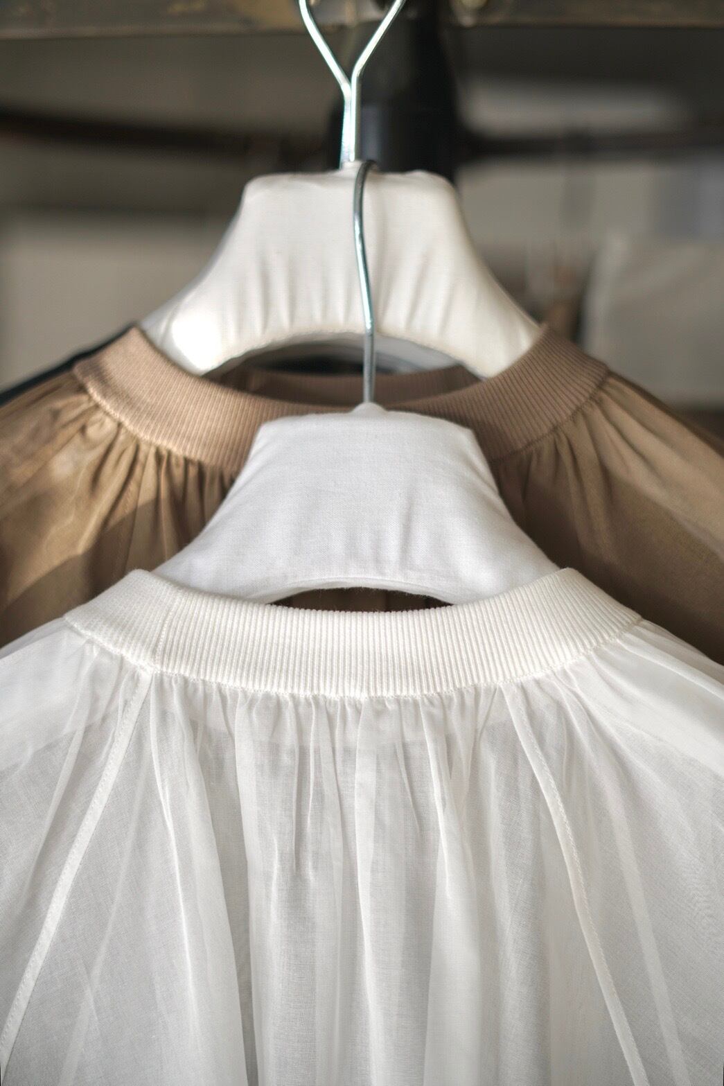 HYKE / COTTON VOILE SHIRRED BLOUSE ( BLACK , WHITE , BEIGE )