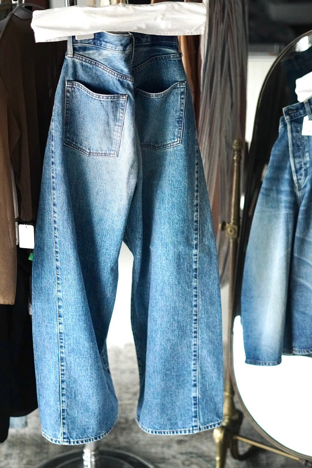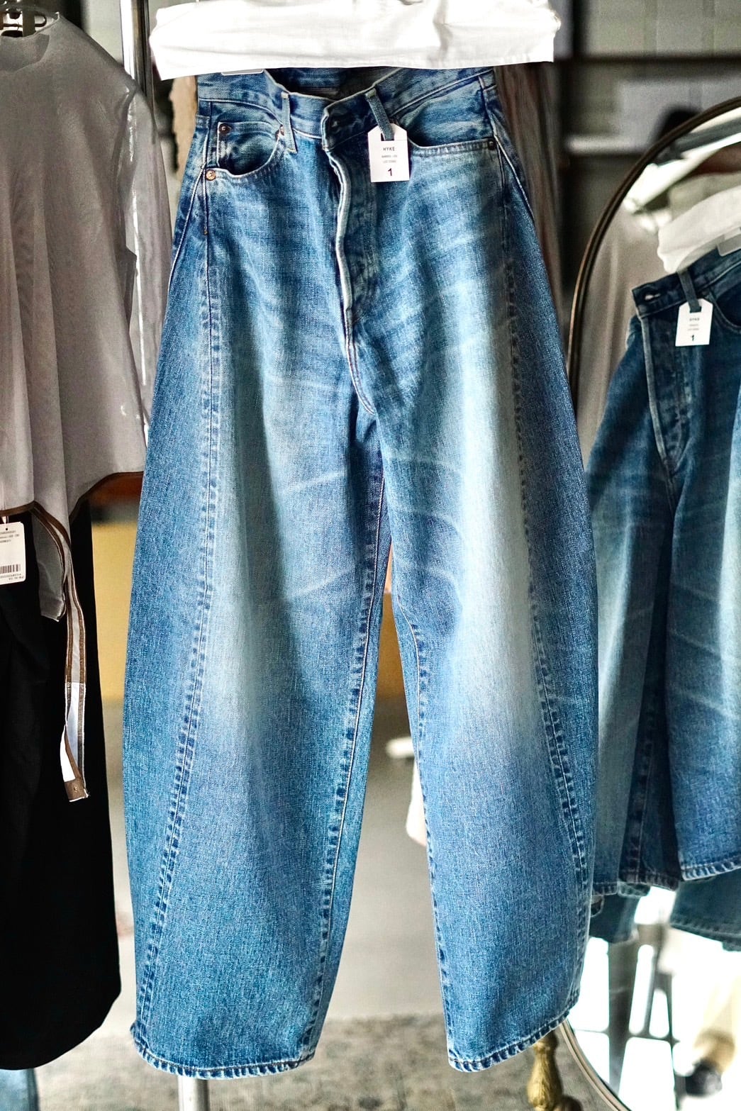HYKE / BARREL-LEG DENIM JEANS ( USED WASH (BLUE) )
