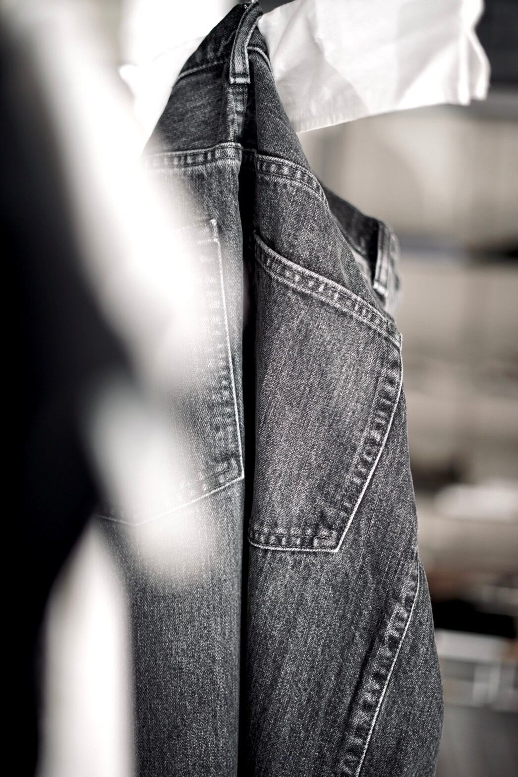 HYKE / BARREL-LEG DENIM JEANS ( USED WASH (BLACK) )