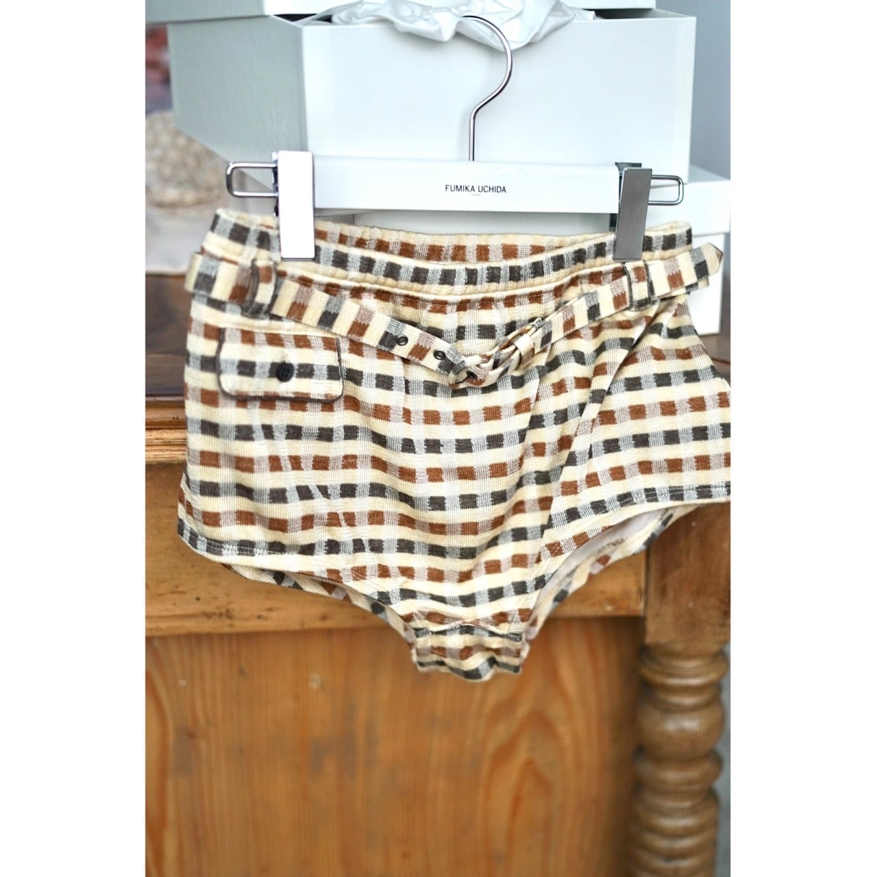 FUMIKA_UCHIDA / plaid jersey shorts (CREAM)