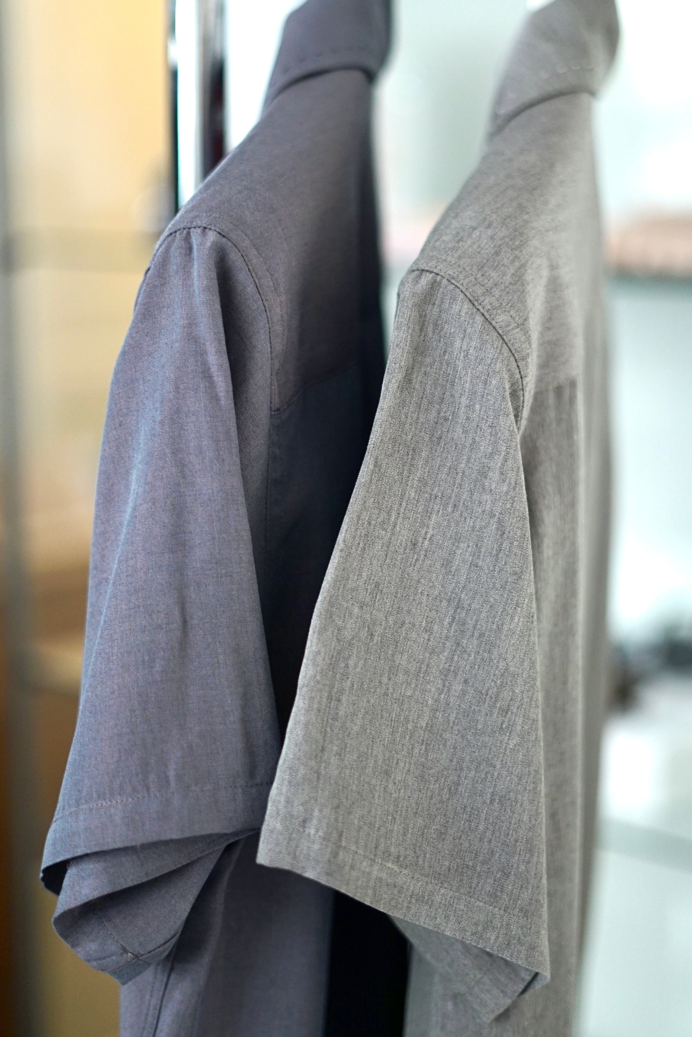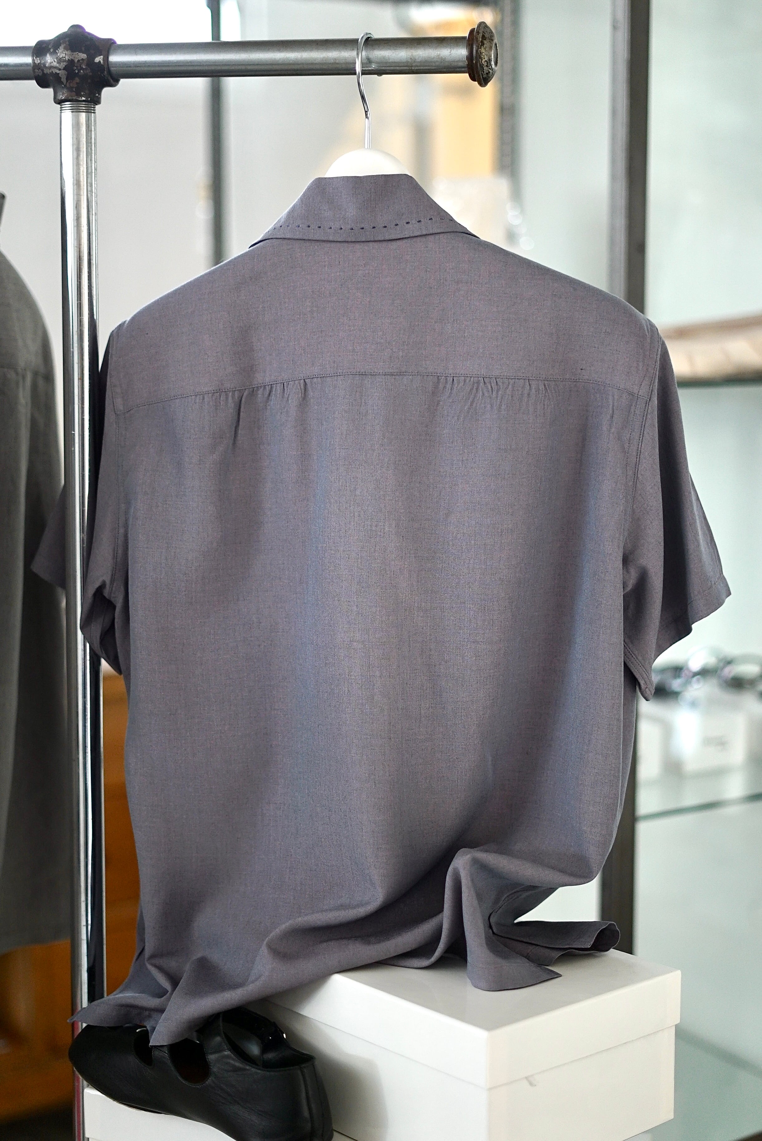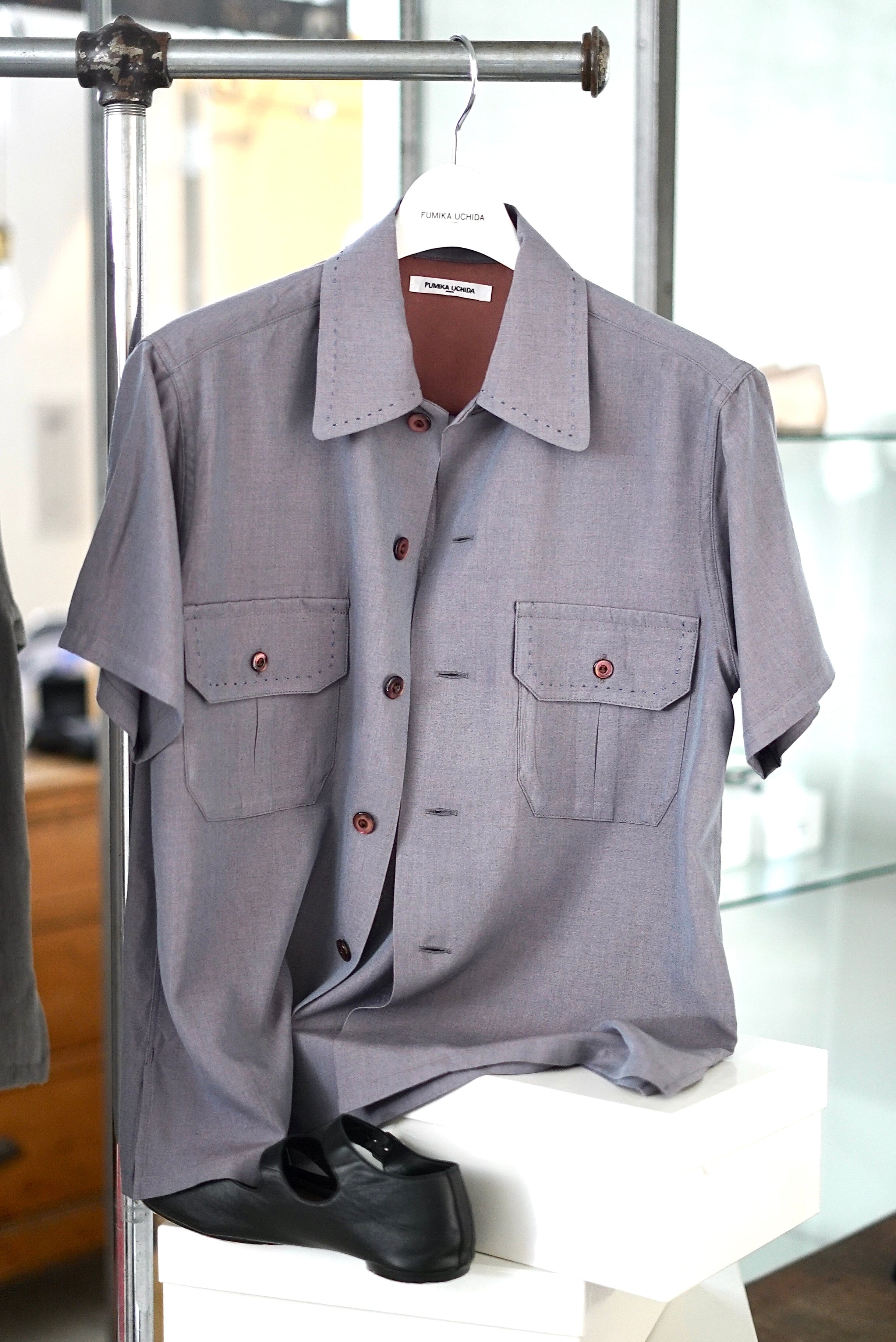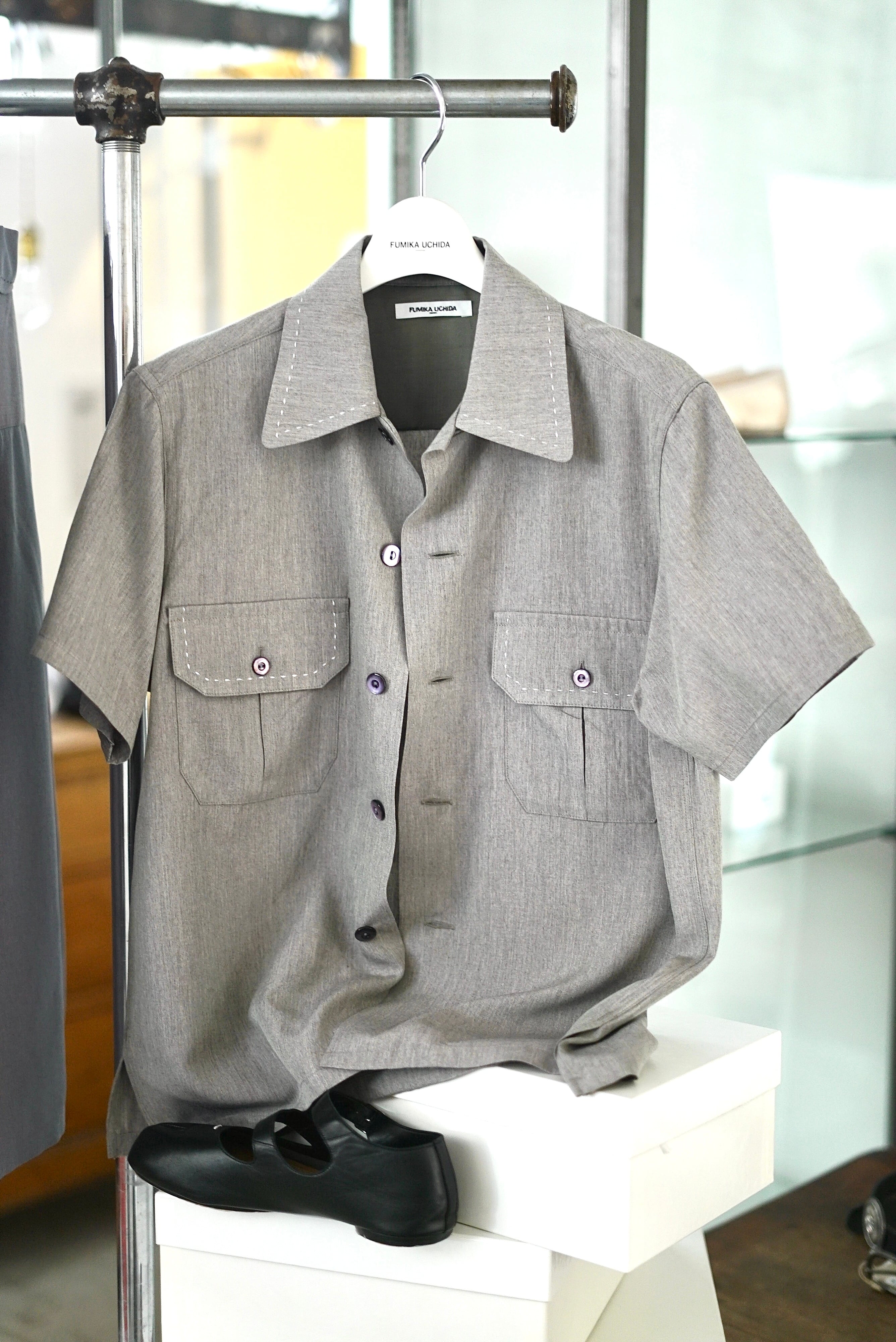 FUMIKA_UCHIDA / Chambray short sleve shirt (MAUVE GRAY, SAGE GRAY)