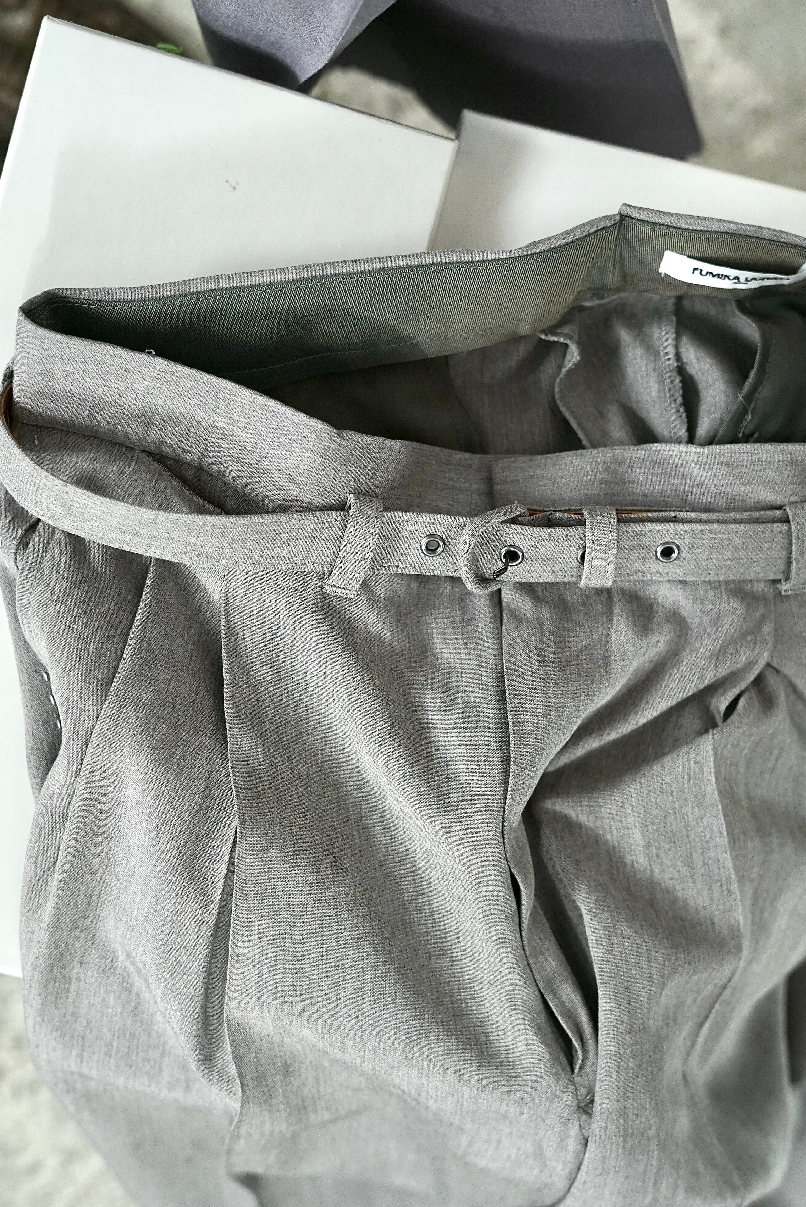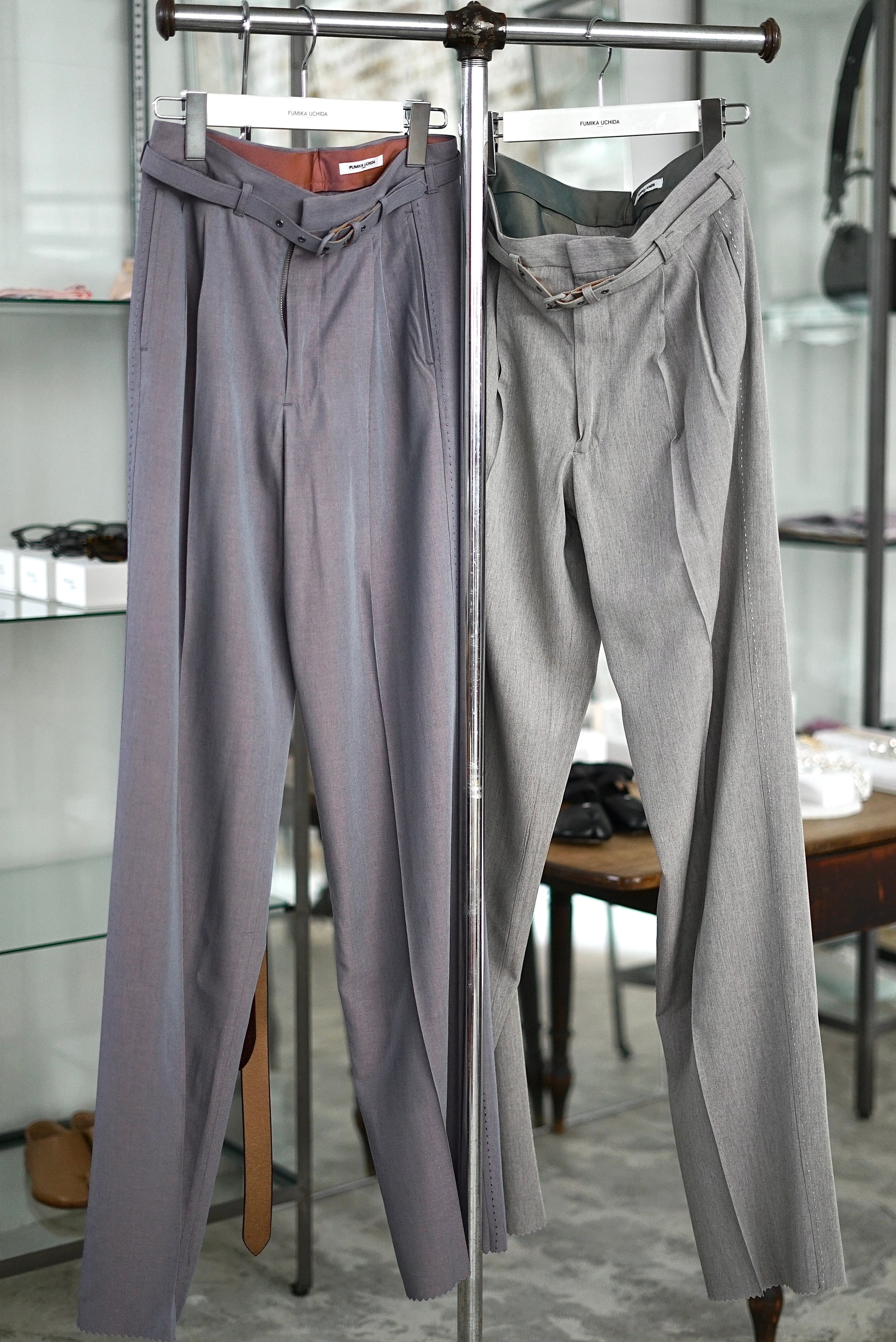 FUMIKA_UCHIDA / Cambray two-tuck slacks ( MAUVE GRAY, SAGE GRAY )
