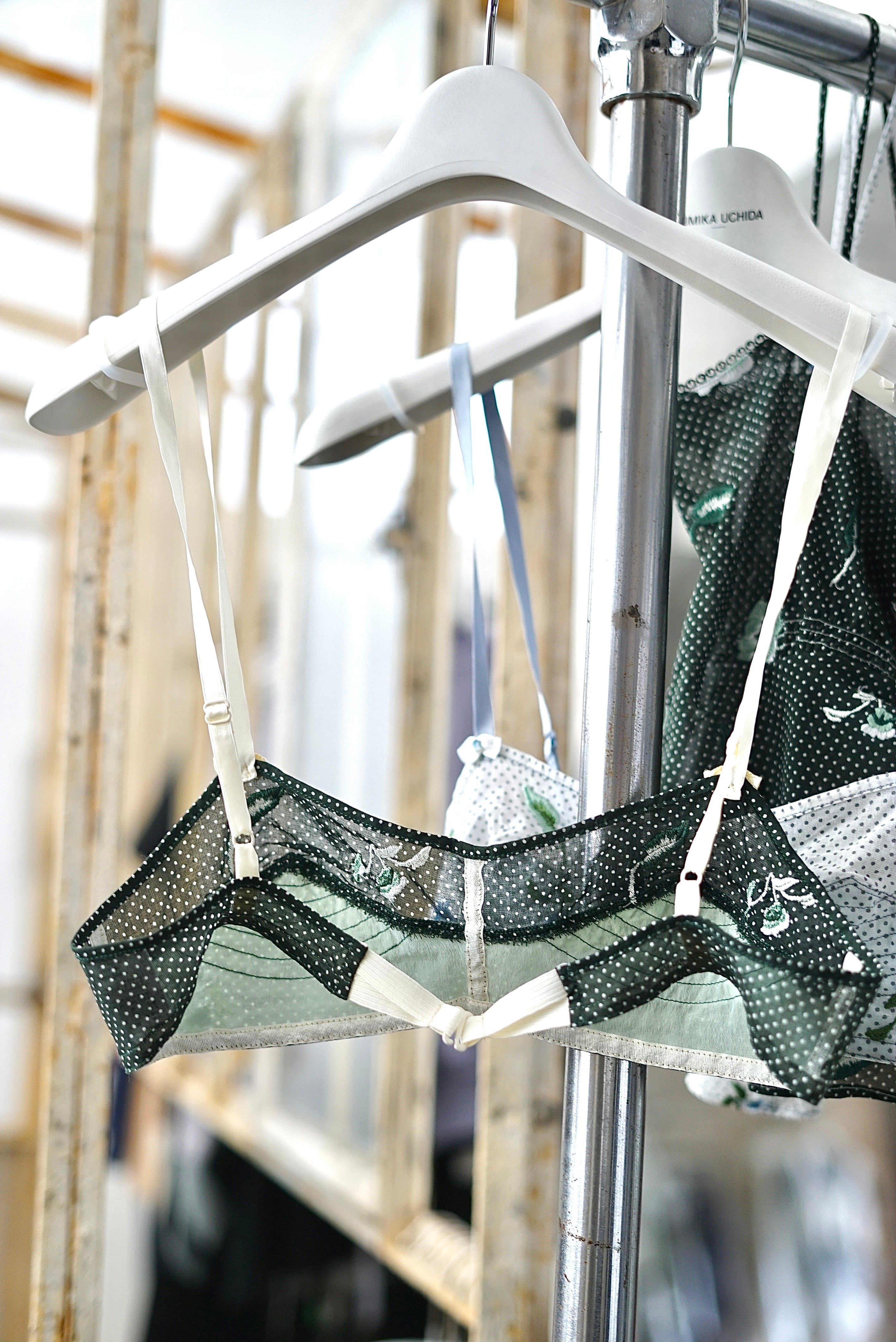 FUMIKA_UCHIDA / Allover Emd. bra (WHITE, BOTTLE GREEN)