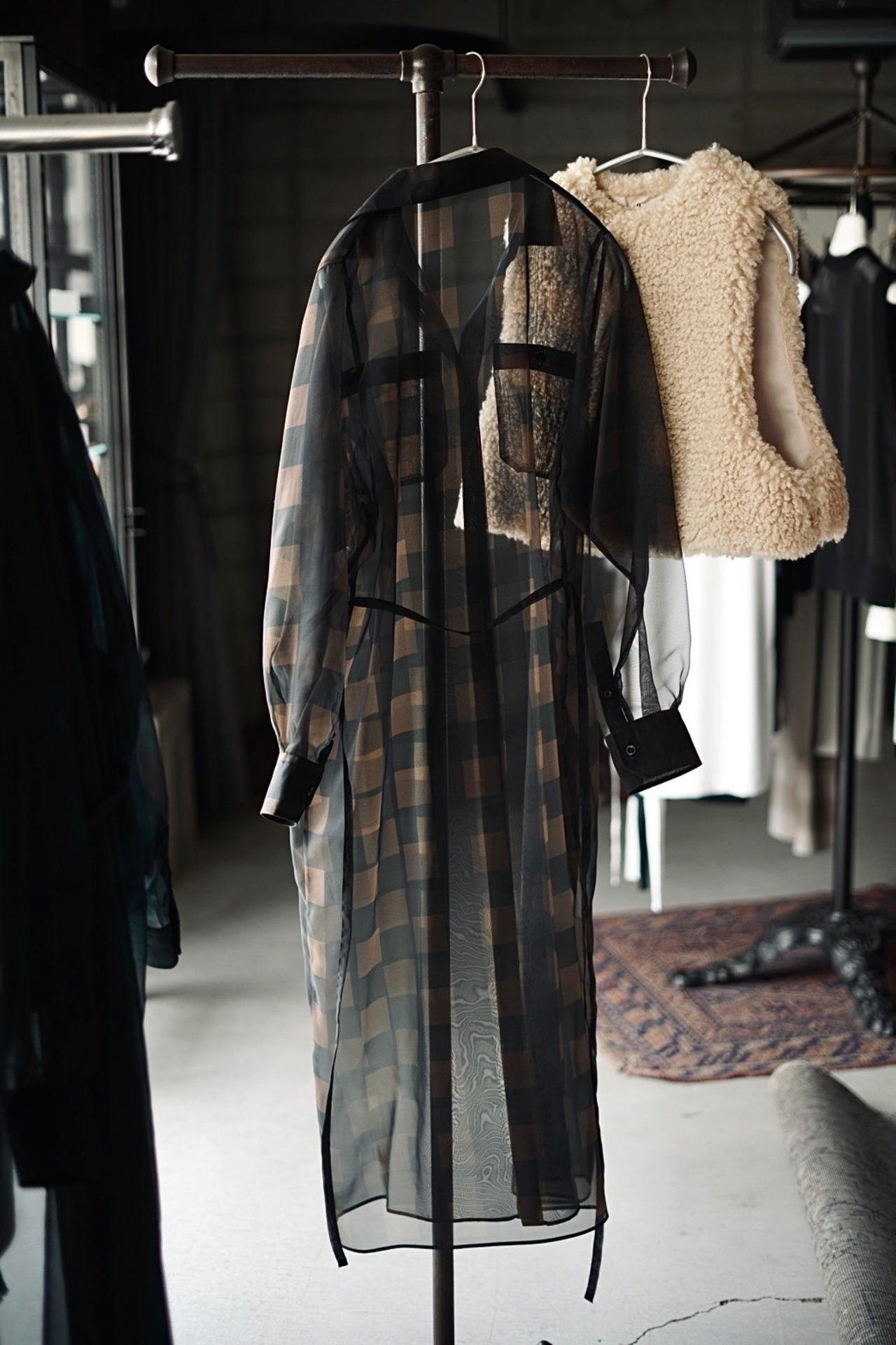 HYKE / SHEER PLAID DRESS (COYOTE BROWN , GREEN)