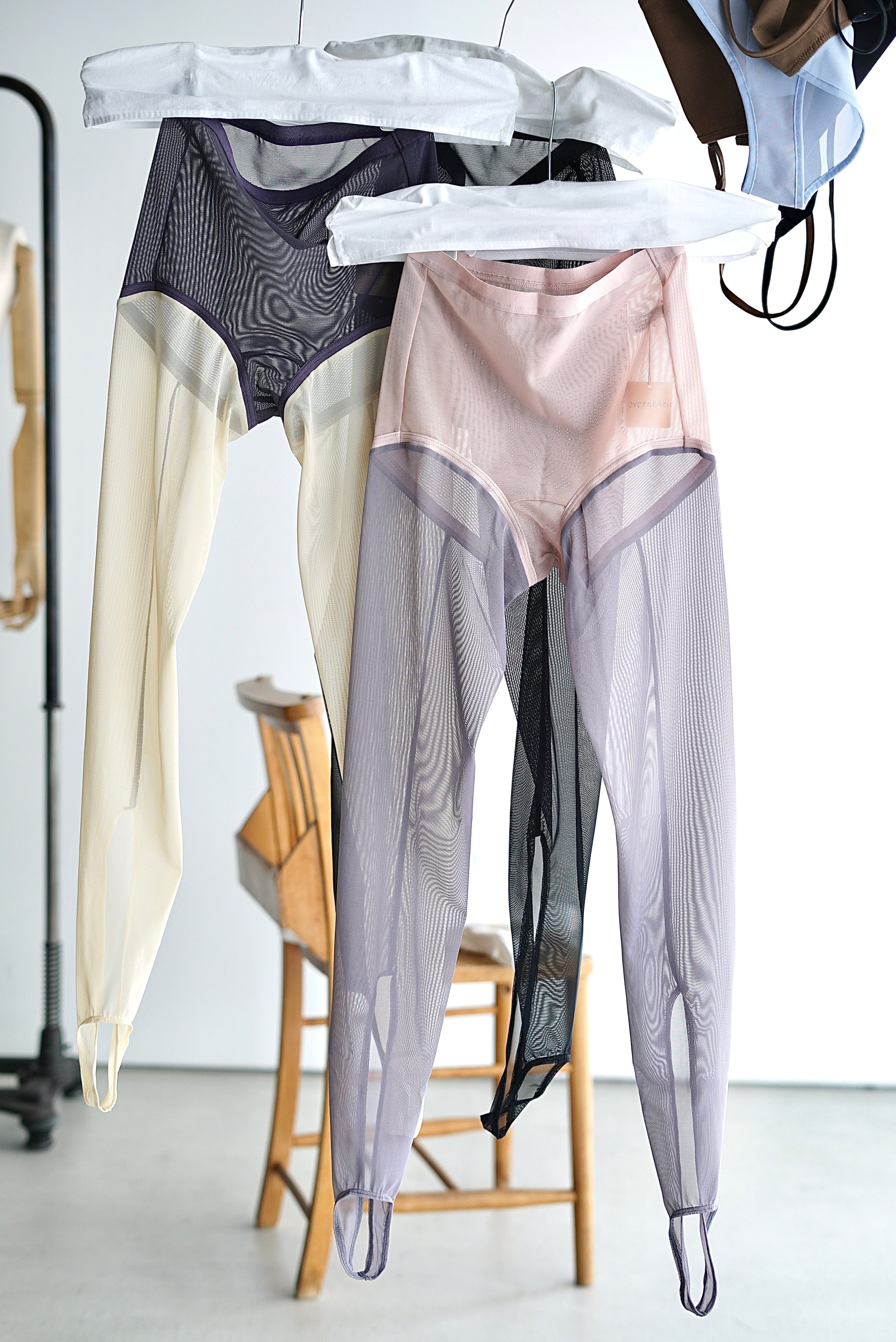 OVERNEATH / Net Leggings 073 ( Black , Grey , Lemon )