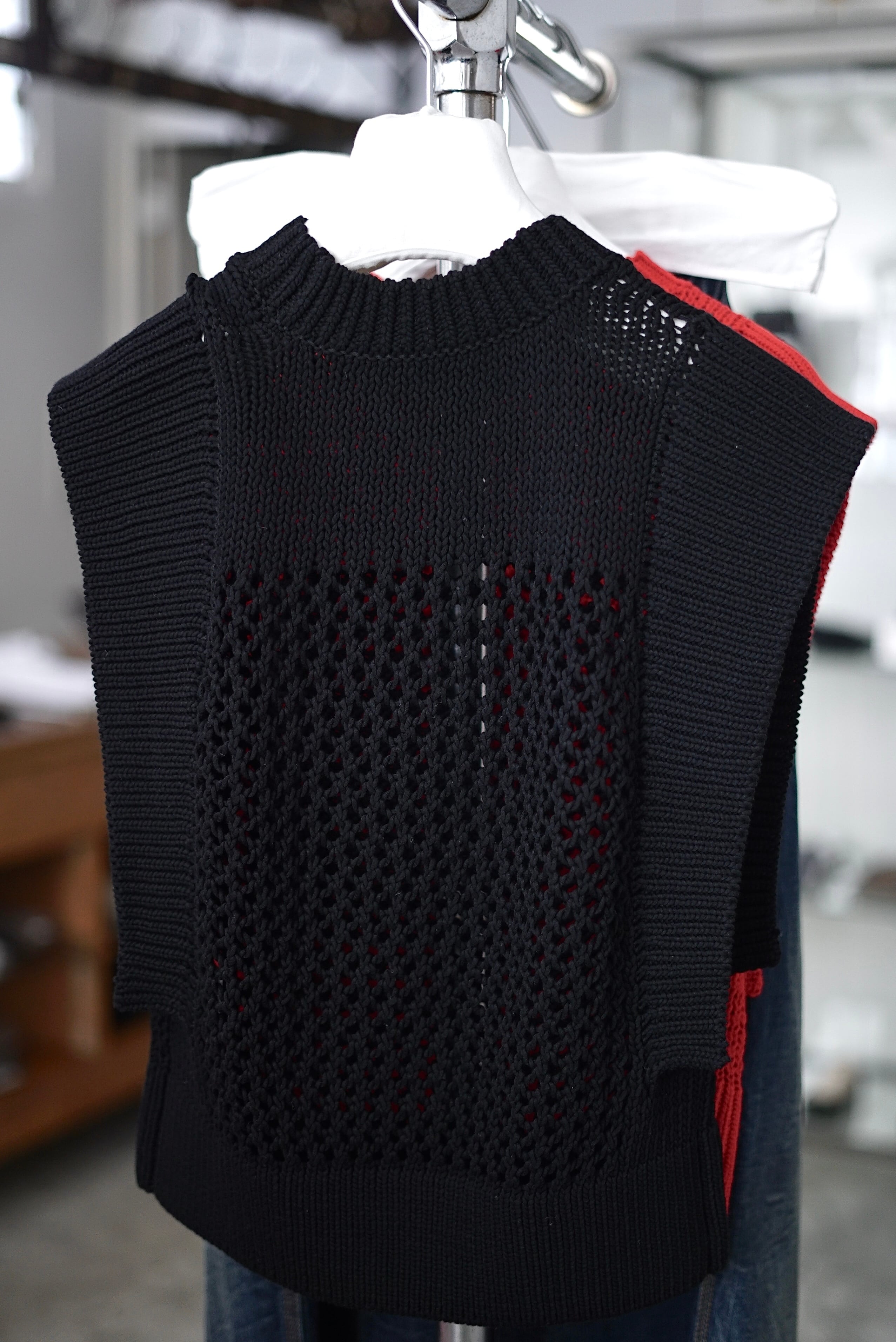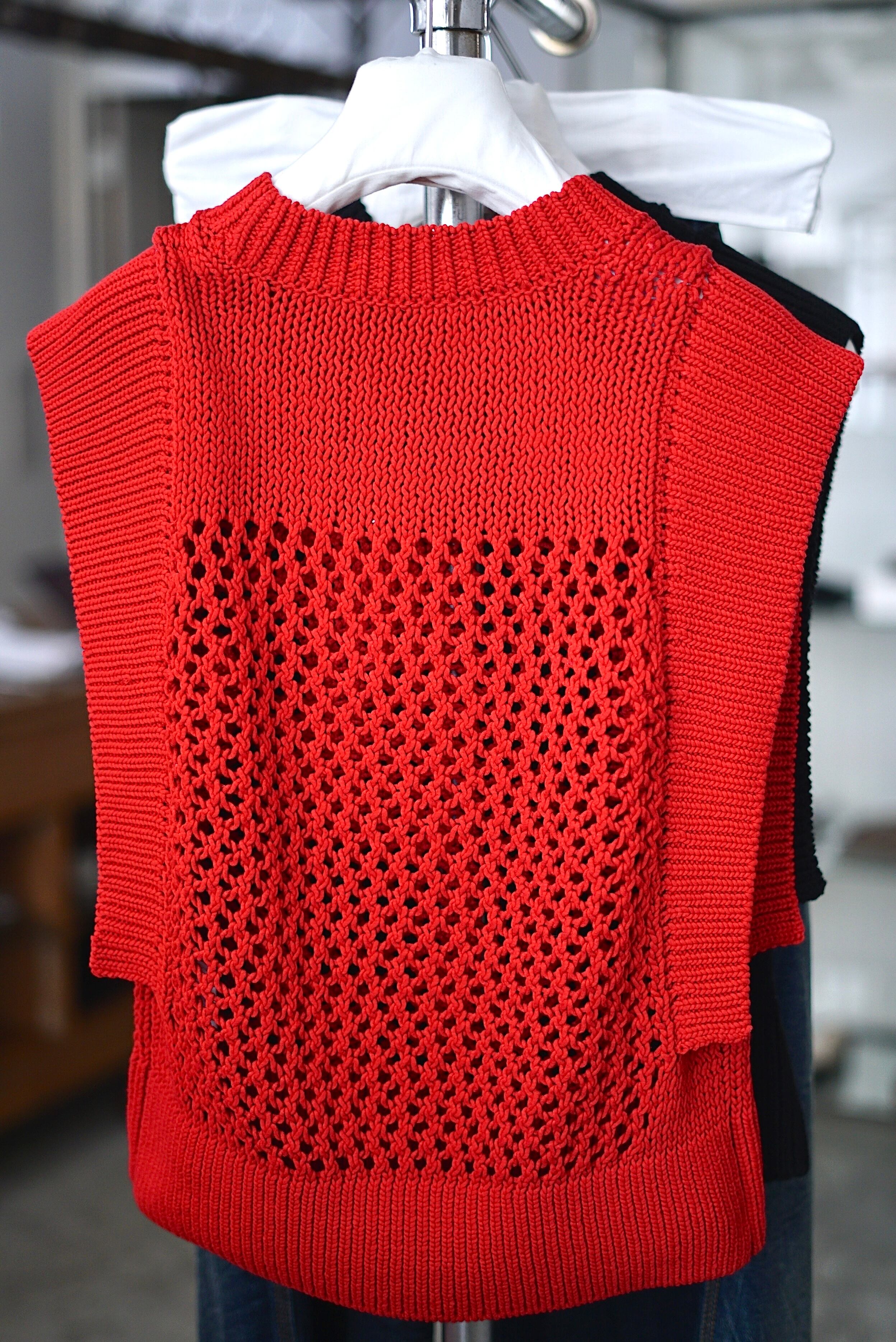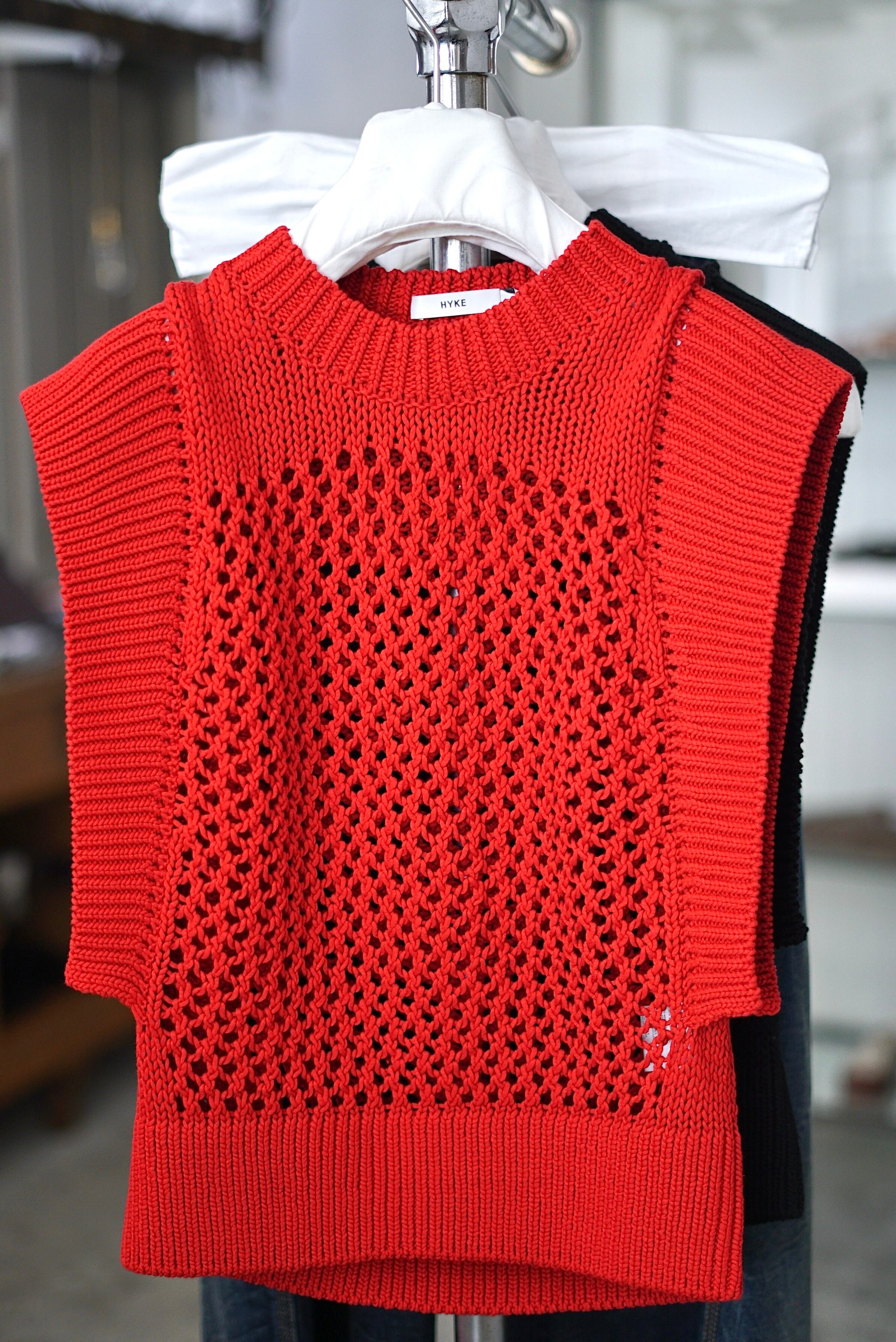 HYKE / CROCHET SLEEVELESS KNIT ( BLACK, RED )
