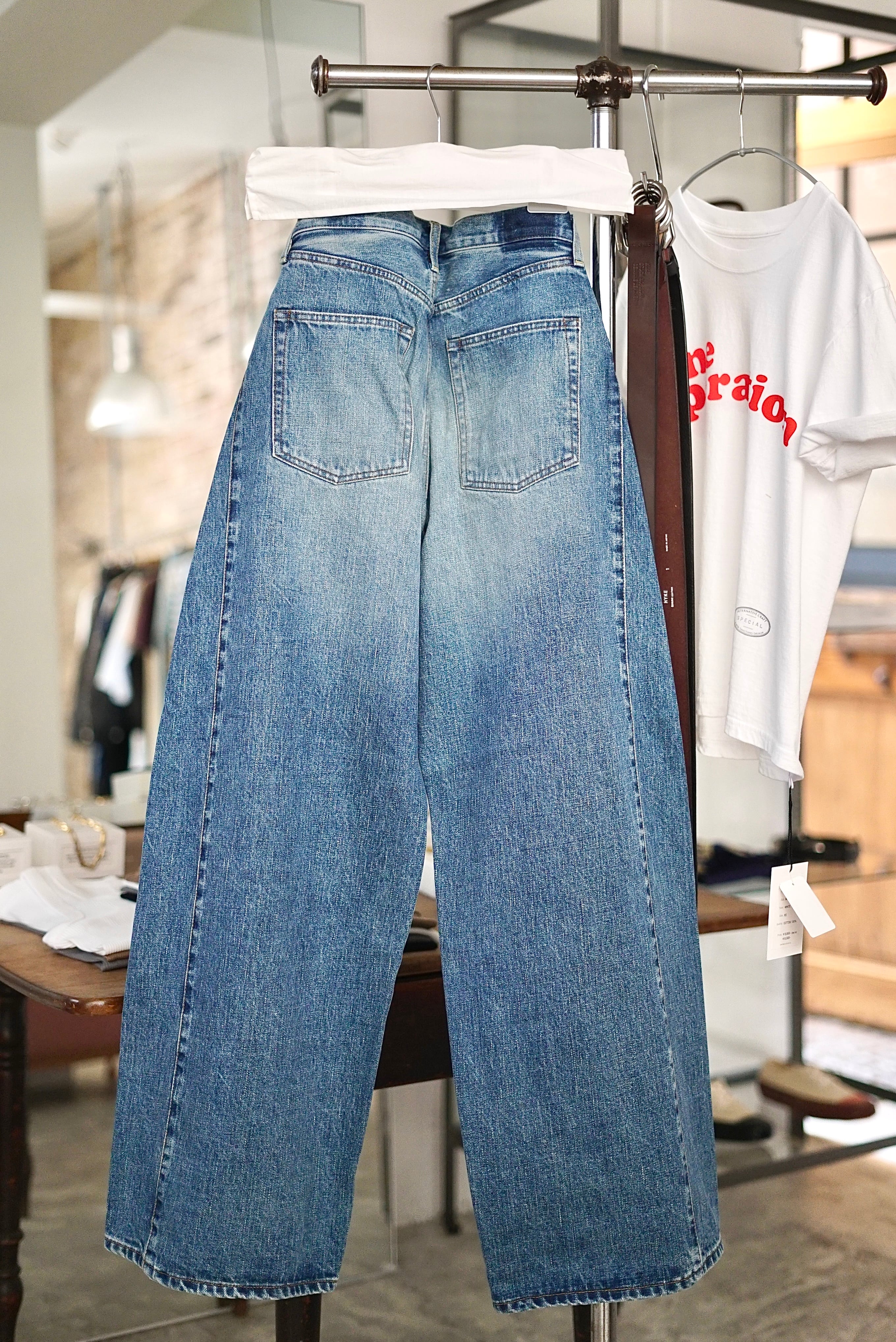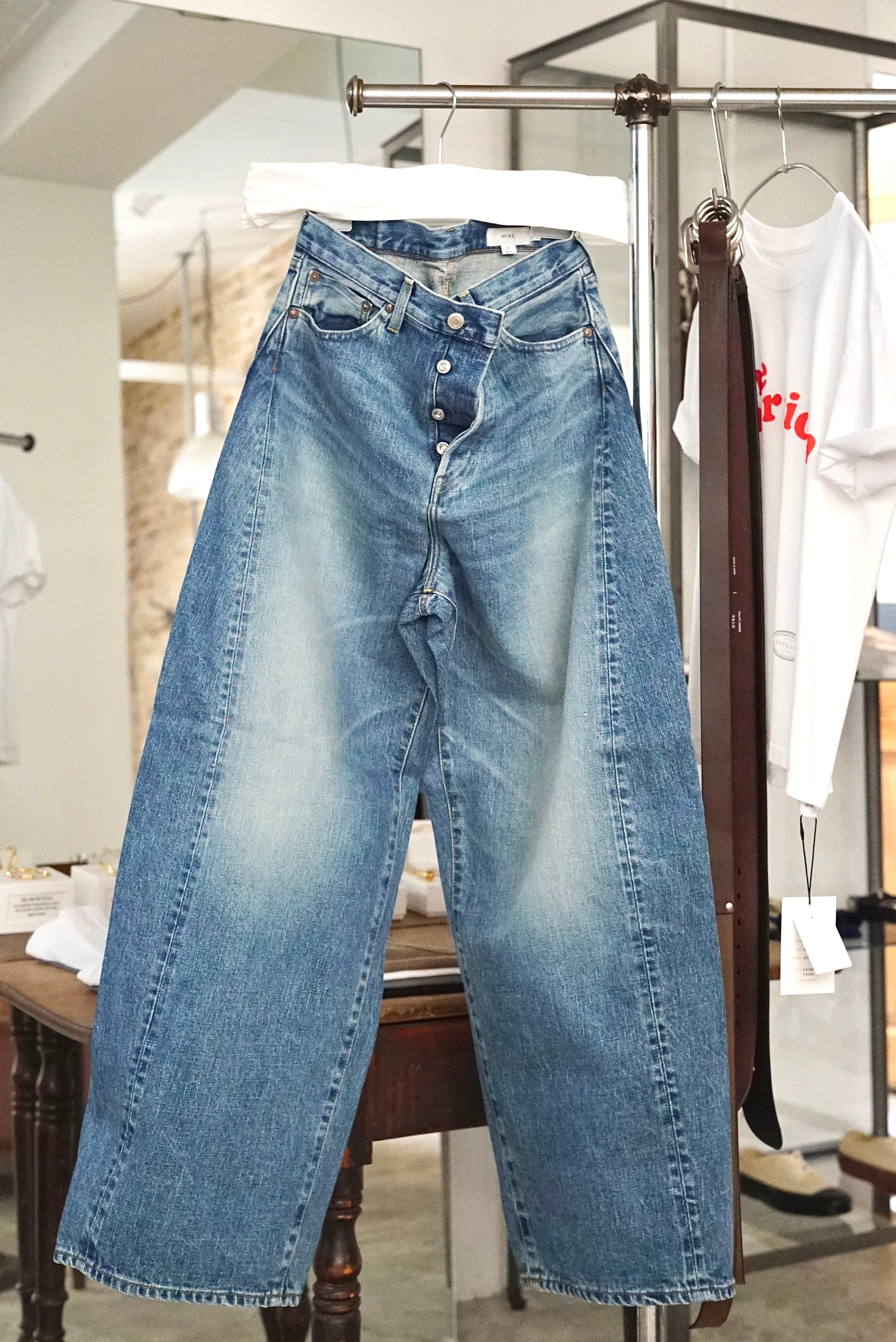 HYKE / BARREL-LEG DENIM JEANS(USED WASH (BLUE))