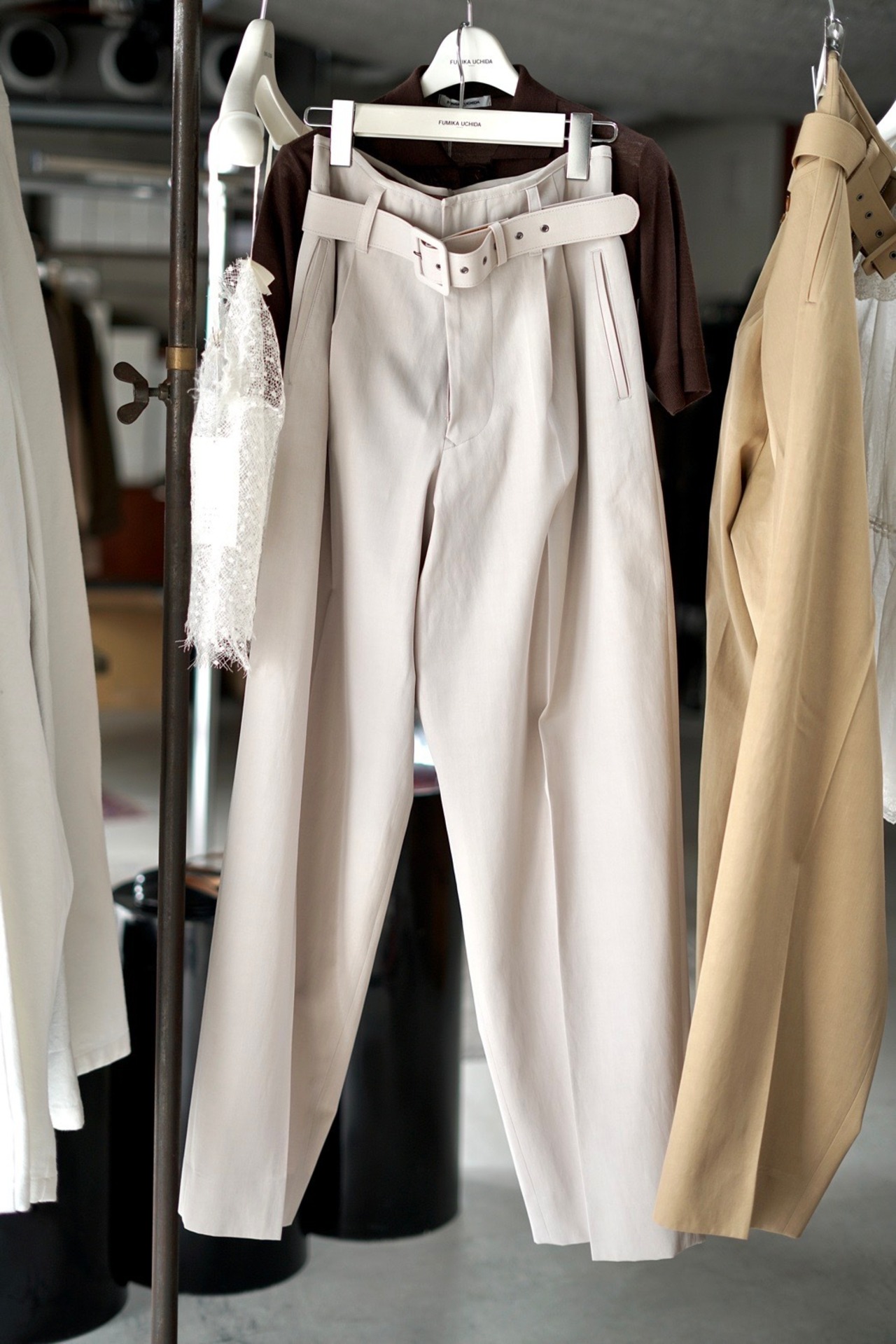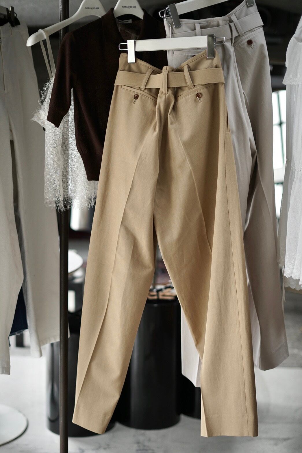FUMIKA_UCHIDA / Twill belted trousers ( LILAC , KHAKIBEIGE )