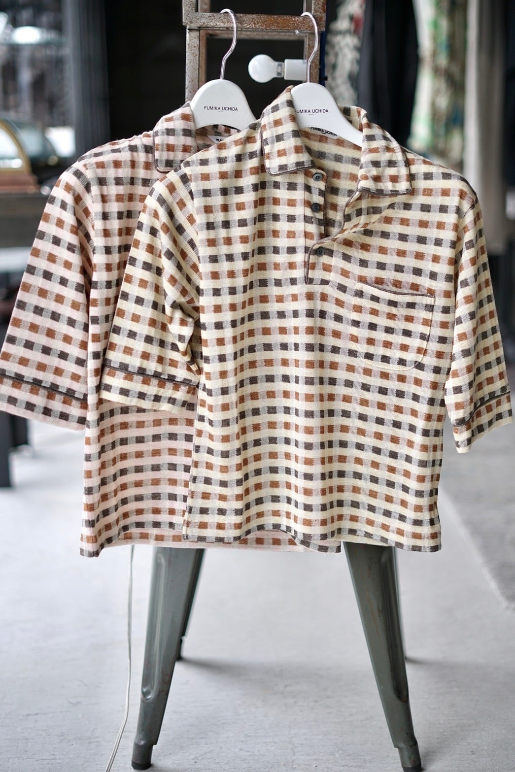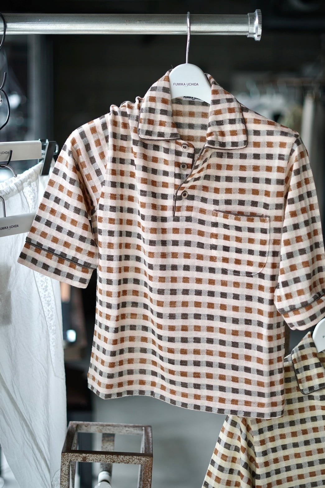 FUMIKA_UCHIDA / Plaid jersey polo ( POWDER PINK, CREAM )