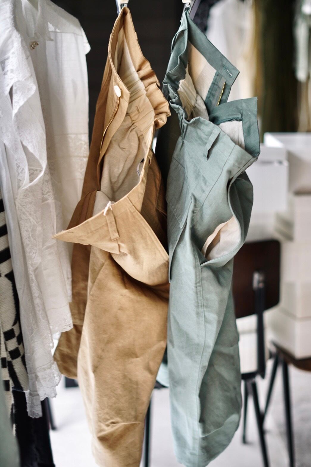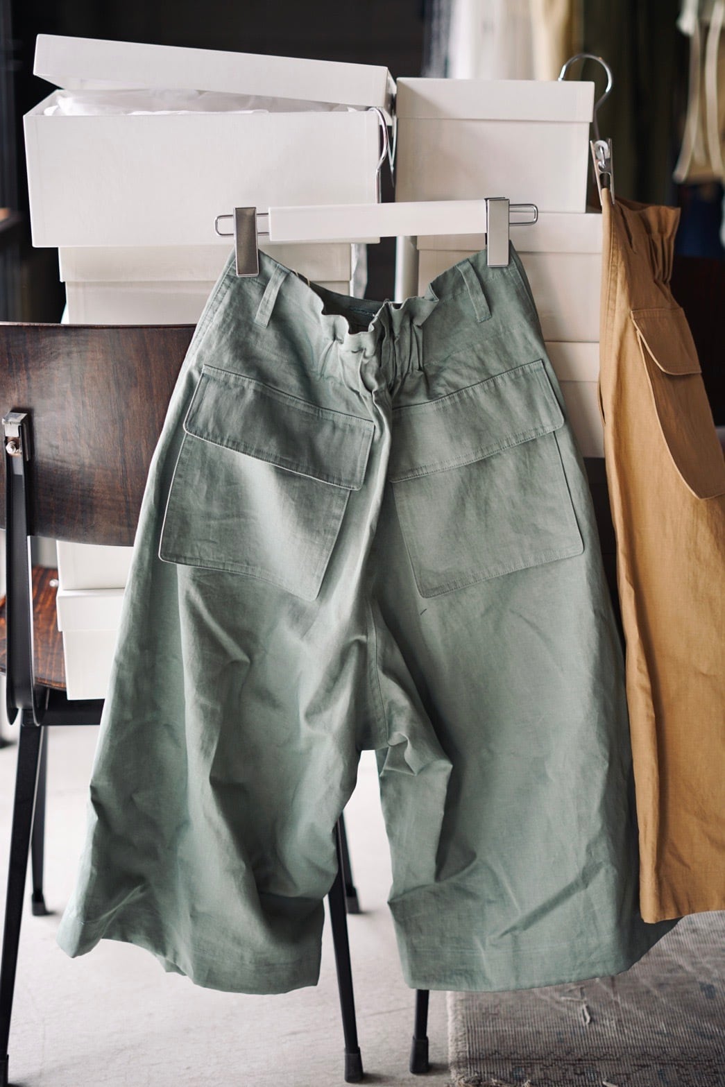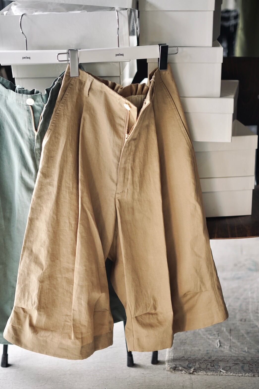 pelleq / utility edit shorts ( sage , nuts )